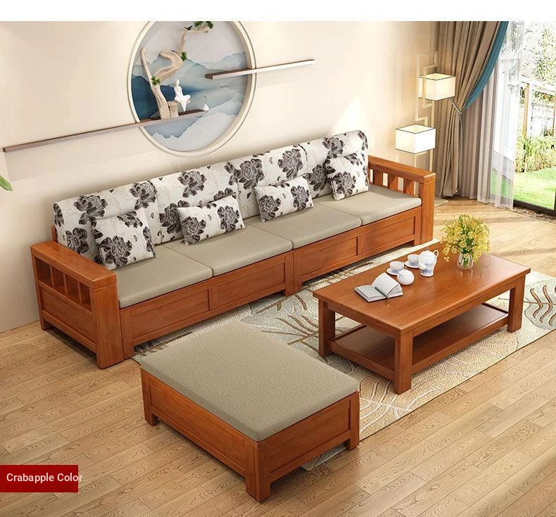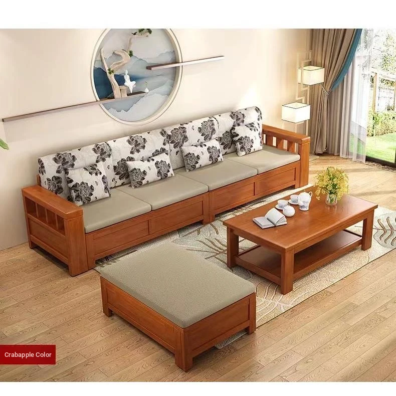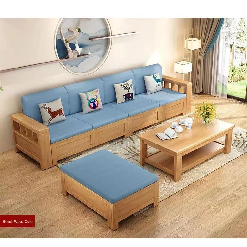Nordic Solid Wood Sofa with Soft Backrest - Multifunctional Chaise Lounge for Modern Minimalist Spaces, Perfect for Large and Small Homes with Storage Solutions