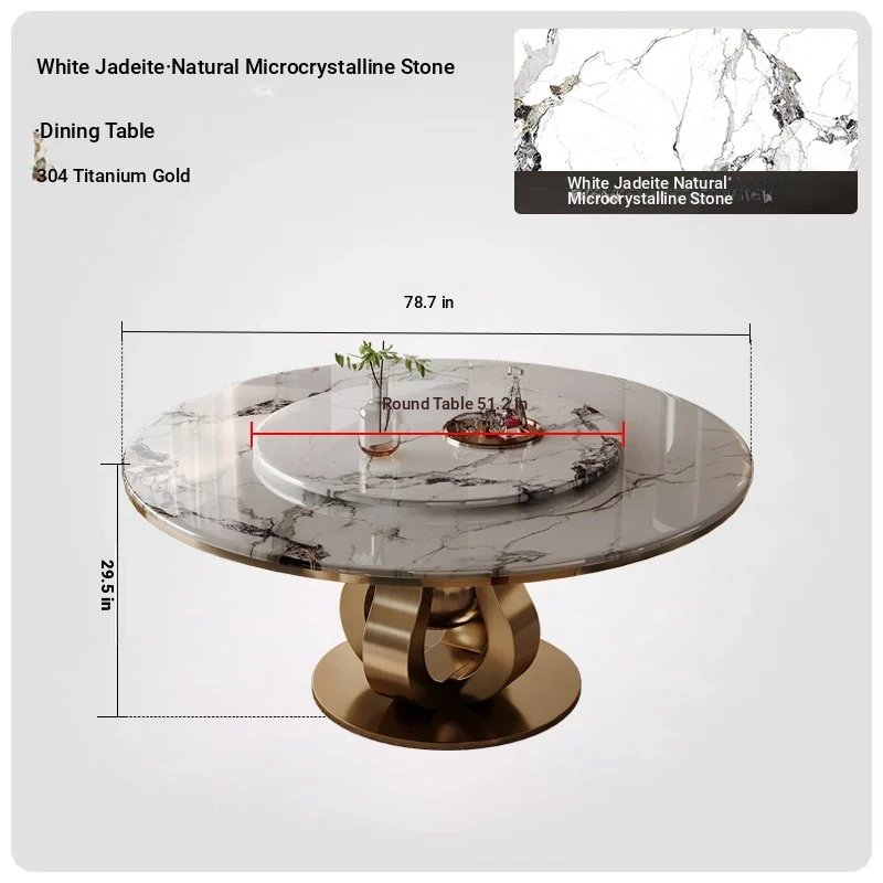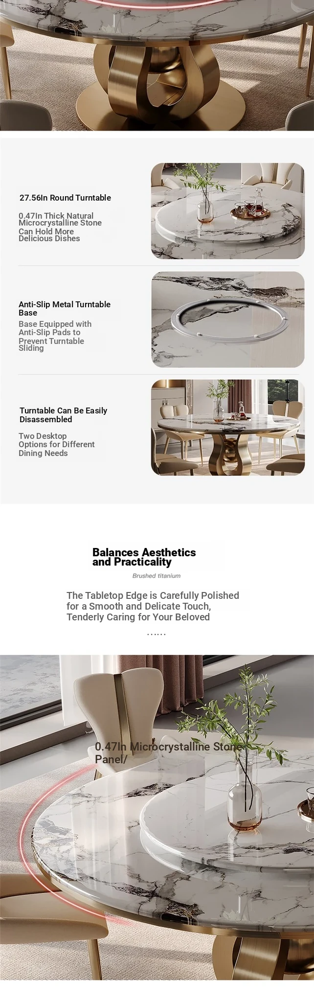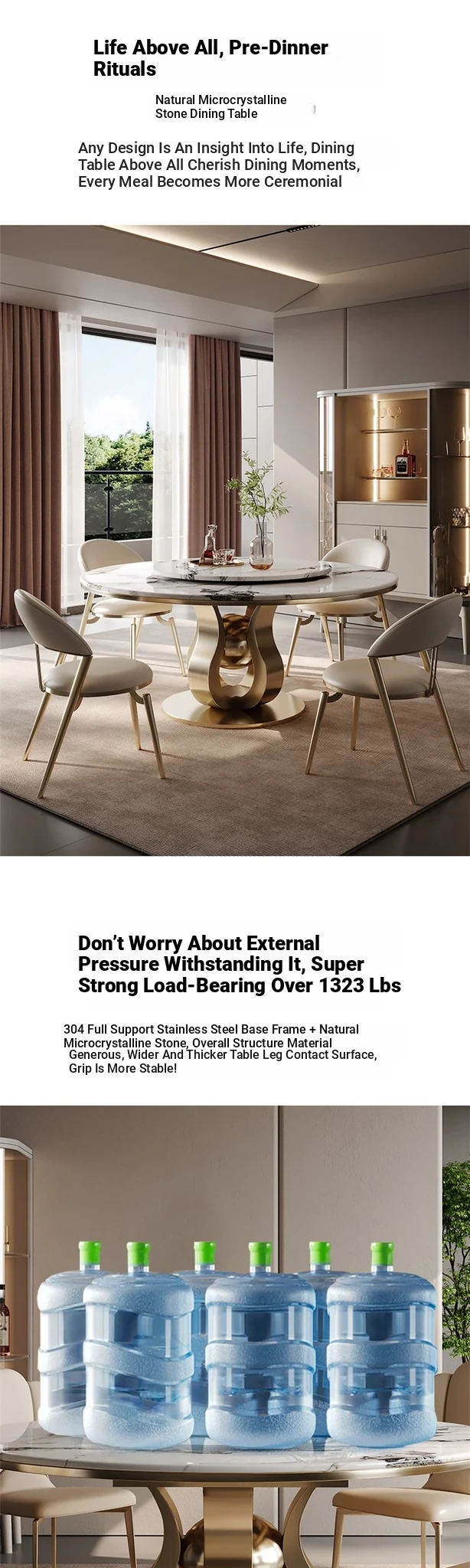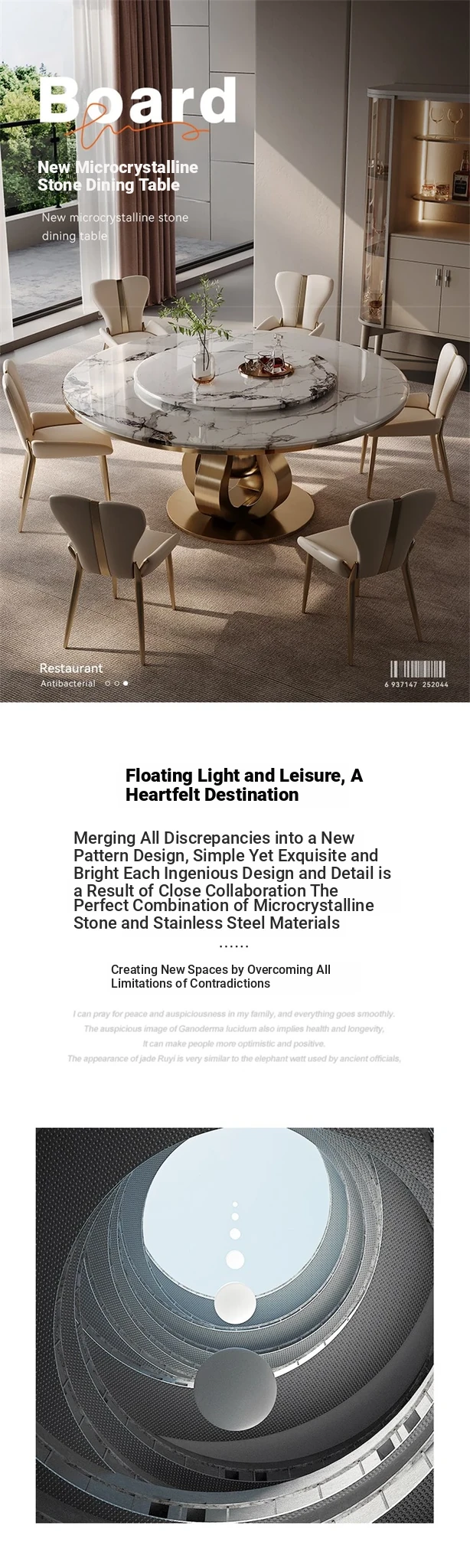 Premium Beier Marble Round Dining Table with Rotating Tray - Elegant Microcrystalline Stone Design for Spacious Villas and Modern Homes.