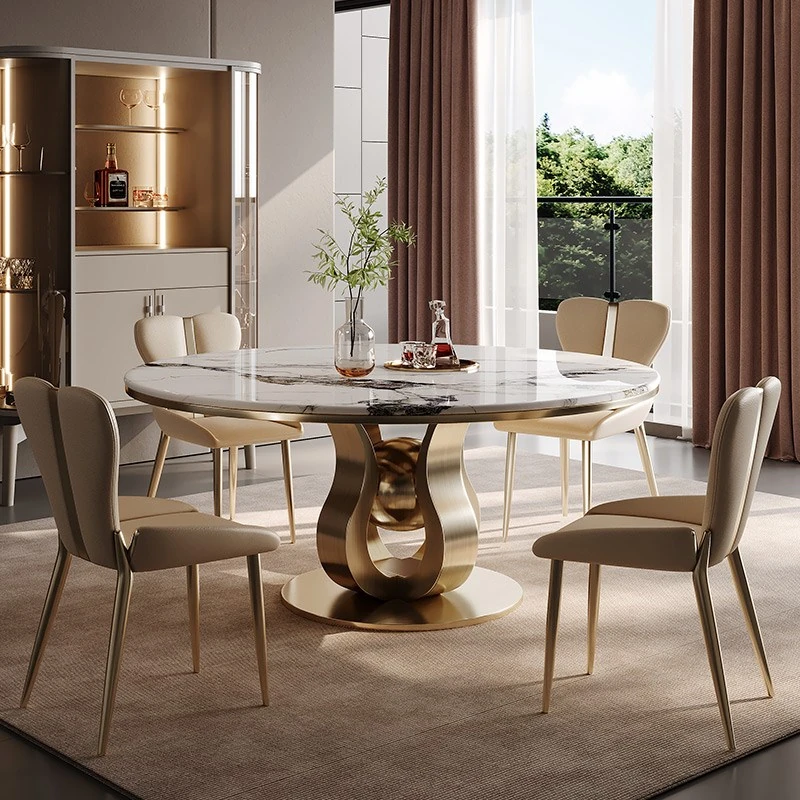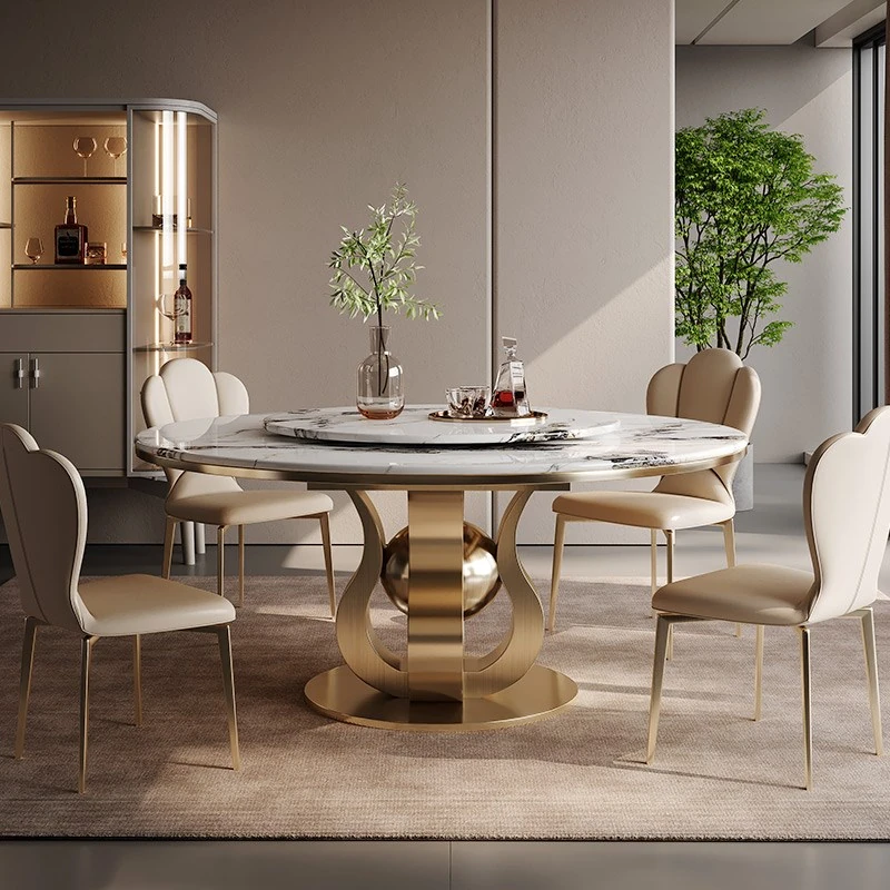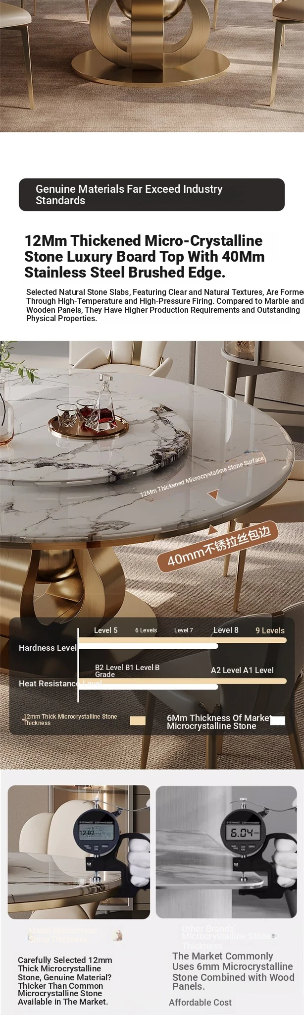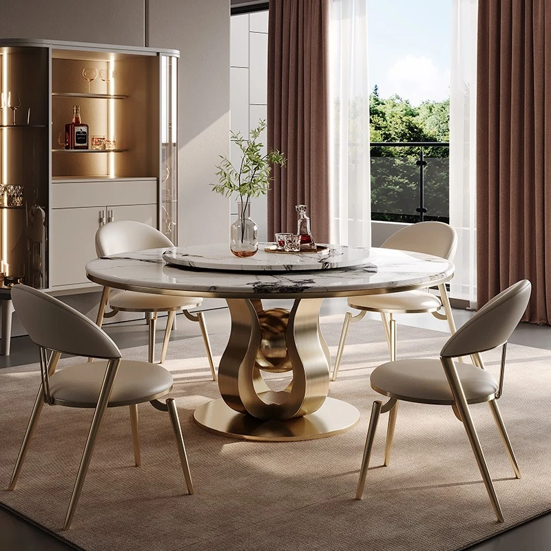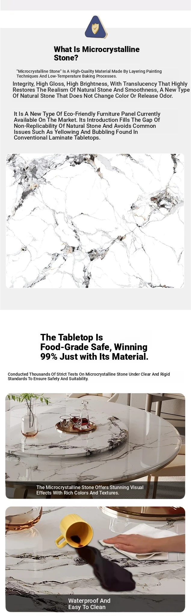 Premium Beier Marble Round Dining Table with Rotating Tray - Elegant Microcrystalline Stone Design for Spacious Villas and Modern Homes.