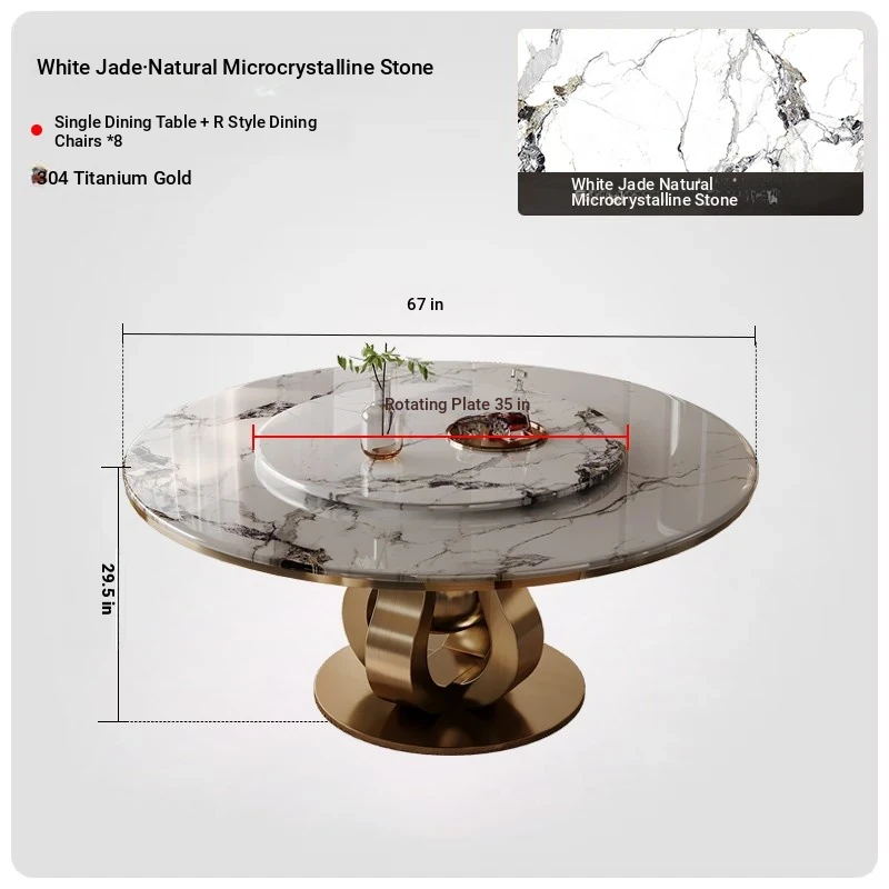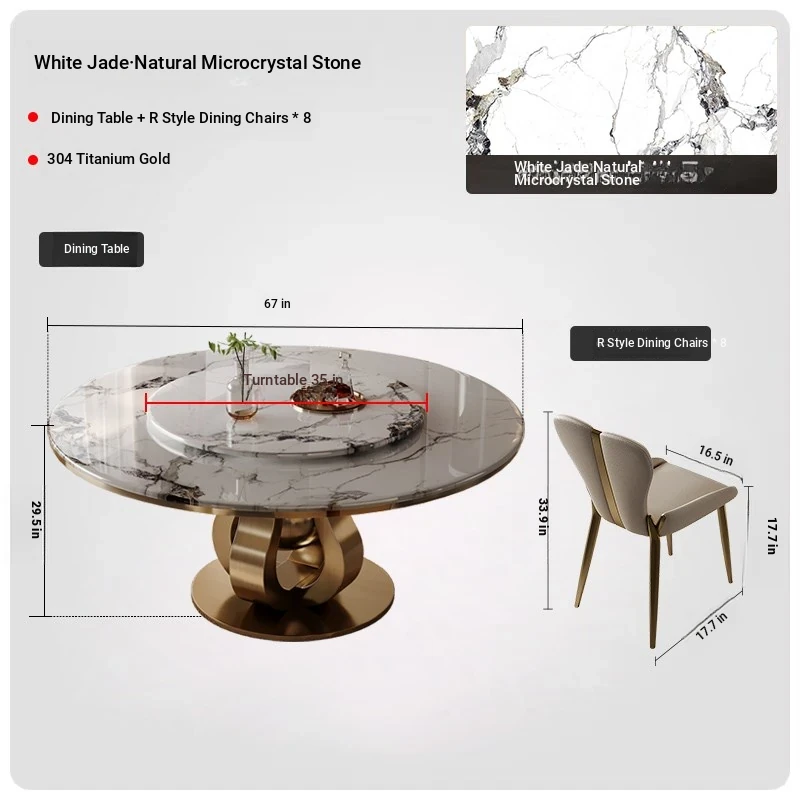 [White Jade Natural Microlite] 66.93 in Dining Table + Designer Dining Chair * 6