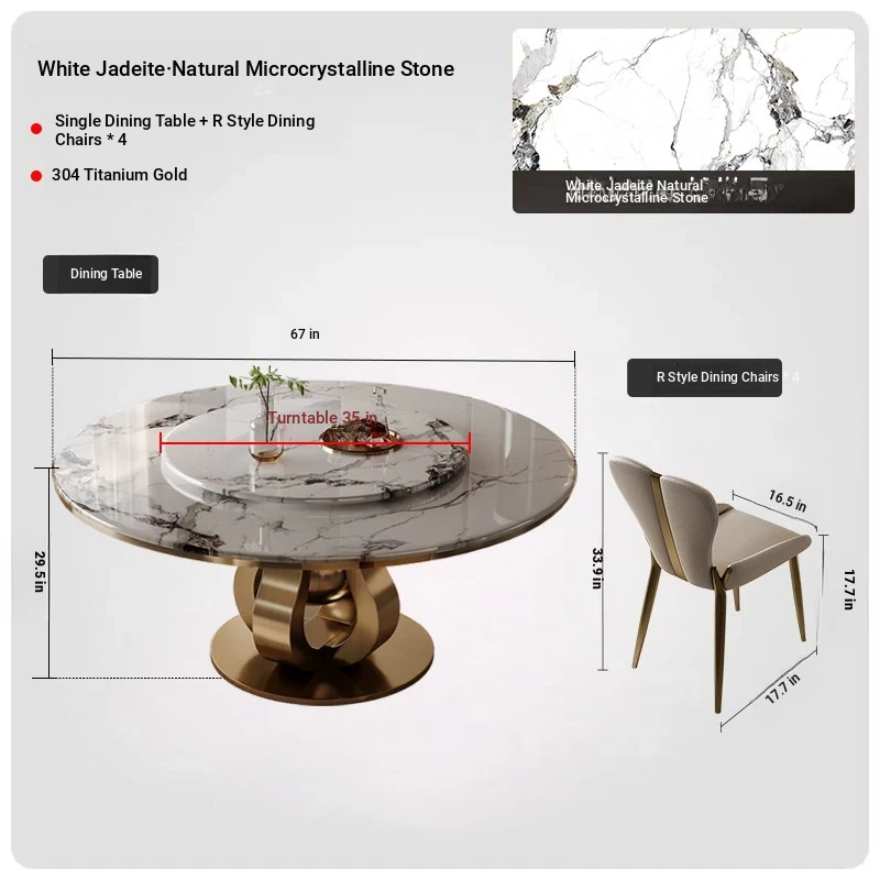 [White Emerald Natural Microlite] 51.18 in Dining Table + Designer Dining Chair * 4