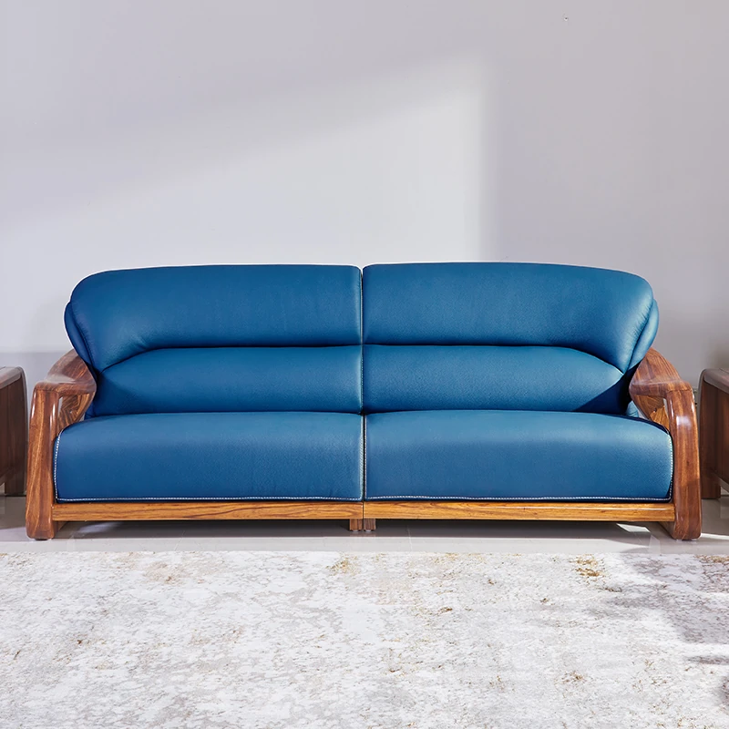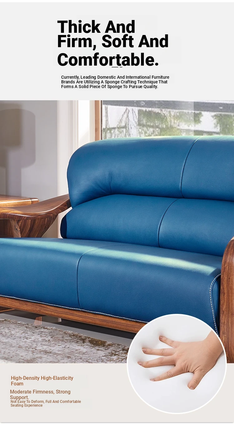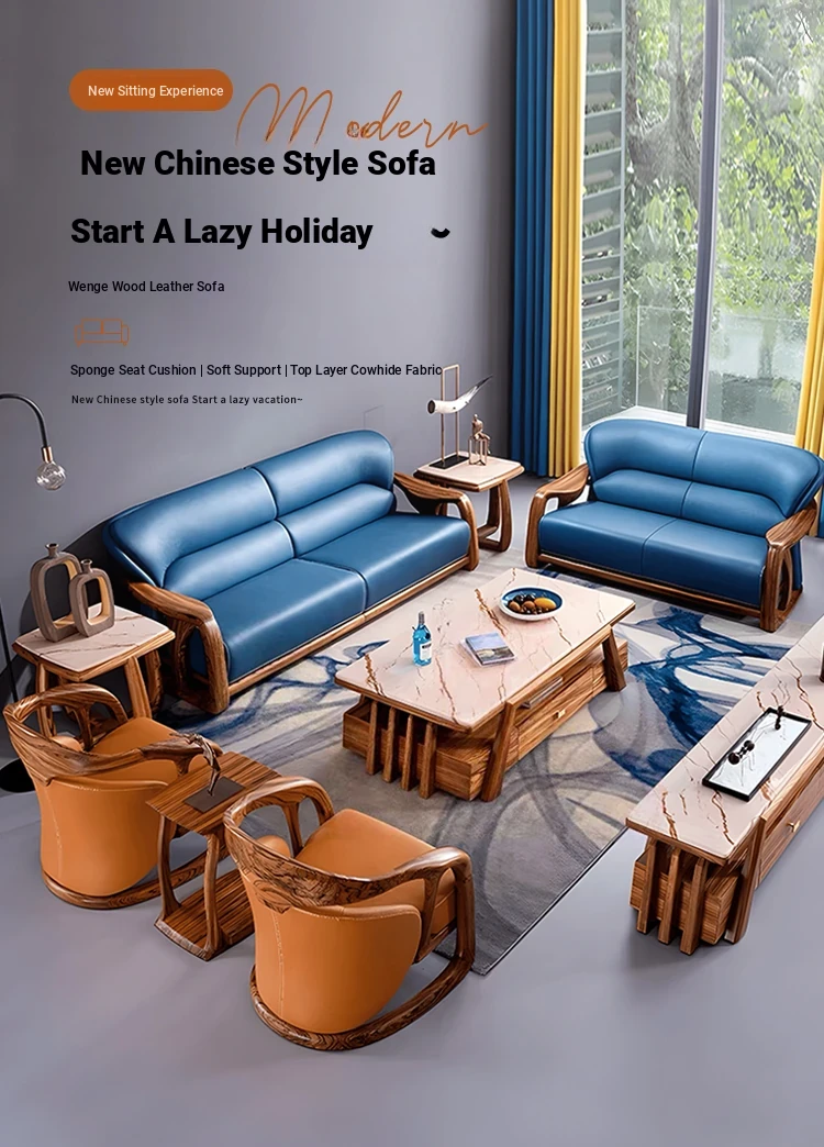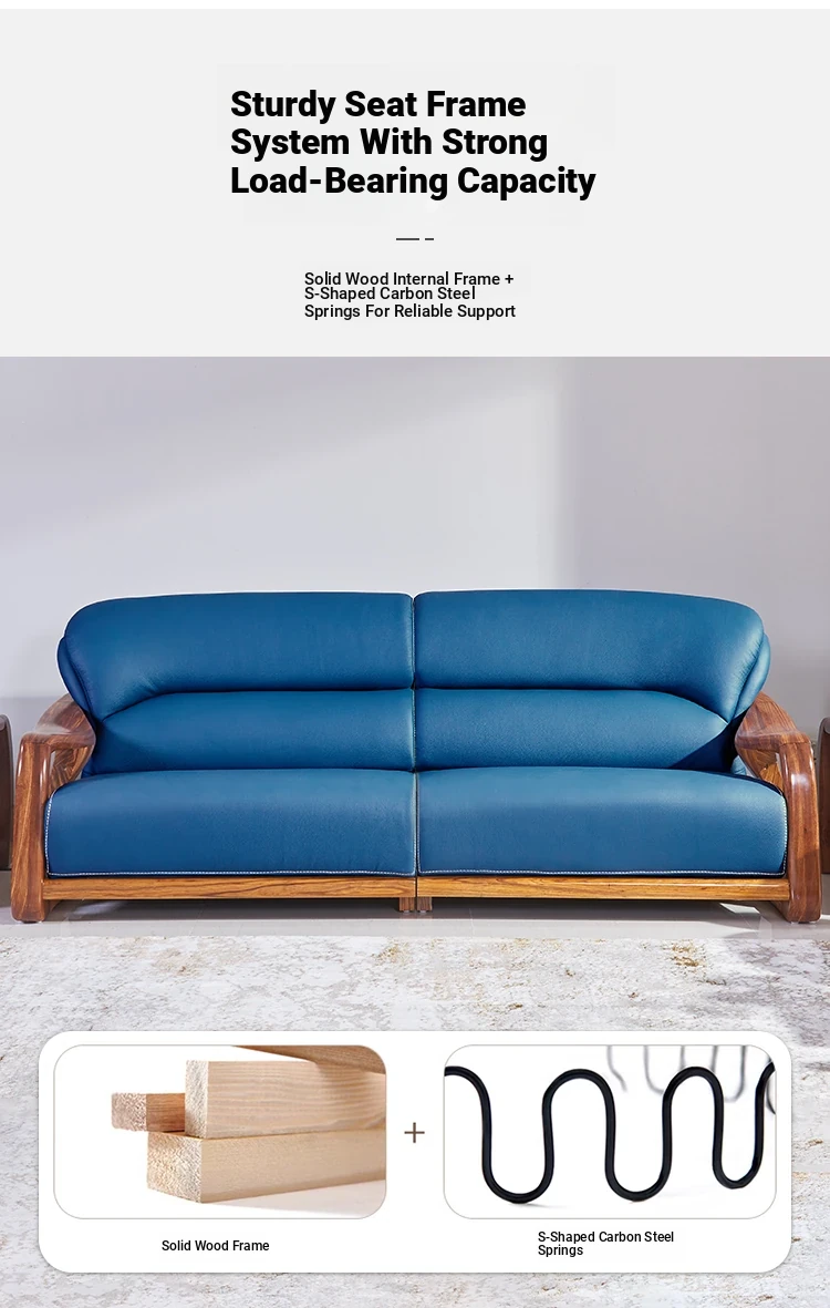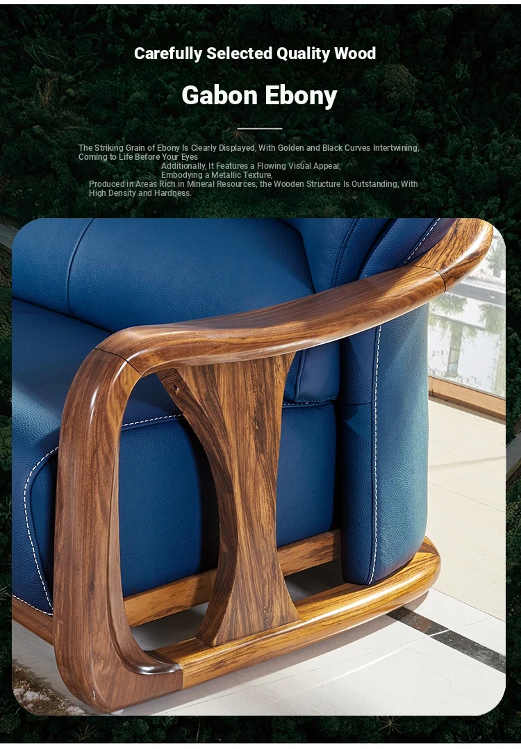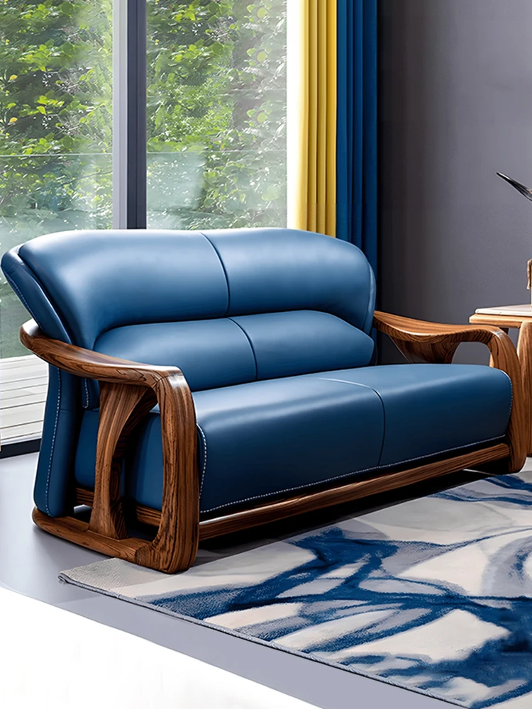 Premium Blackwood Leather Sofa - Luxury New Chinese Style, Crafted from First Layer Cowhide and Solid Wood, Perfect for a Minimalist Living Room
