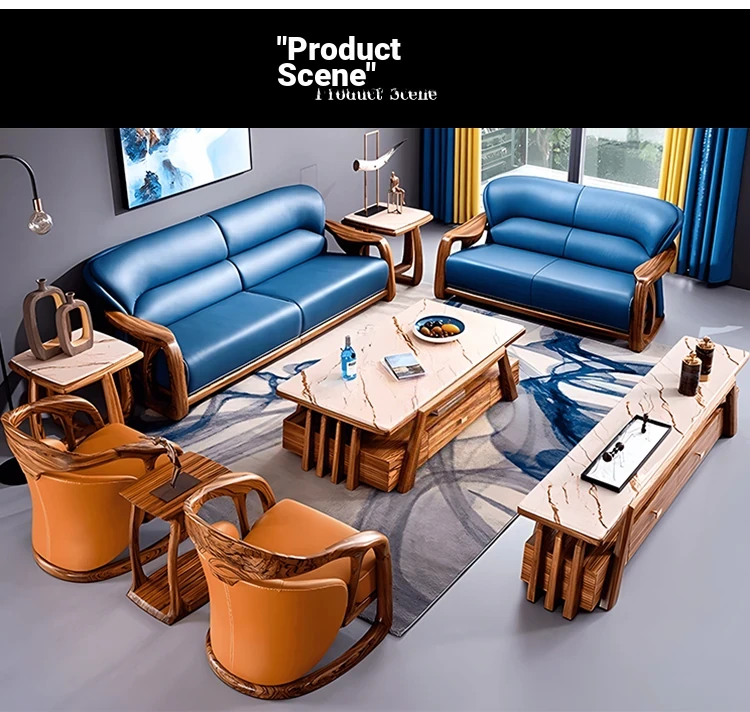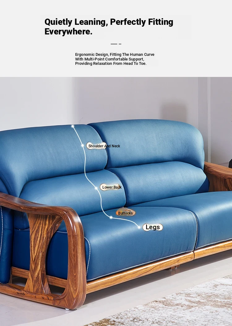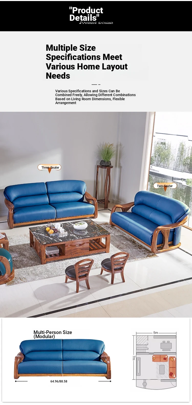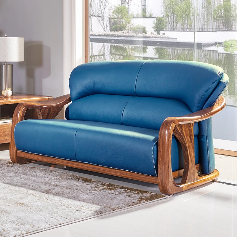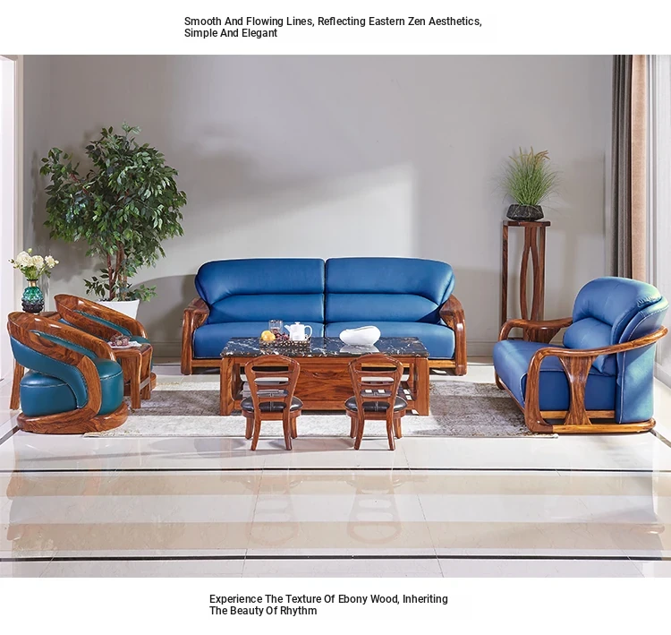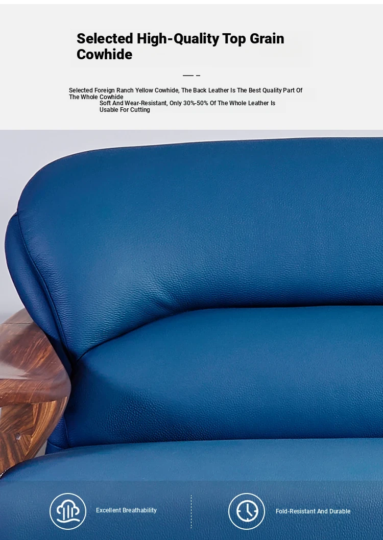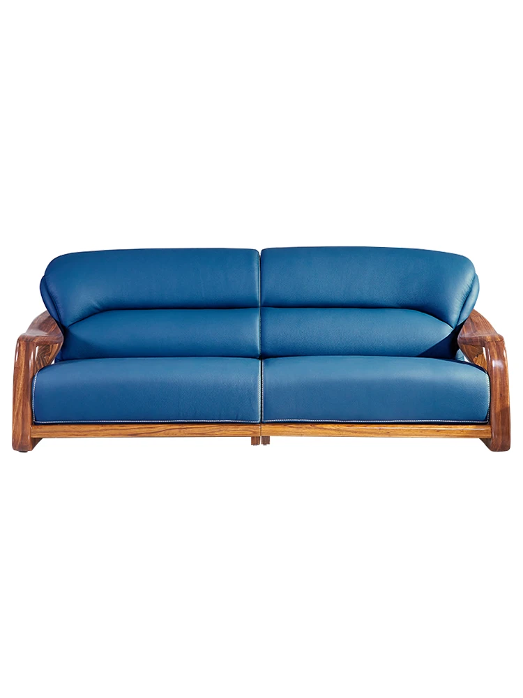 Premium Blackwood Leather Sofa - Luxury New Chinese Style, Crafted from First Layer Cowhide and Solid Wood, Perfect for a Minimalist Living Room