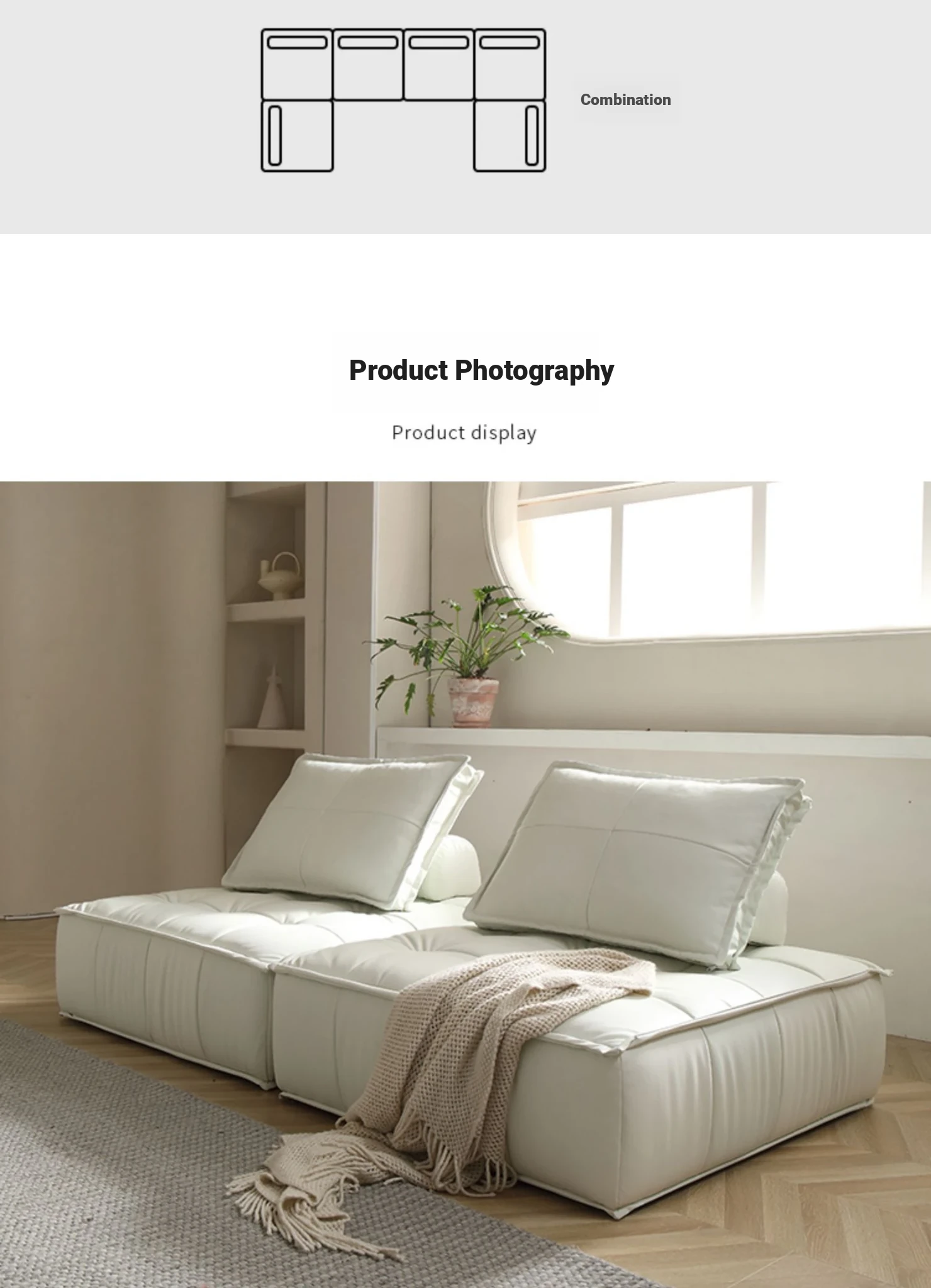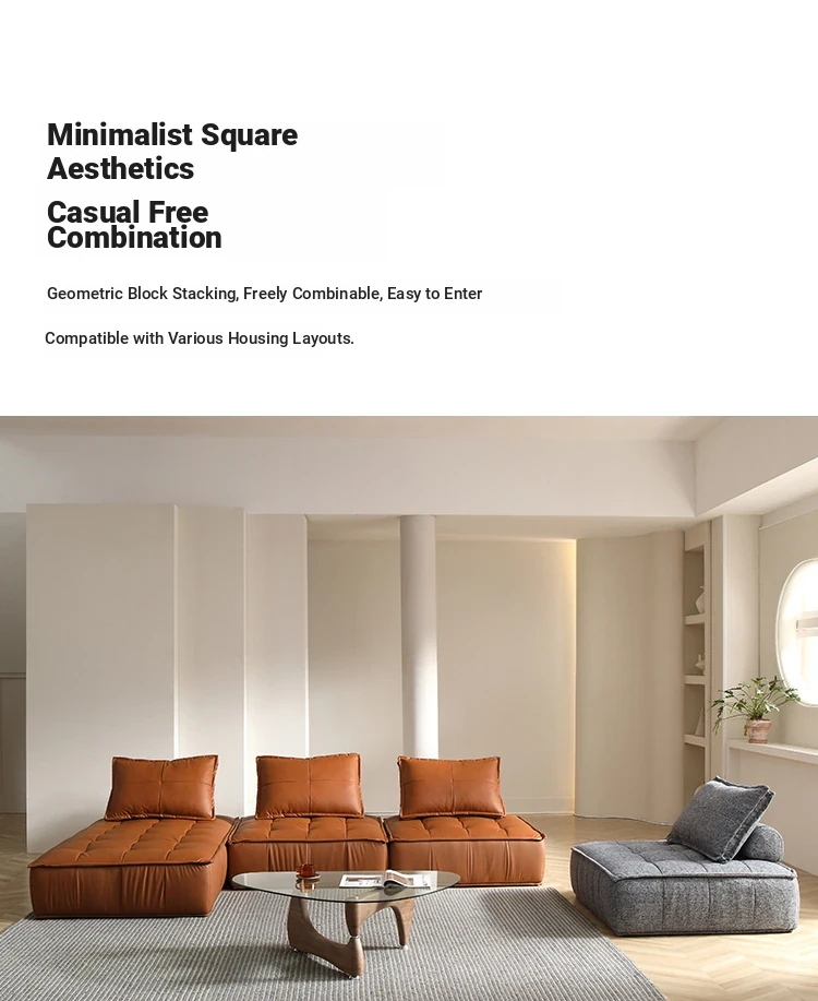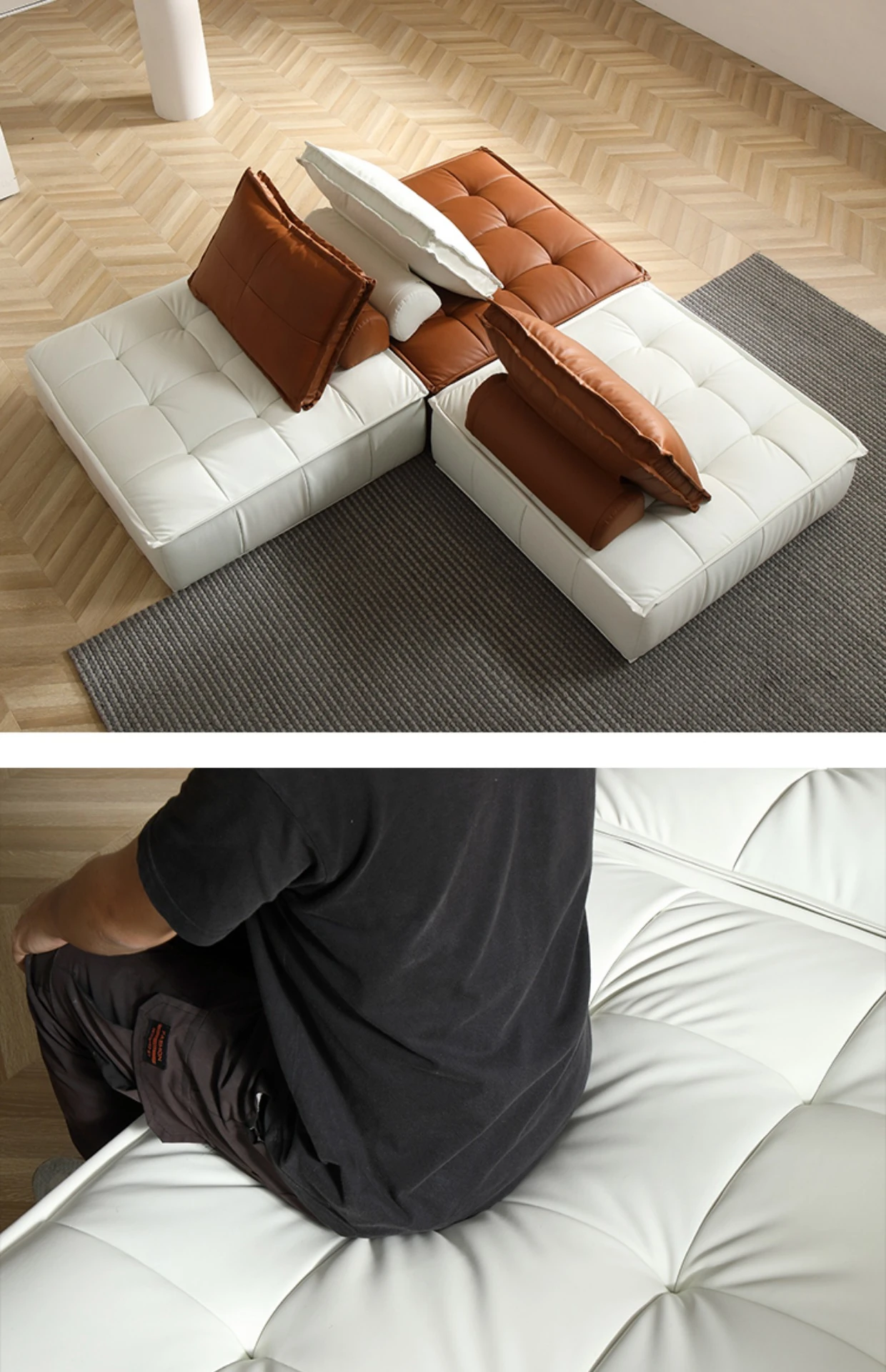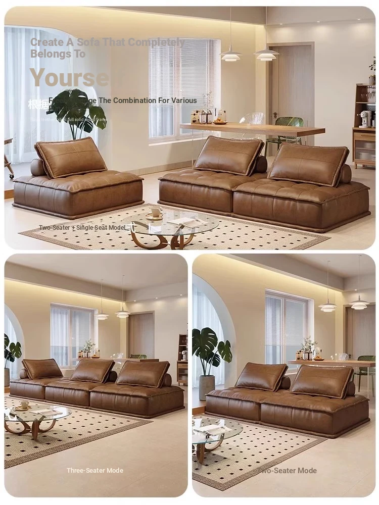Premium Italian Leather Nordic Sofa - Compact Armrest-Free Single Seat for Small Living Rooms - Stylish Piedmont Design in Genuine Cowhide