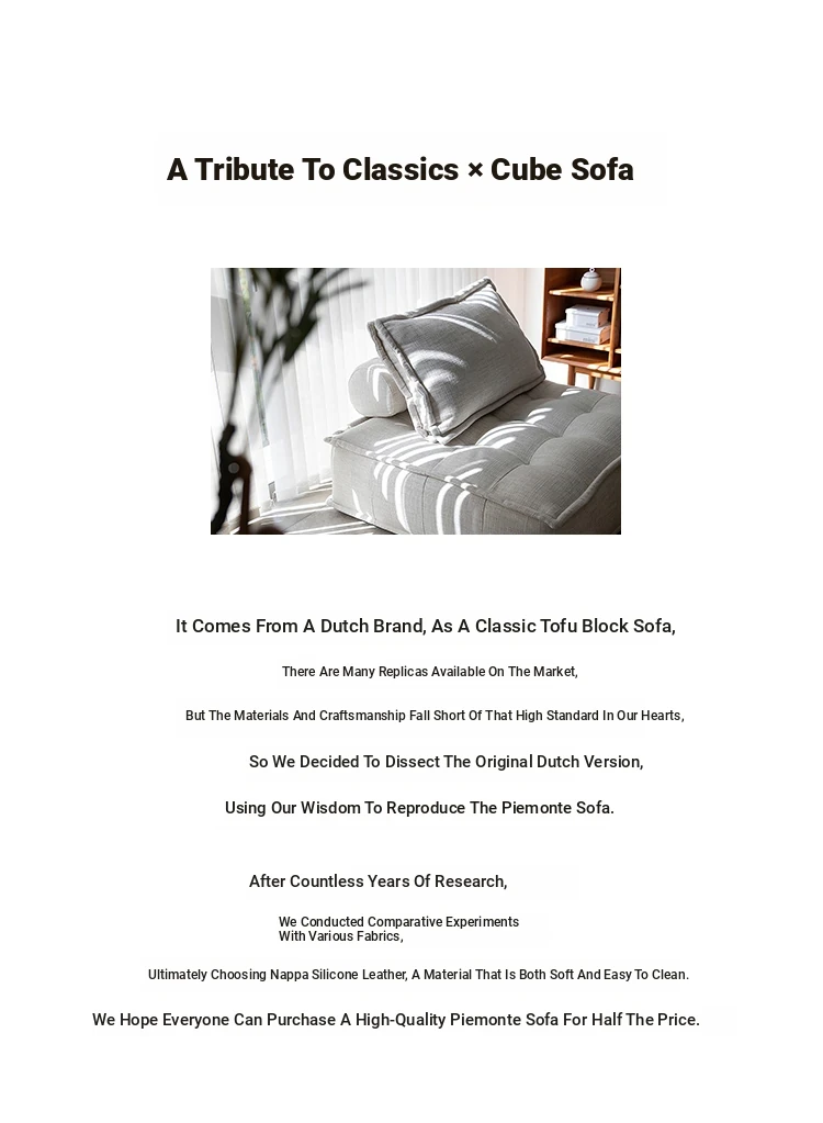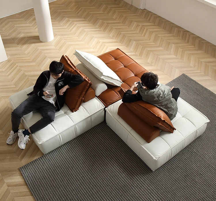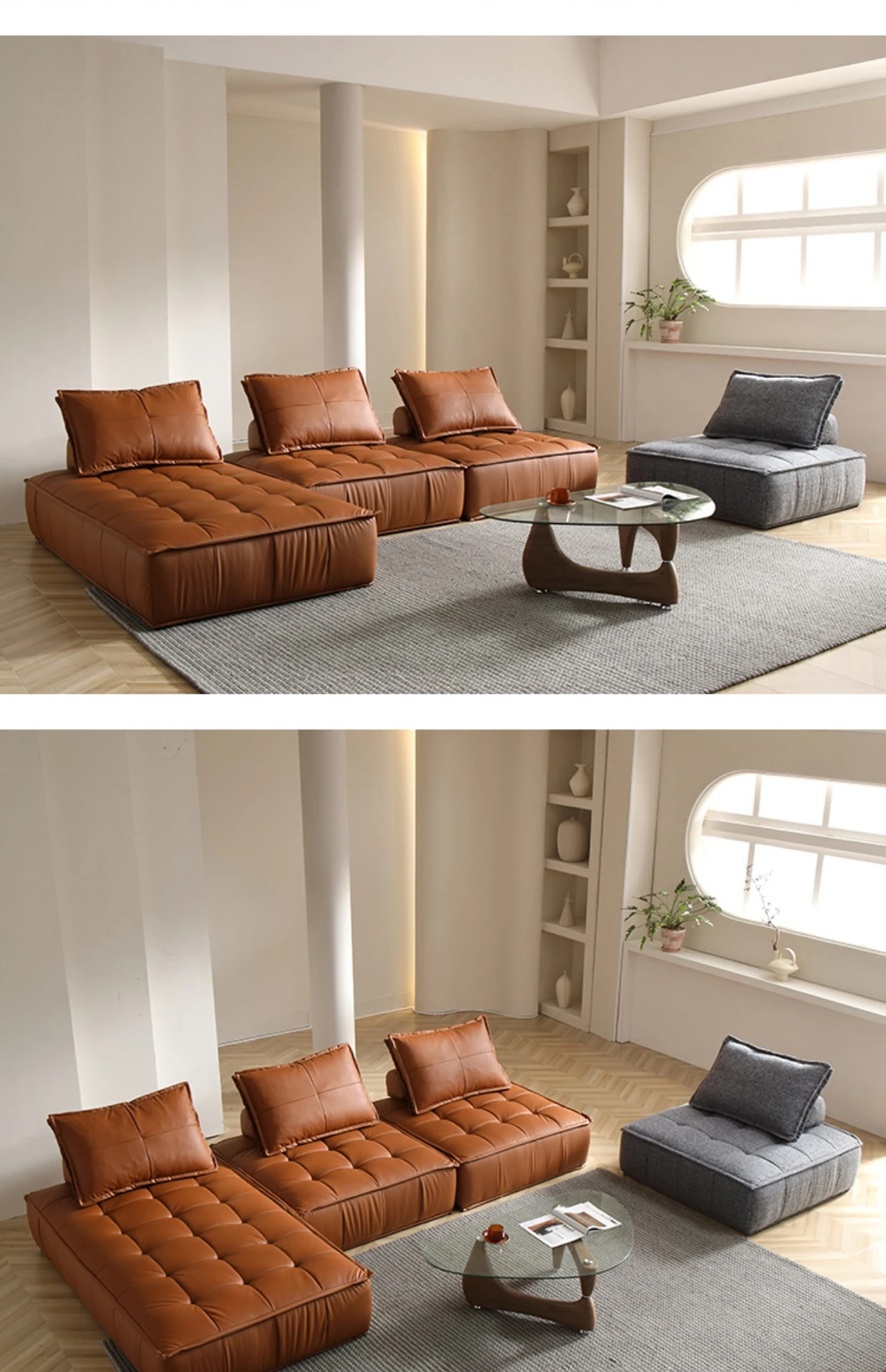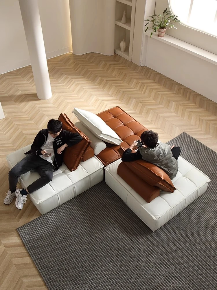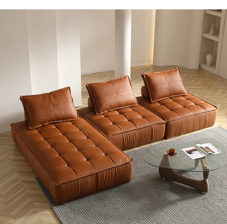 Premium Italian Leather Nordic Sofa - Compact Armrest-Free Single Seat for Small Living Rooms - Stylish Piedmont Design in Genuine Cowhide