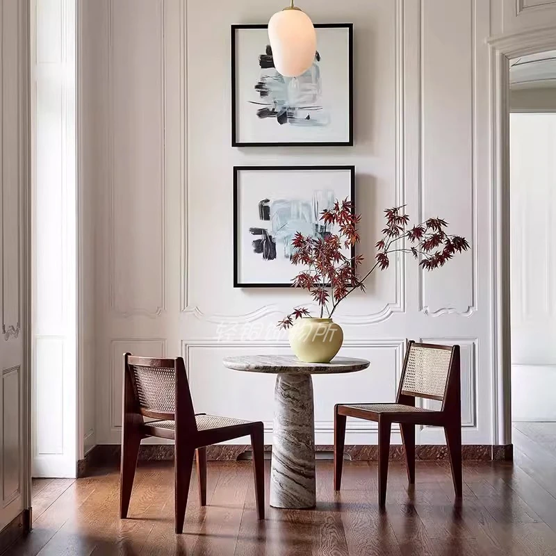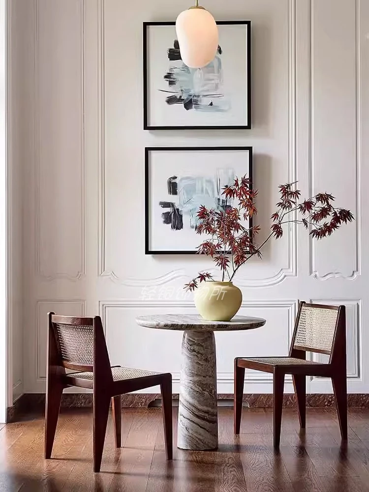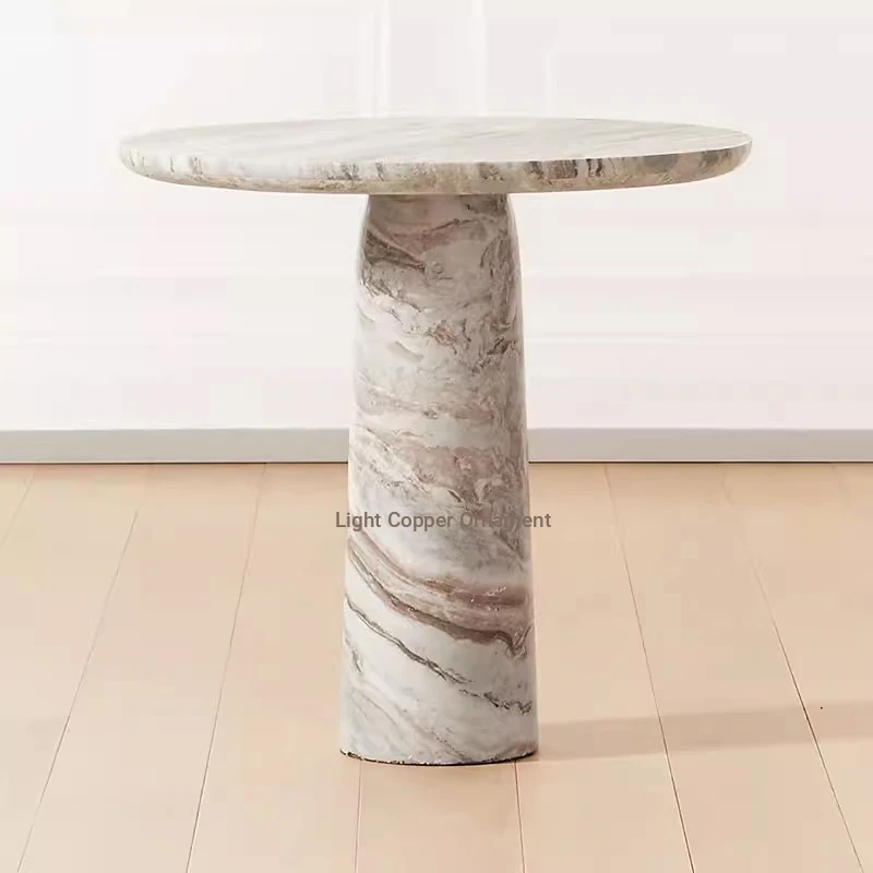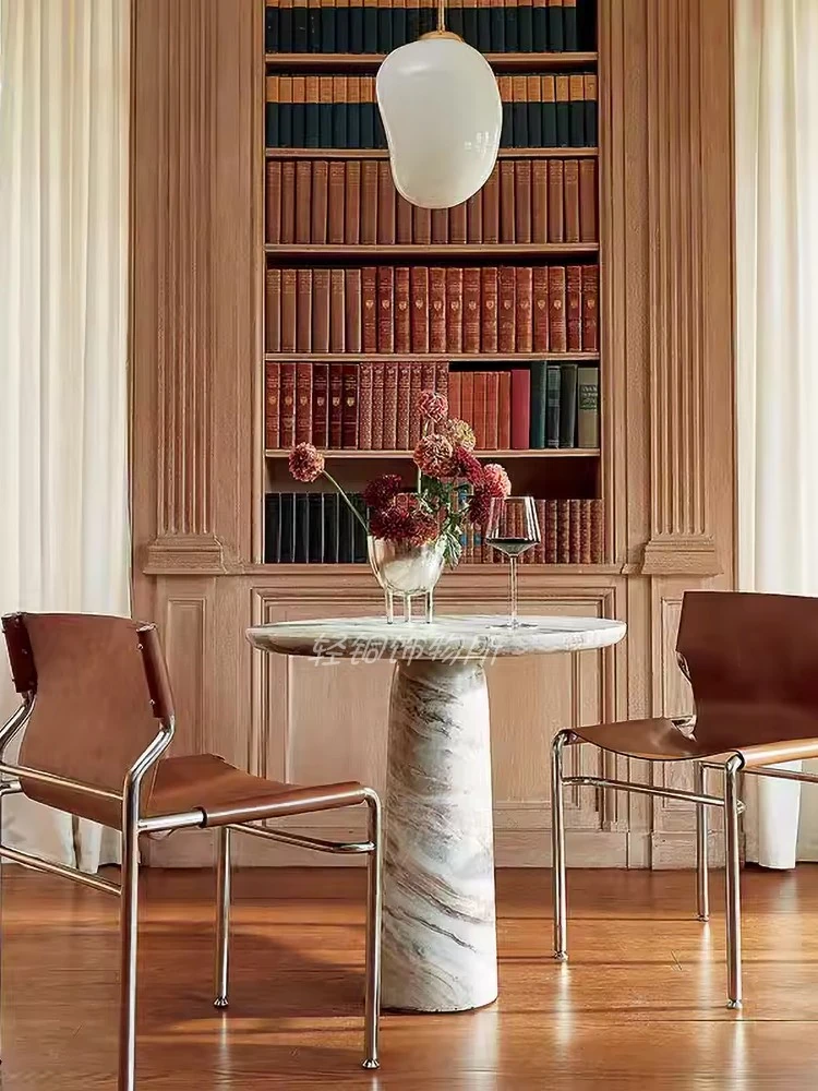 Scandinavian Minimalist Natural Marble Designer Coffee Table - Artistic Round Dining Table for Stylish Living Room and Sample Room Decor