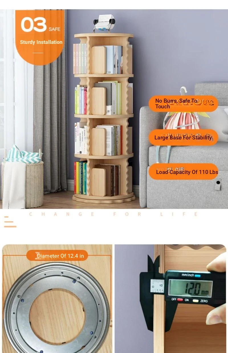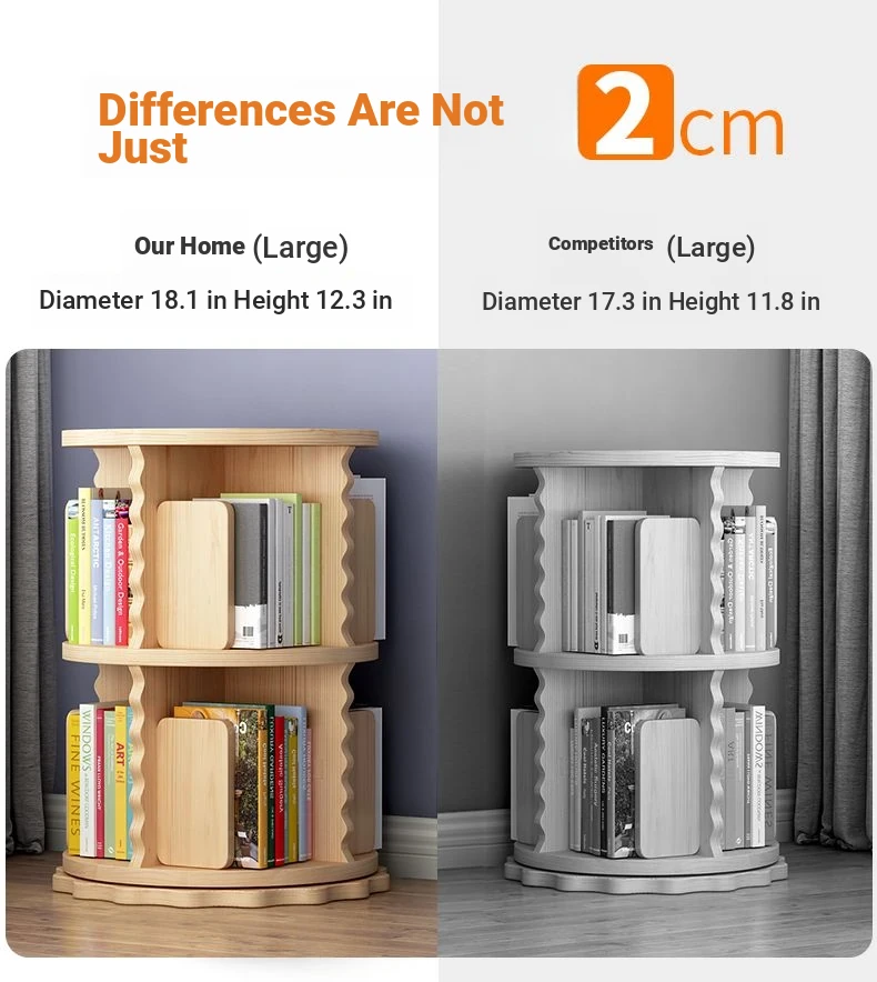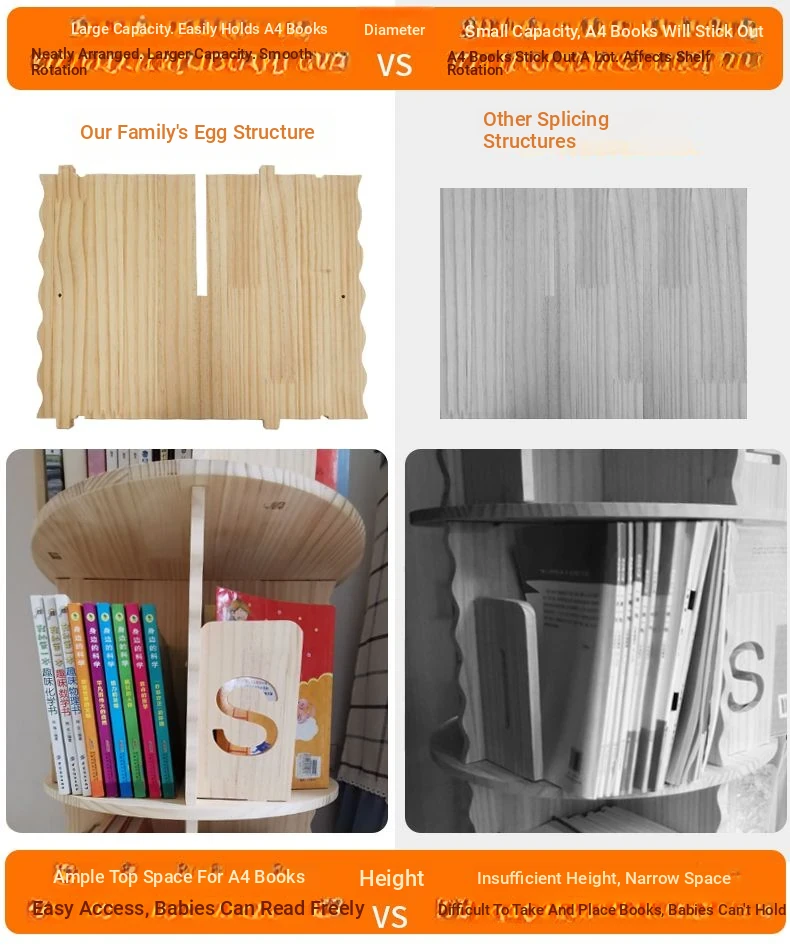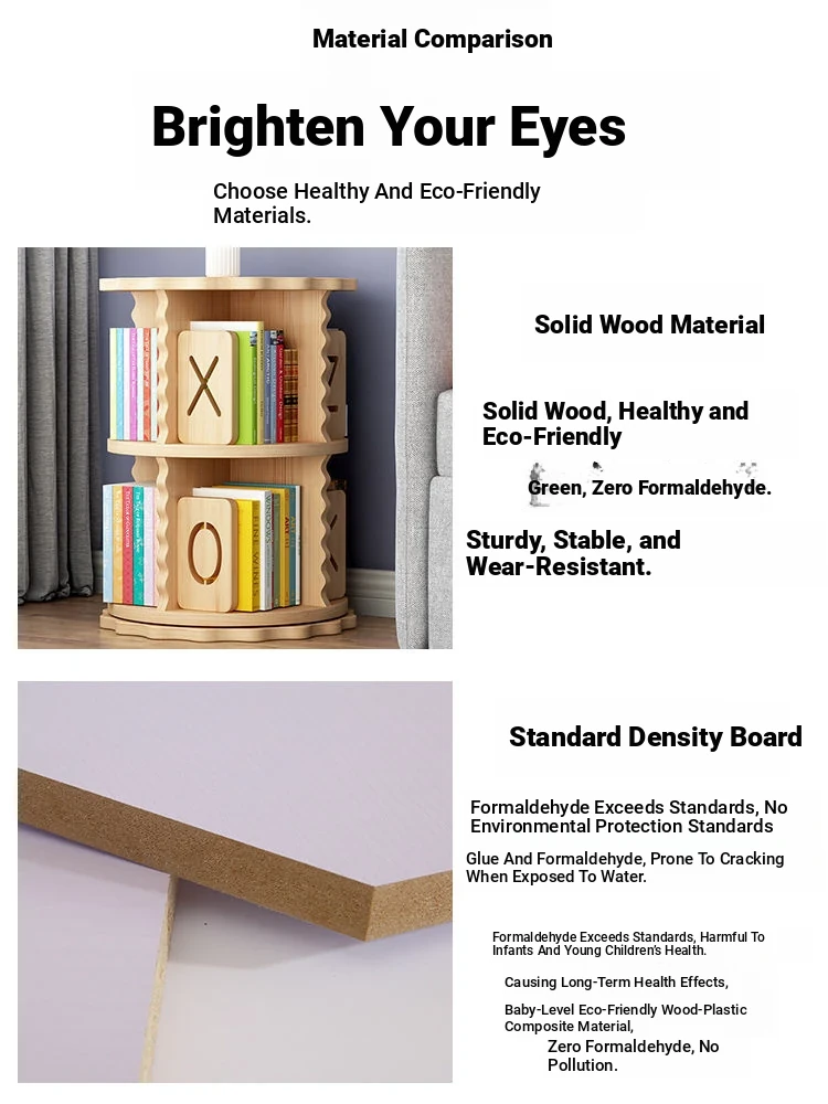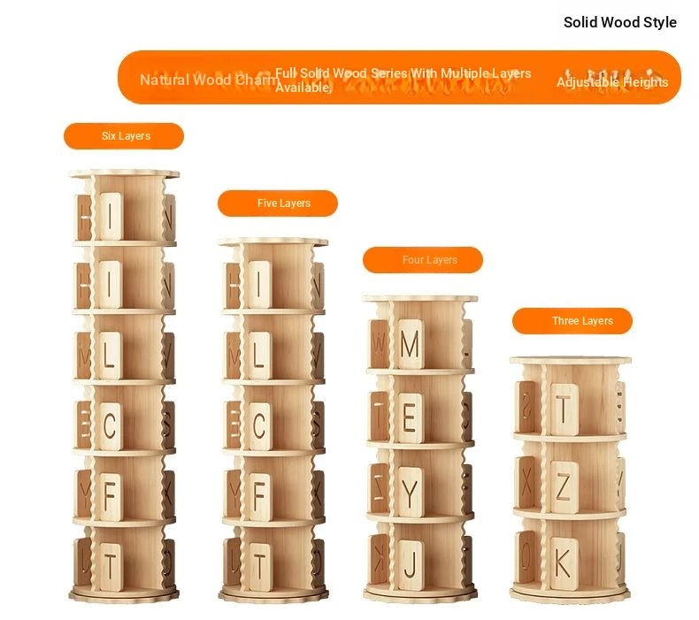 Solid Wood Rotating Bookshelf - Minimalist Floor Standing Design for Home Use, Perfect for Children's Picture Books and Storage, 360-Degree Small Bookcase for Student Bedrooms.