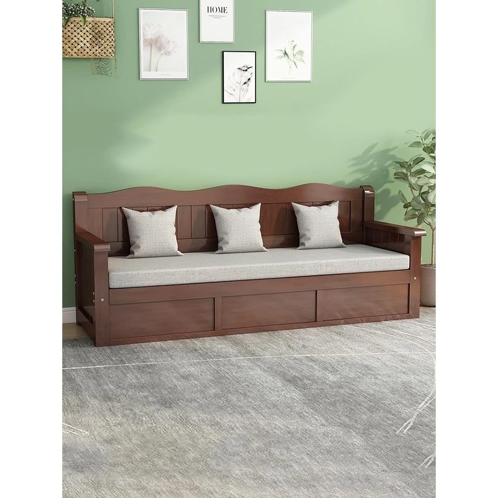 Stylish New Chinese-Style Solid Wood Sofa Bench for Small Spaces – Three-Seater with Storage Drawers, Ideal for All Seasons, Perfect for Your Living Room!
