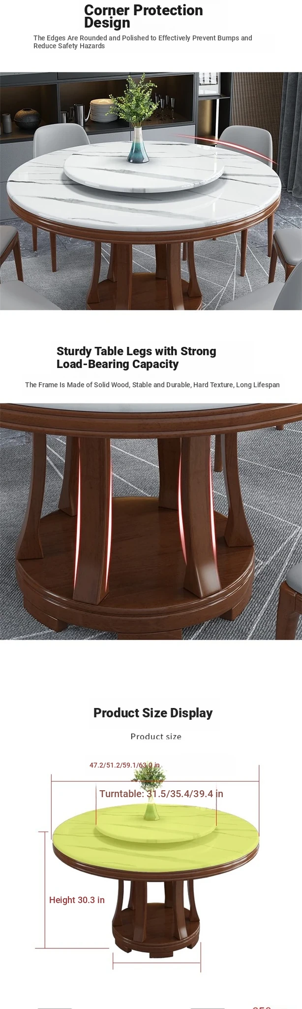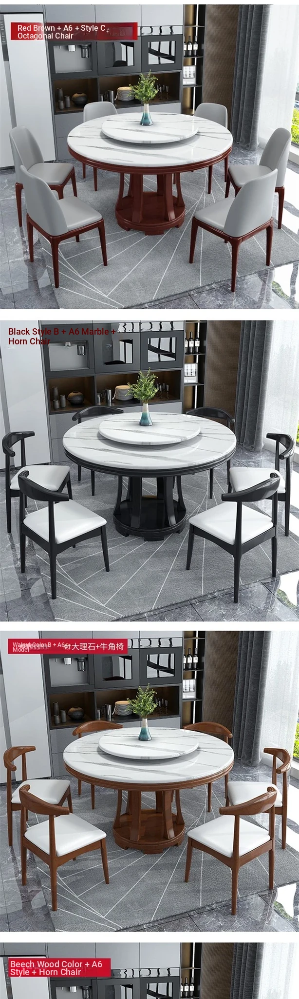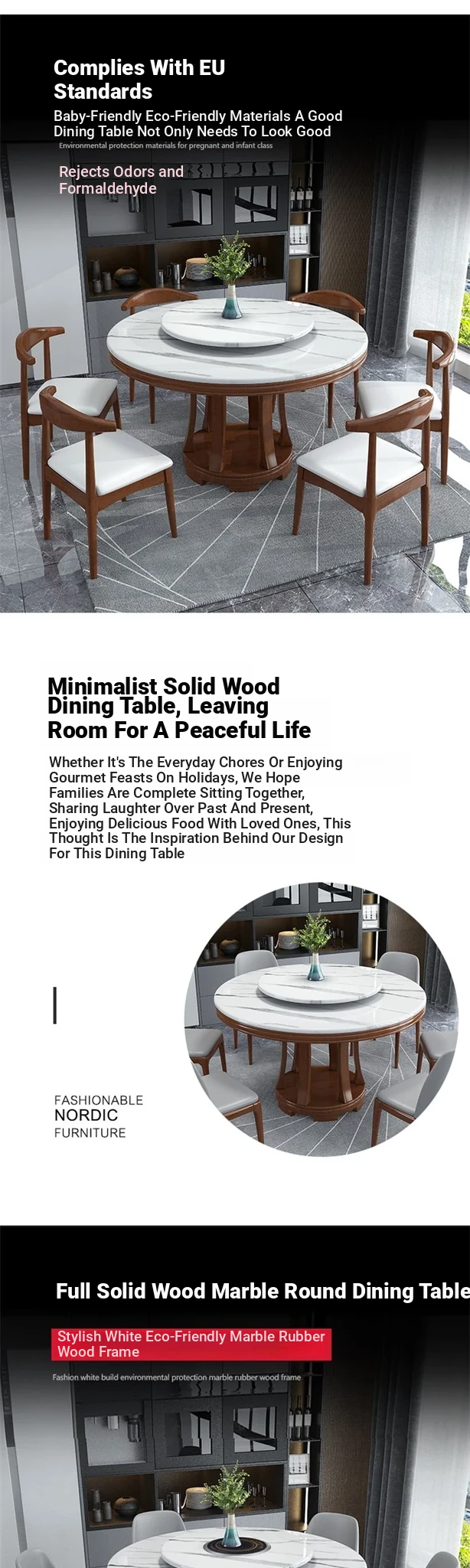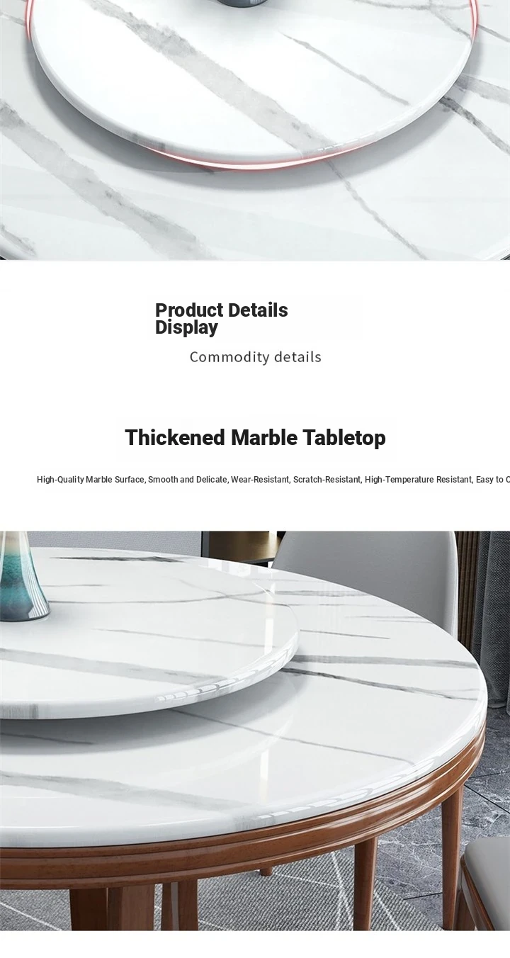 Stylish Solid Wood and Marble Dining Table Set - Modern Round Dining Table with Chairs for Elegant Home Dining Experience