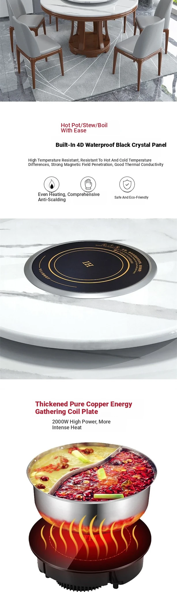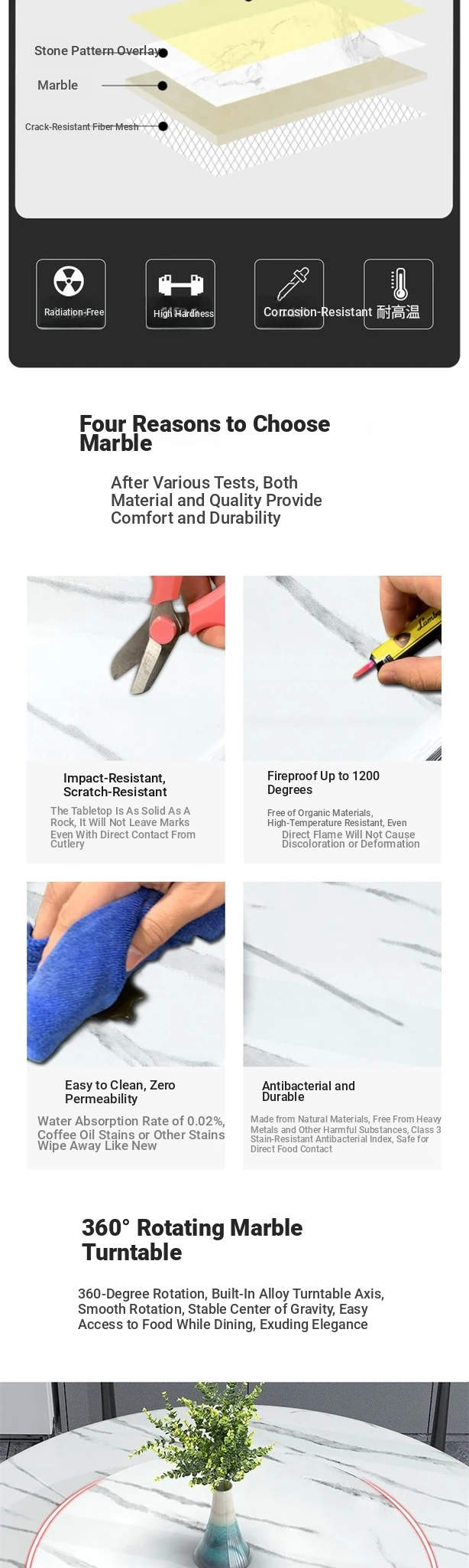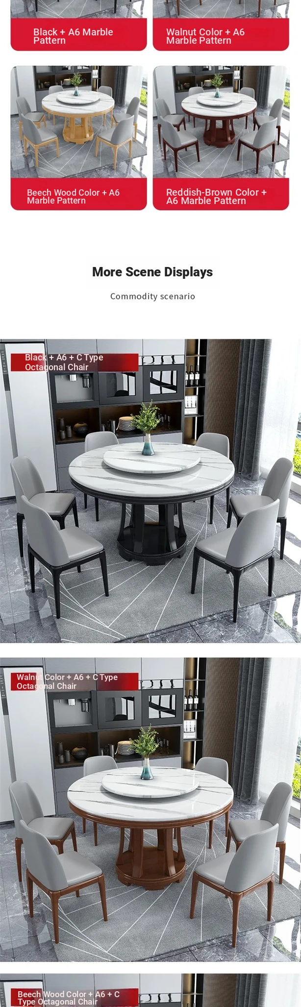 Stylish Solid Wood and Marble Dining Table Set - Modern Round Dining Table with Chairs for Elegant Home Dining Experience