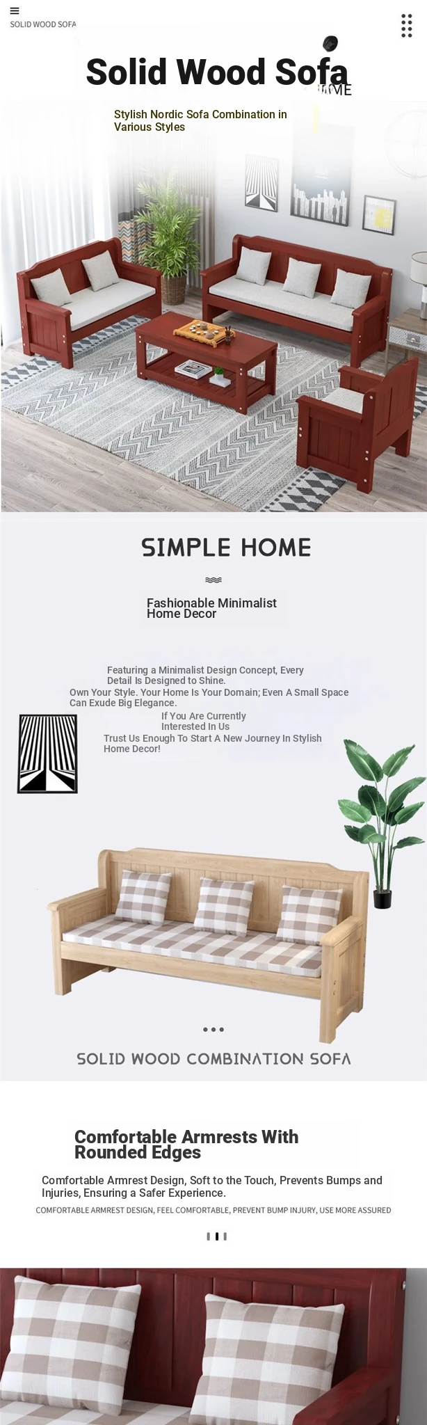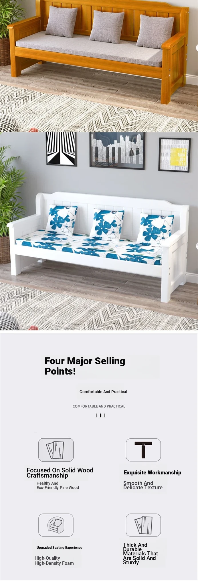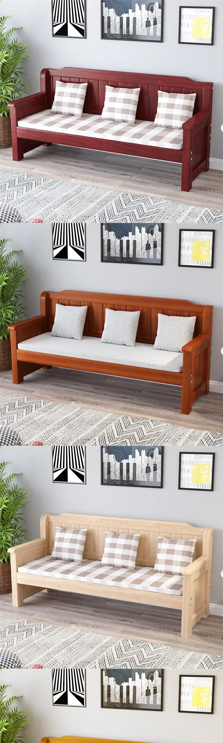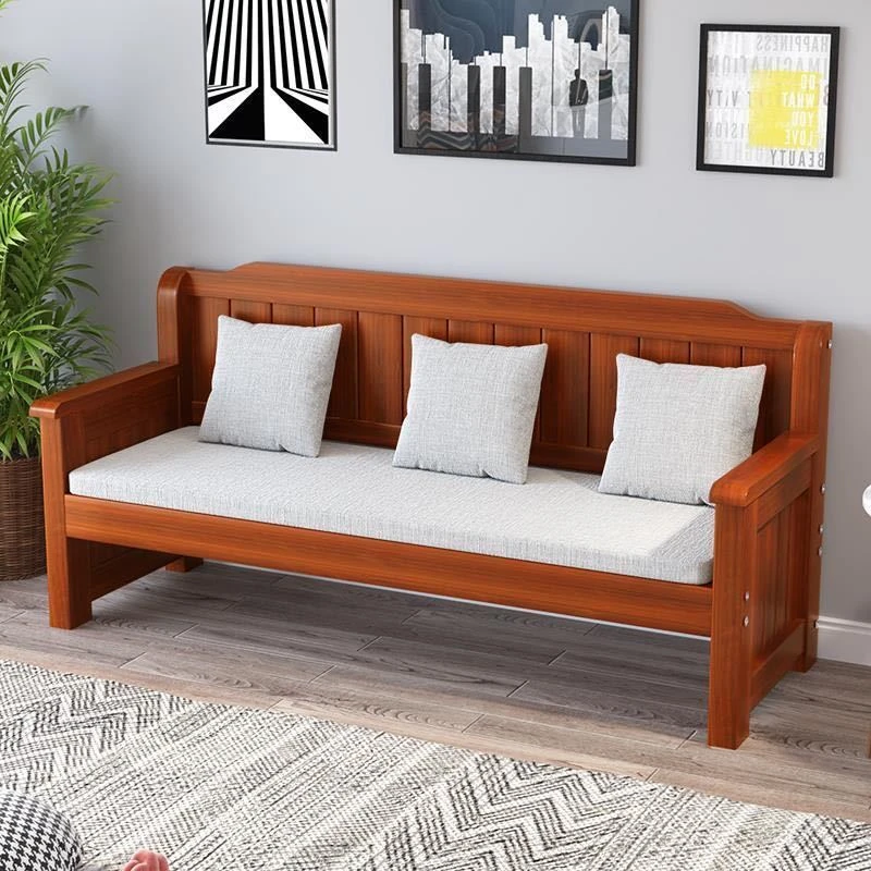 Stylish Solid Wood Sofa Bench for Small Spaces - Minimalist Three-Piece Seating Set for Balconies and Living Rooms, Perfect for Relaxation with Backrest