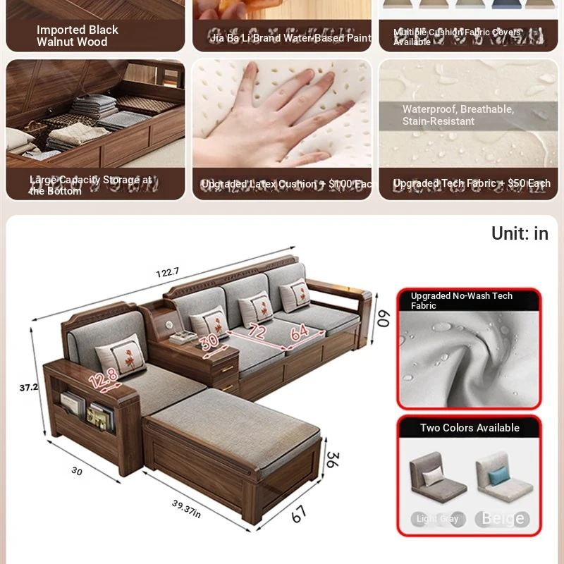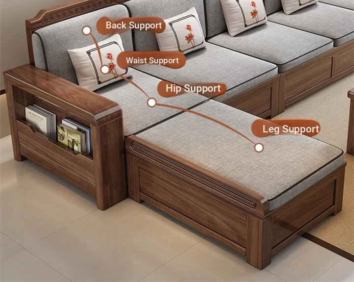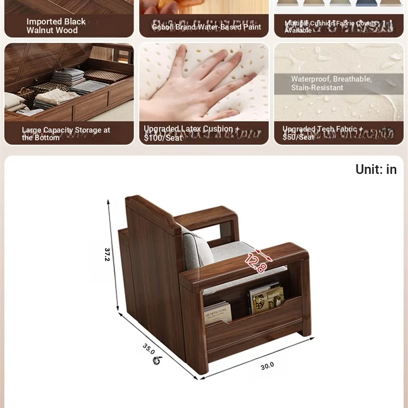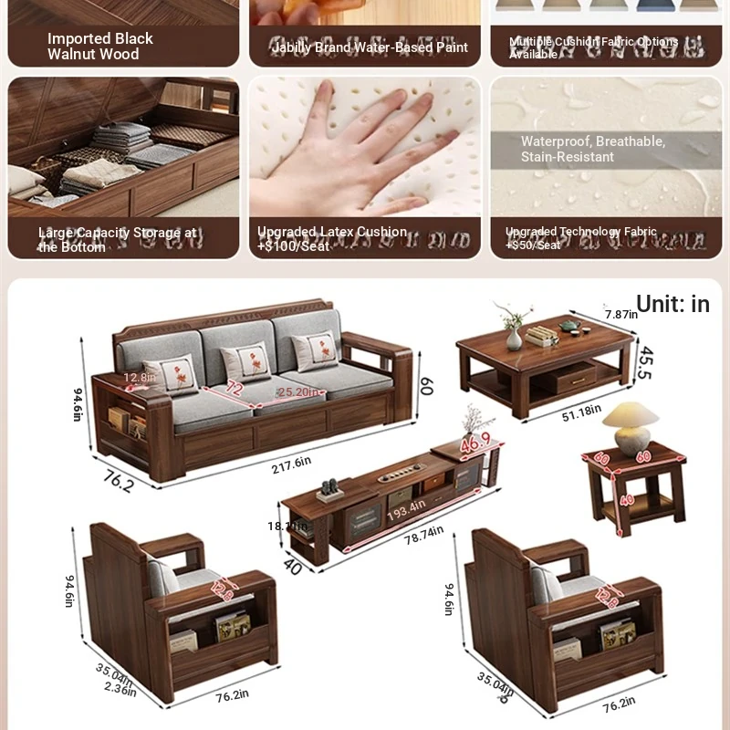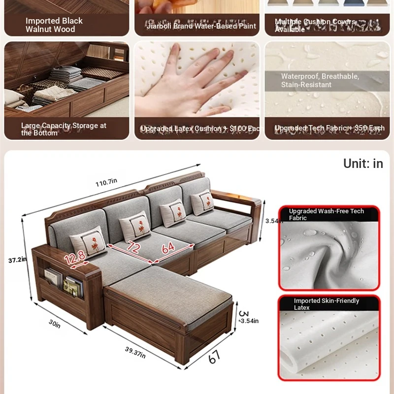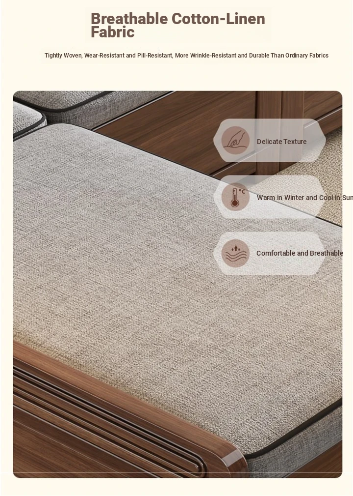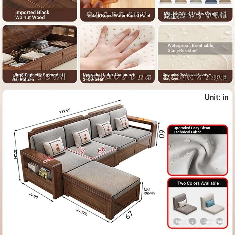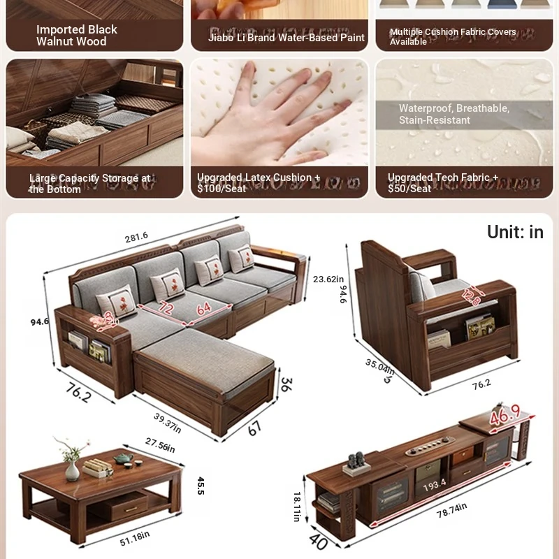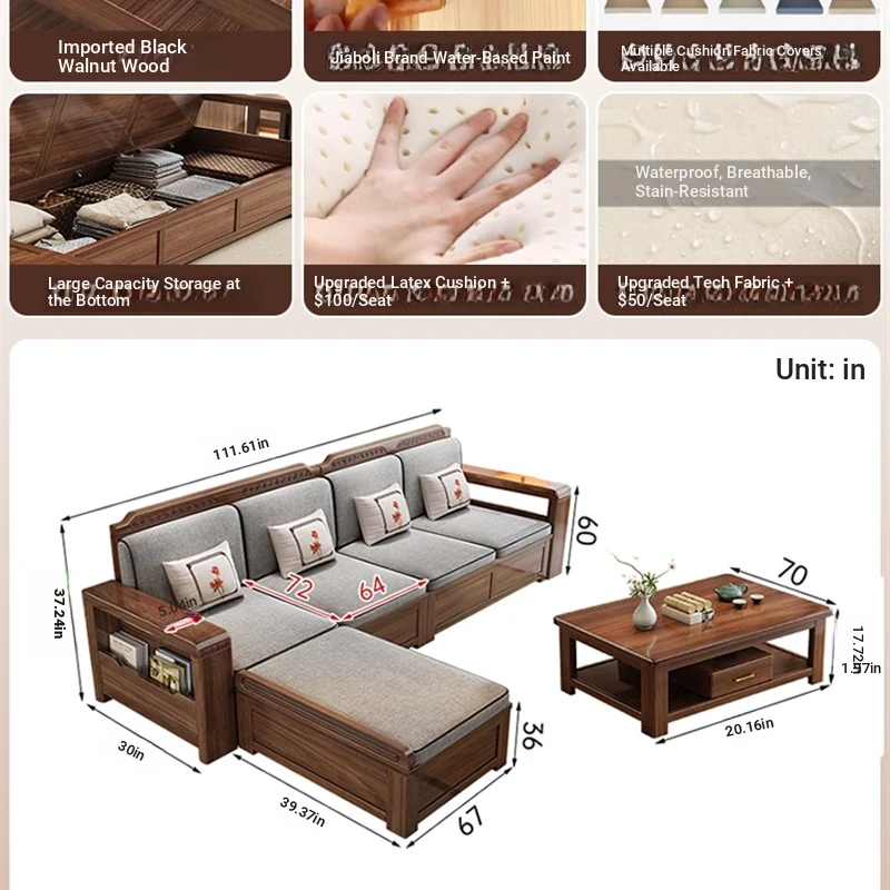 Trendy New Chinese Style Black Walnut Solid Wood Sofa - All-Season Multipurpose Storage Sofa for Living Room - Factory Direct Offer
