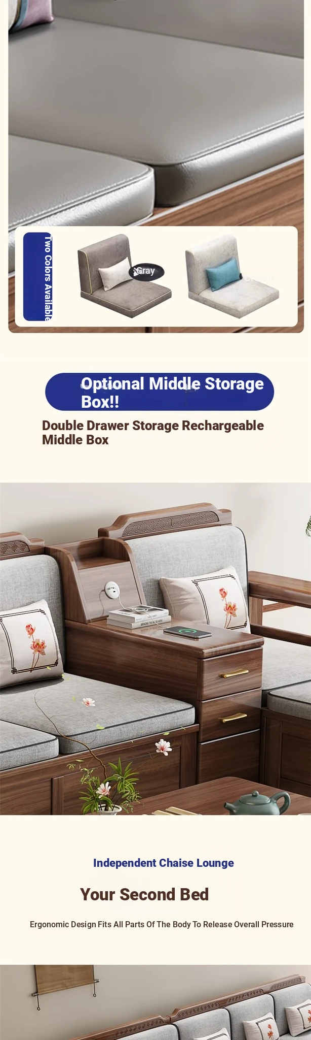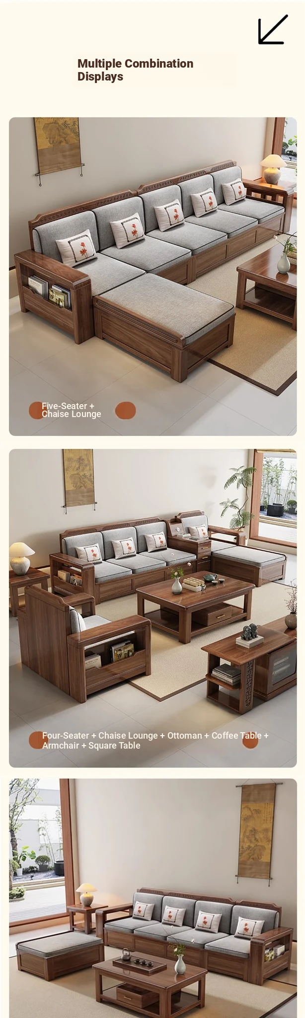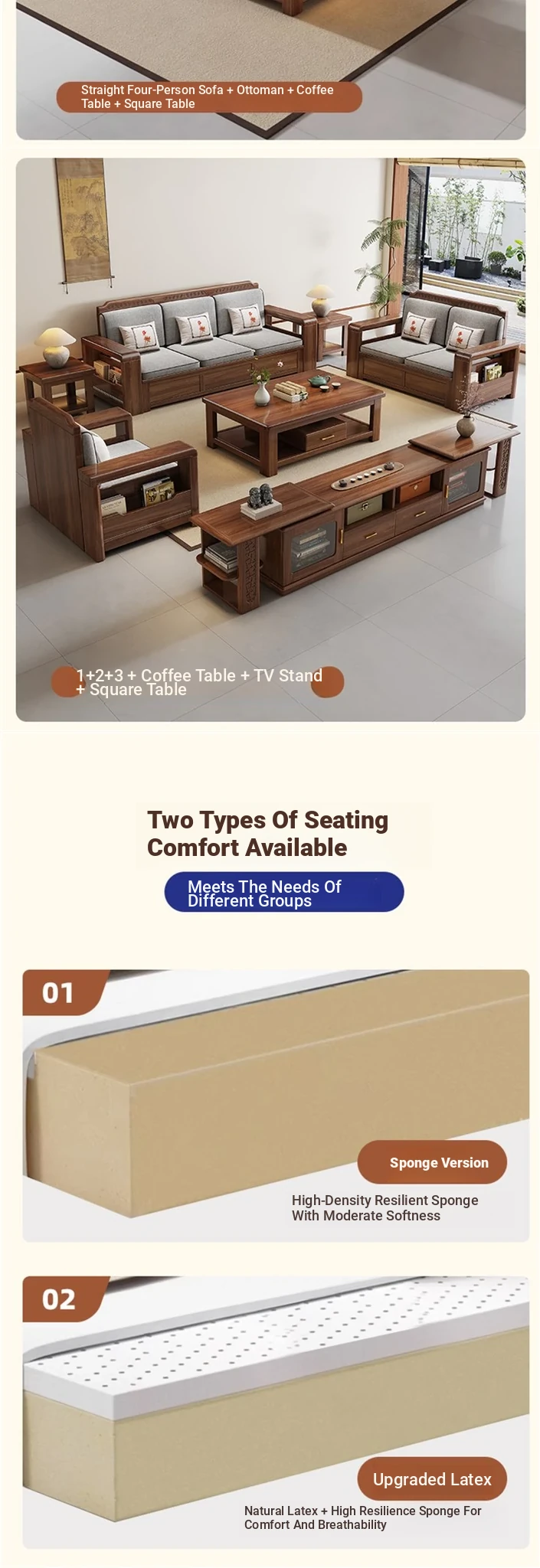 [Silk Cotton] Four + Imperial Couch + Middle Box + Tea Table + TV Cabinet