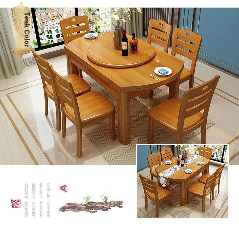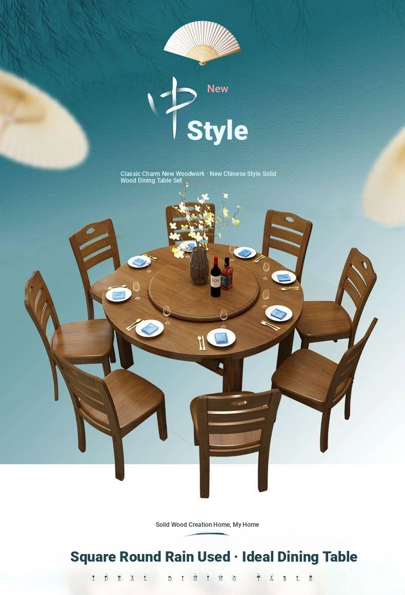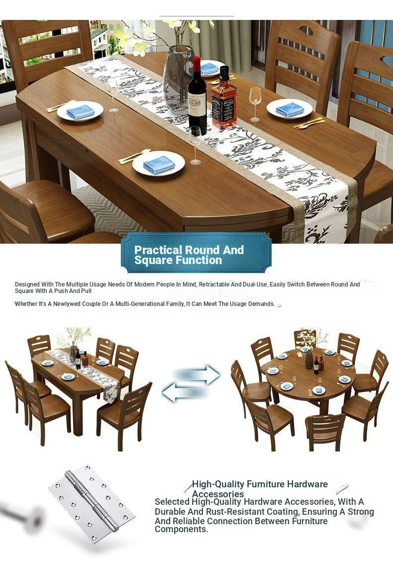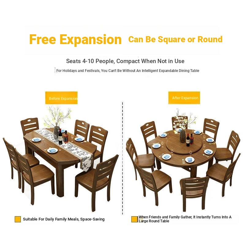 Versatile Solid Wood Dining Table and Chair Set with Rotating Lazy Susan - Compact and Expandable Design for Small Homes and Restaurants, Perfect for Dining Experiences.