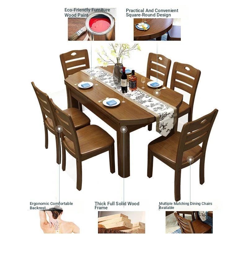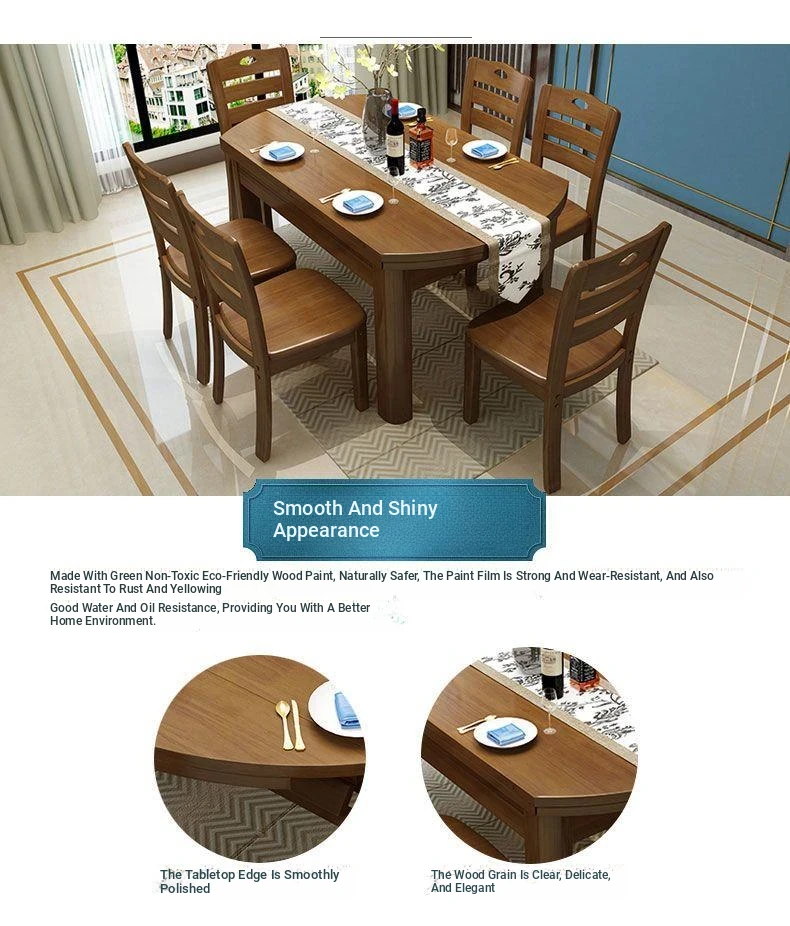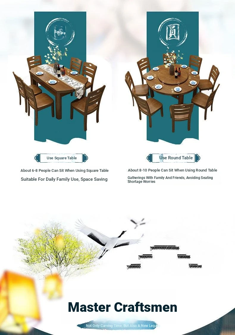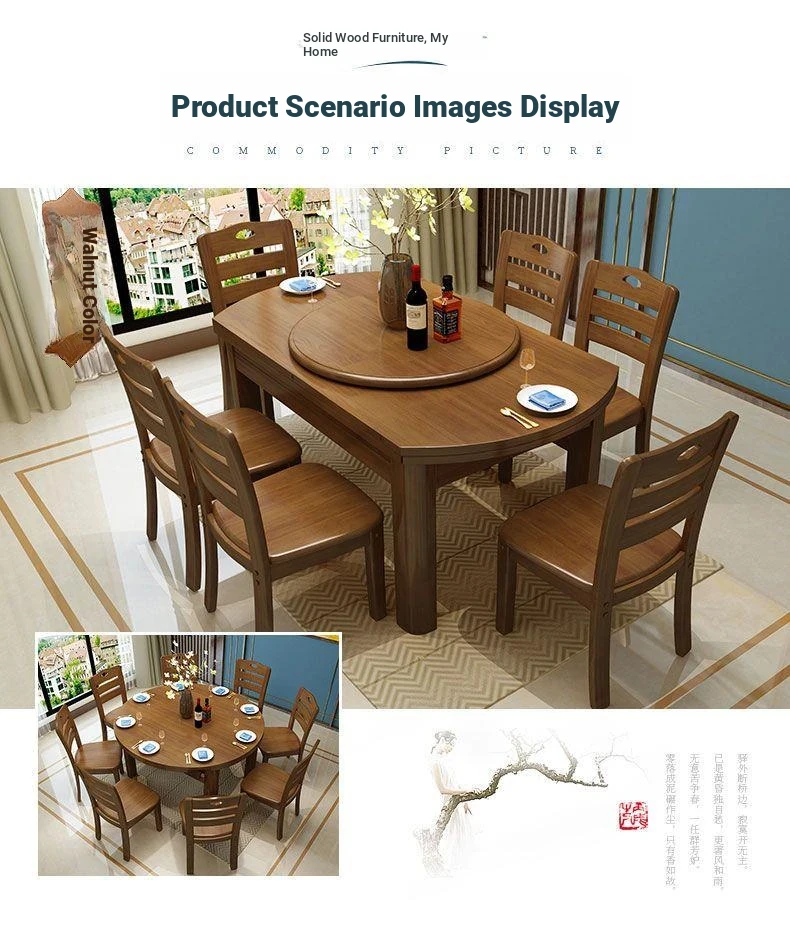 Versatile Solid Wood Dining Table and Chair Set with Rotating Lazy Susan - Compact and Expandable Design for Small Homes and Restaurants, Perfect for Dining Experiences.
