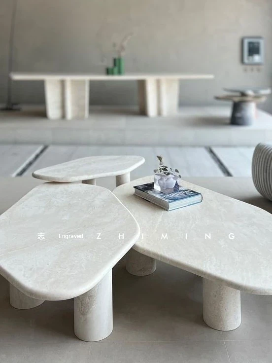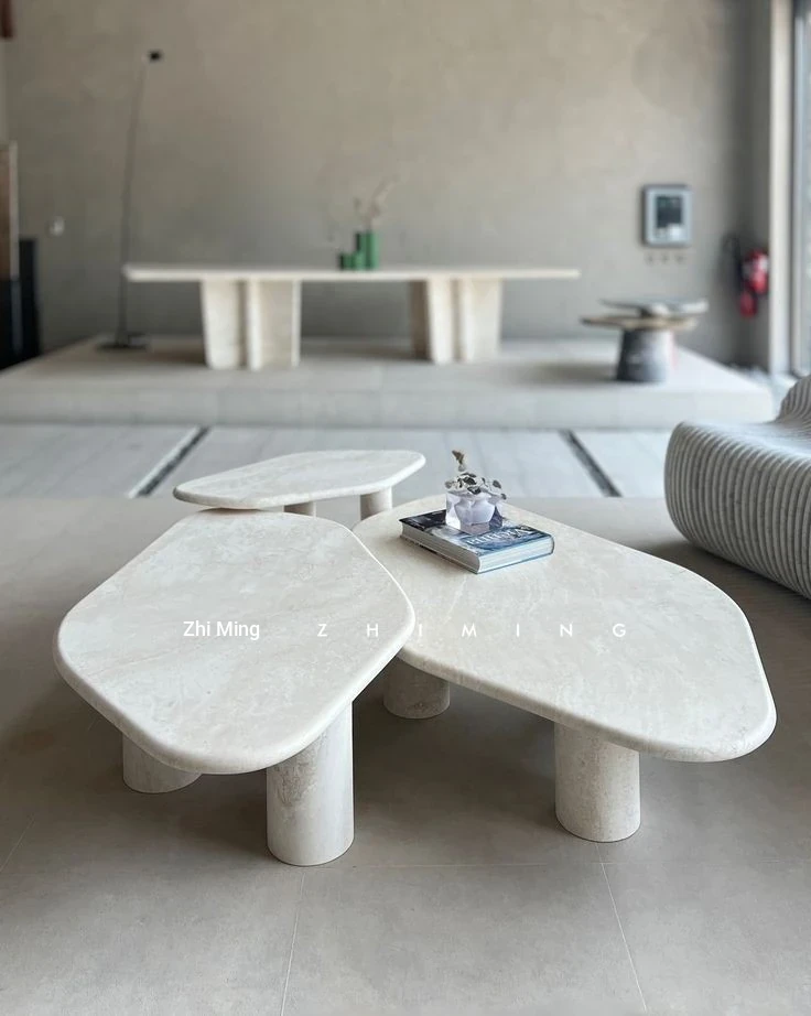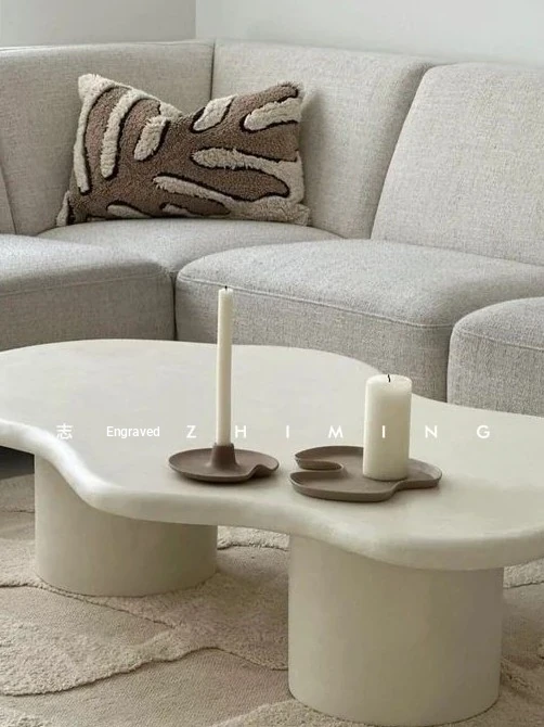 Wabi-Sabi Style Natural White Marble Coffee Table - Unique Cloud-Shaped Designer Accent Table for Living Room, Perfect for Home Décor in Scandinavian Aesthetic