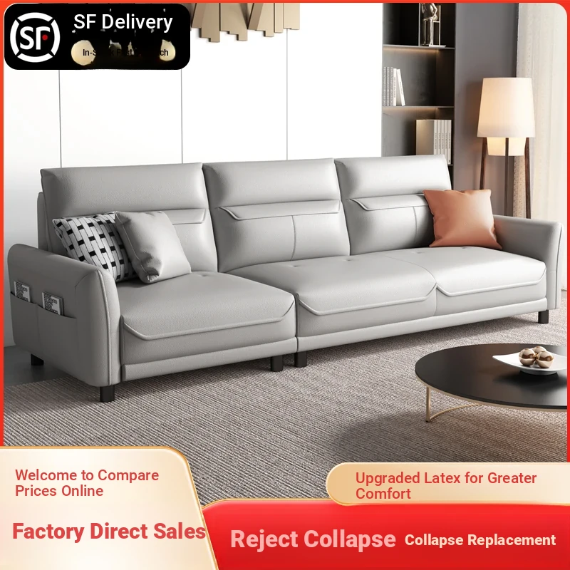 Stylish Modern Faux Leather Latex Sofa for Small Living Rooms - Versatile 3-Seater and 4-Seater Combinations Perfect for Cat Owners!