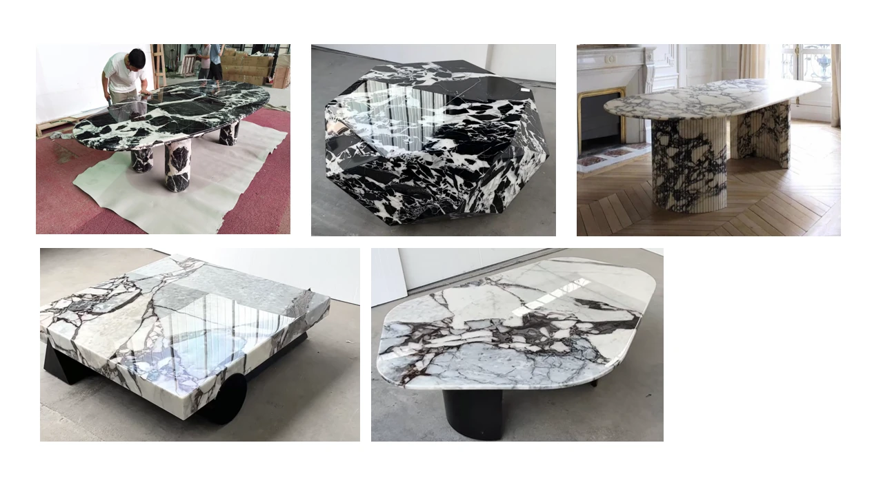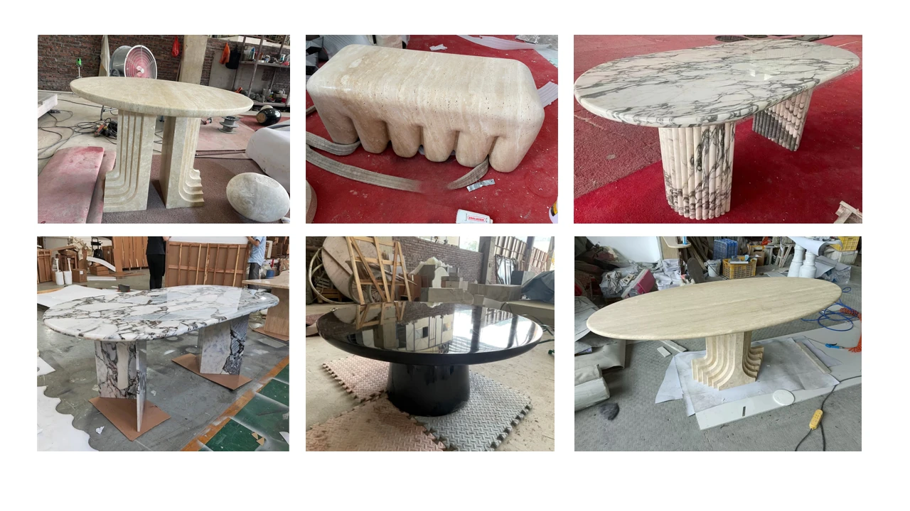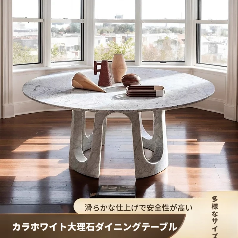 2025年新作!高級天然大理石製ダイニングテーブル - ヴィラ・ホテル・クラブに最適な洗練されたデザイン。ユニークな形状の商業用ラウンドテーブルで、洗練された食事体験を提供します!