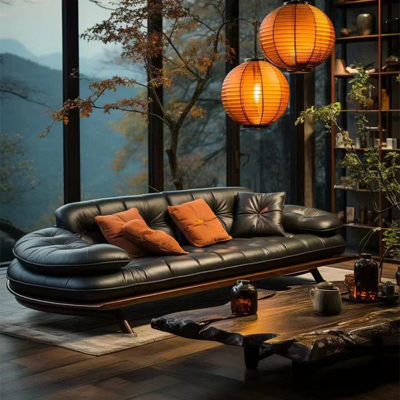 新しい中式スタイルの無垢材ソファ2025年モデル!現代的でシンプルなウォールナットの本革製、大小さまざまな住宅や別荘のリビングに最適な家具。魅力的なデザインで、快適な空間を演出します!