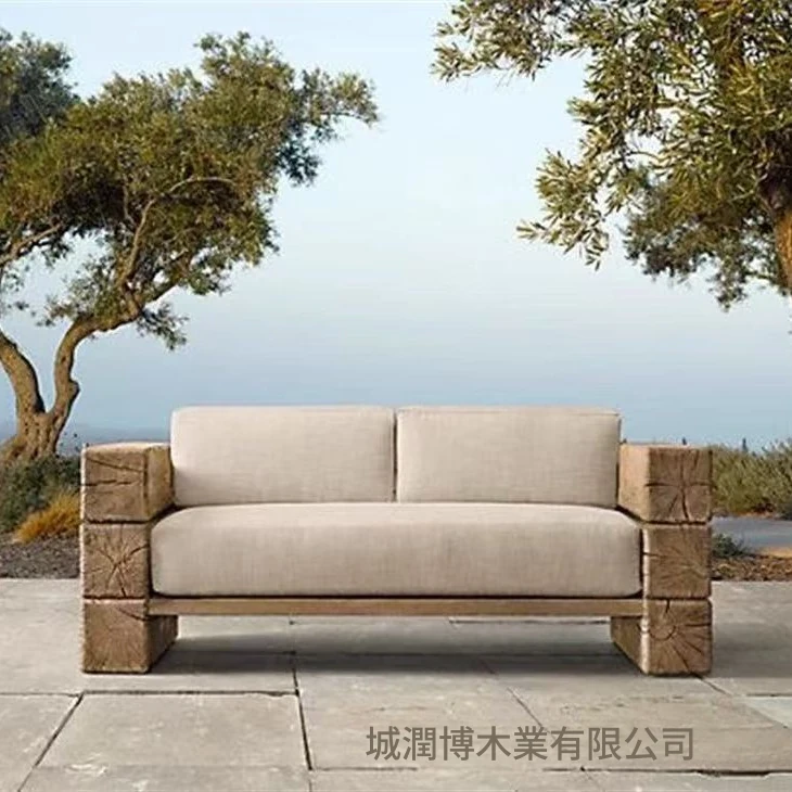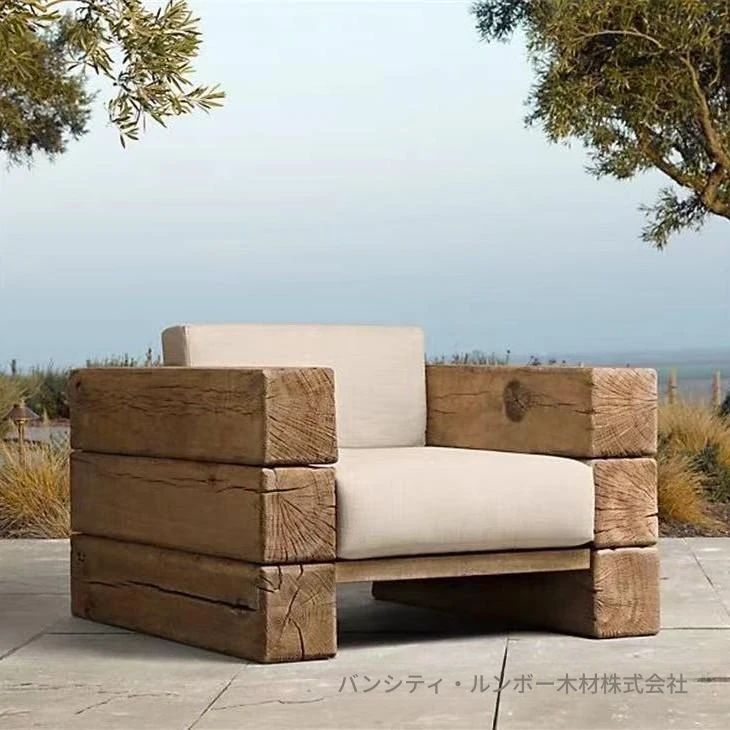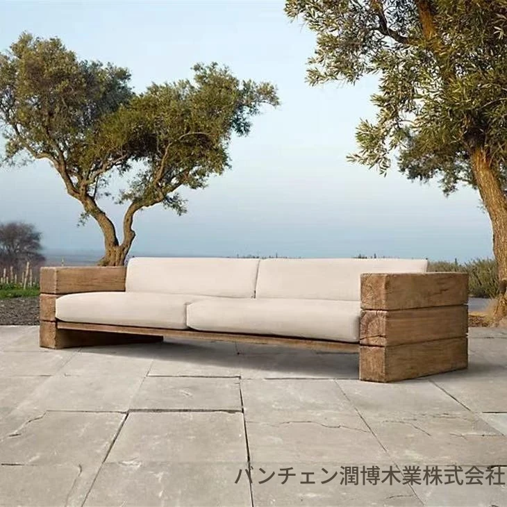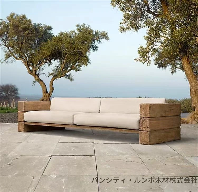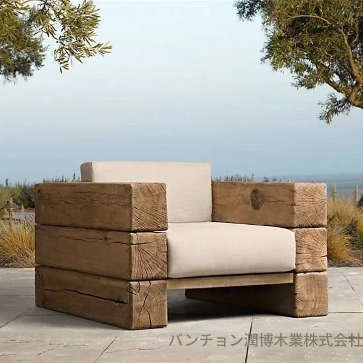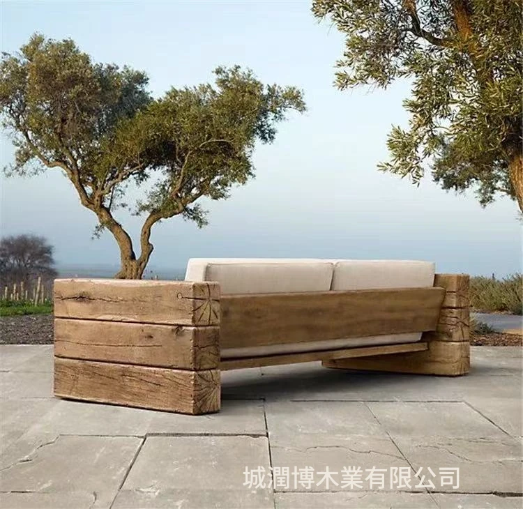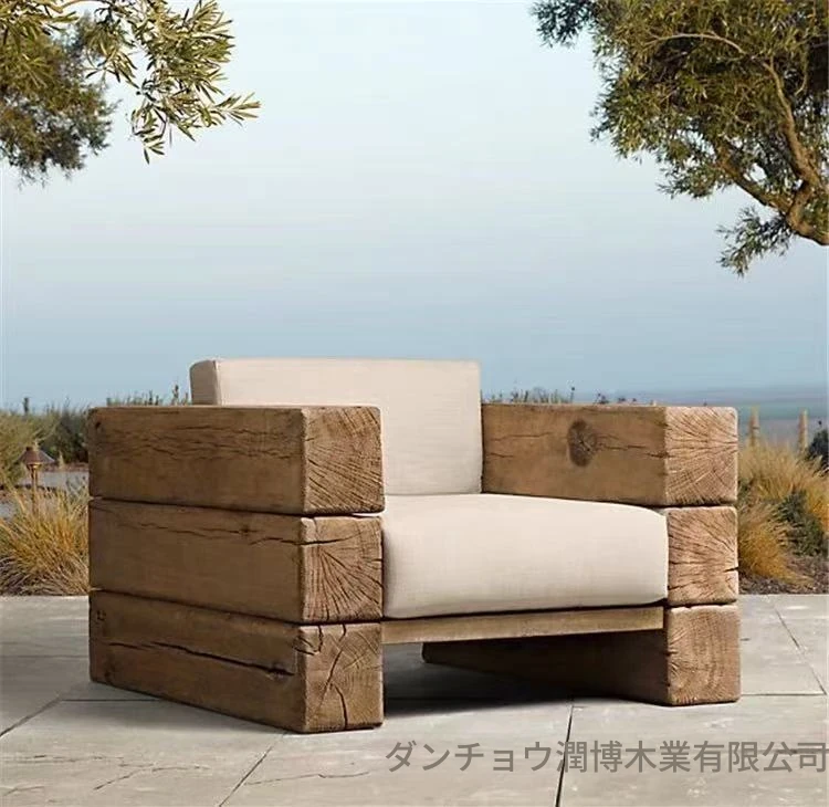アンティーク風の老朴木製ソファ|アウトドア&庭用|別荘・民宿・ホテル・クラブにぴったりのカスタムメイドリラックスチェア|おしゃれで快適なひとときを提供します!