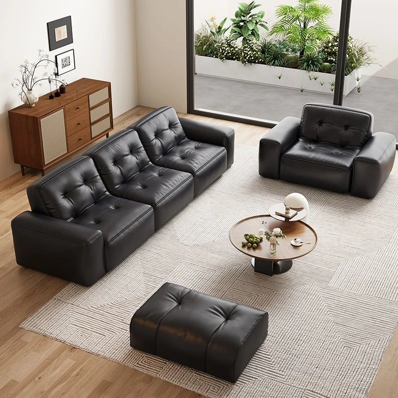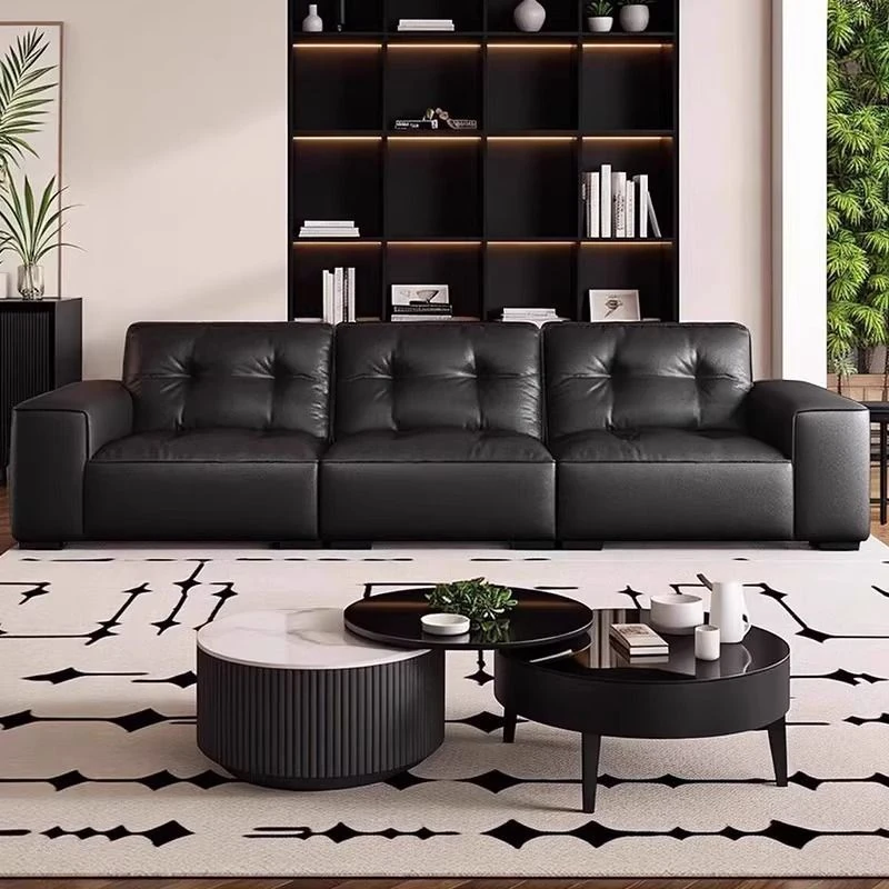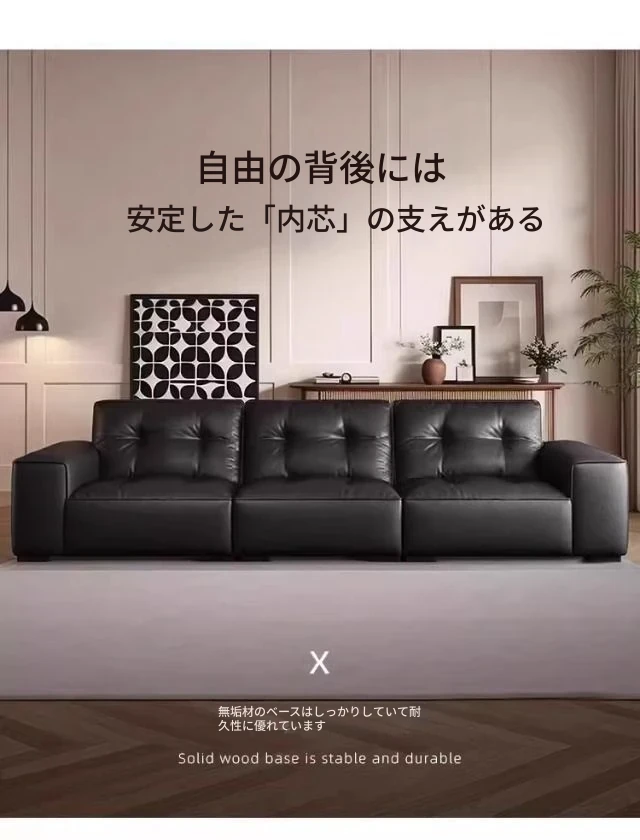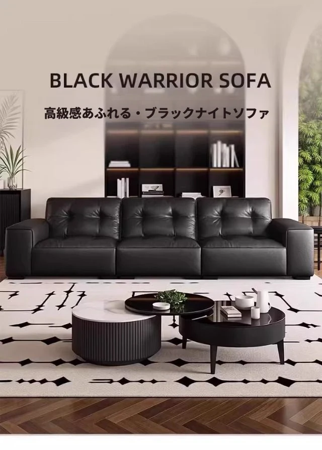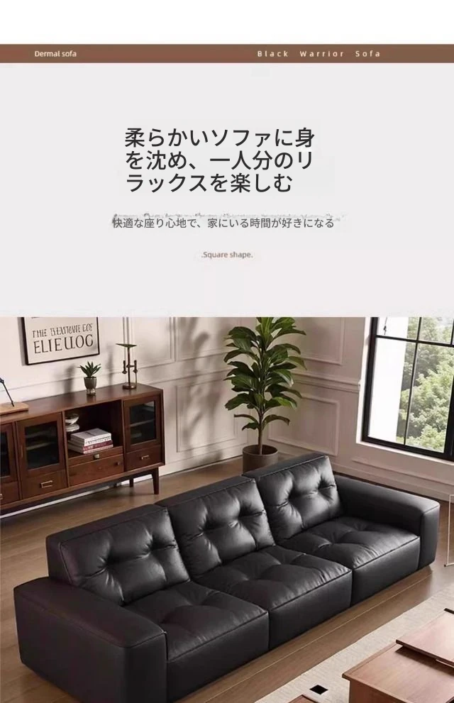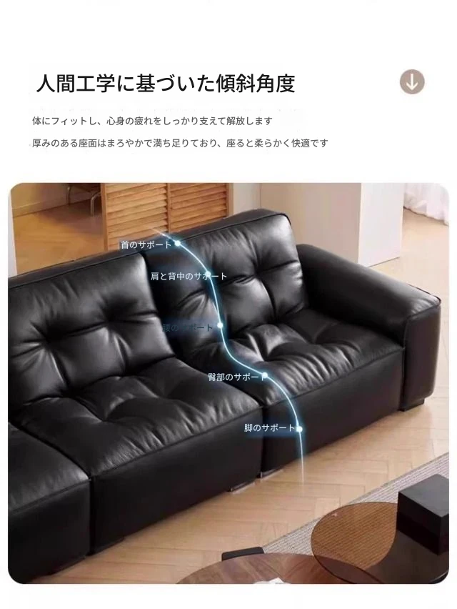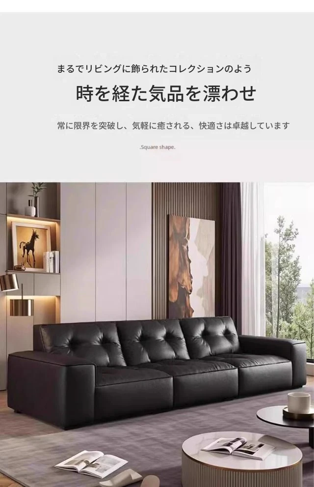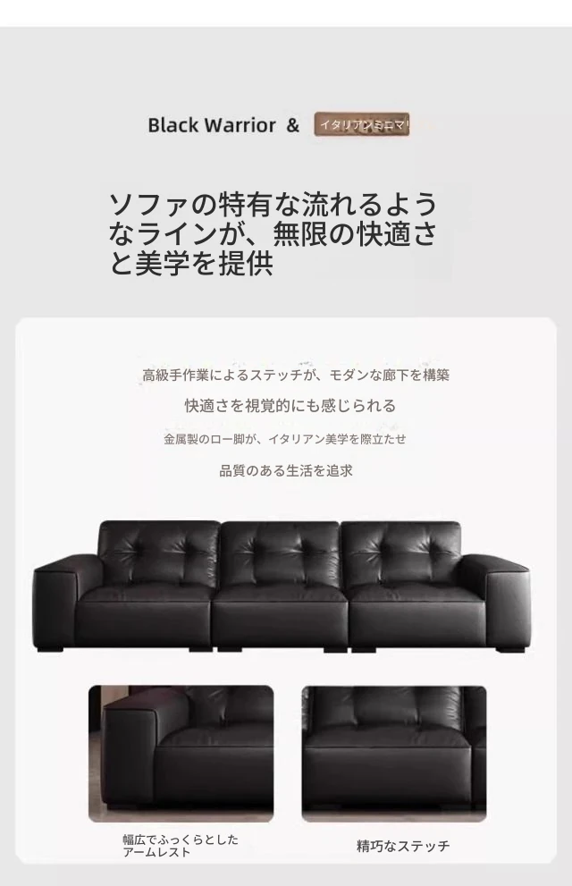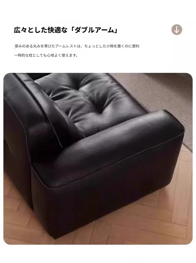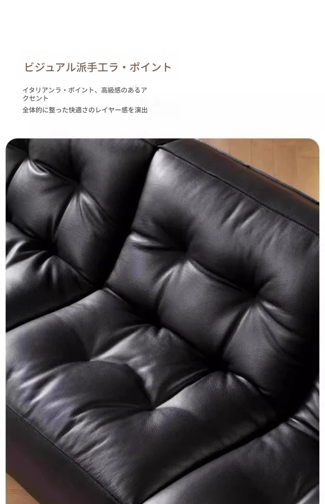 ブラックダイヤモンド・レトロイタリアンソファ|モダンな本革製・ラグジュアリーな小型リビング用シンプルストレートソファ|洗練されたデザインでお部屋を格上げ!