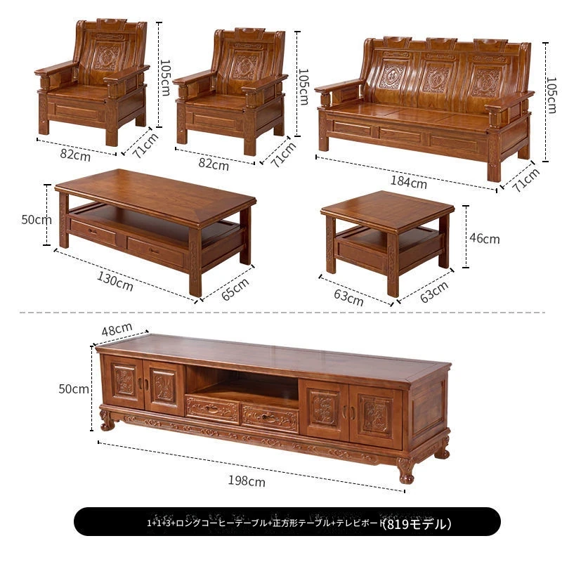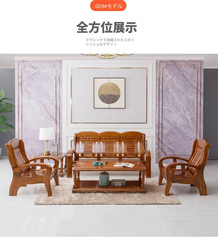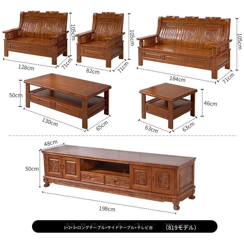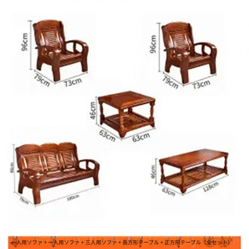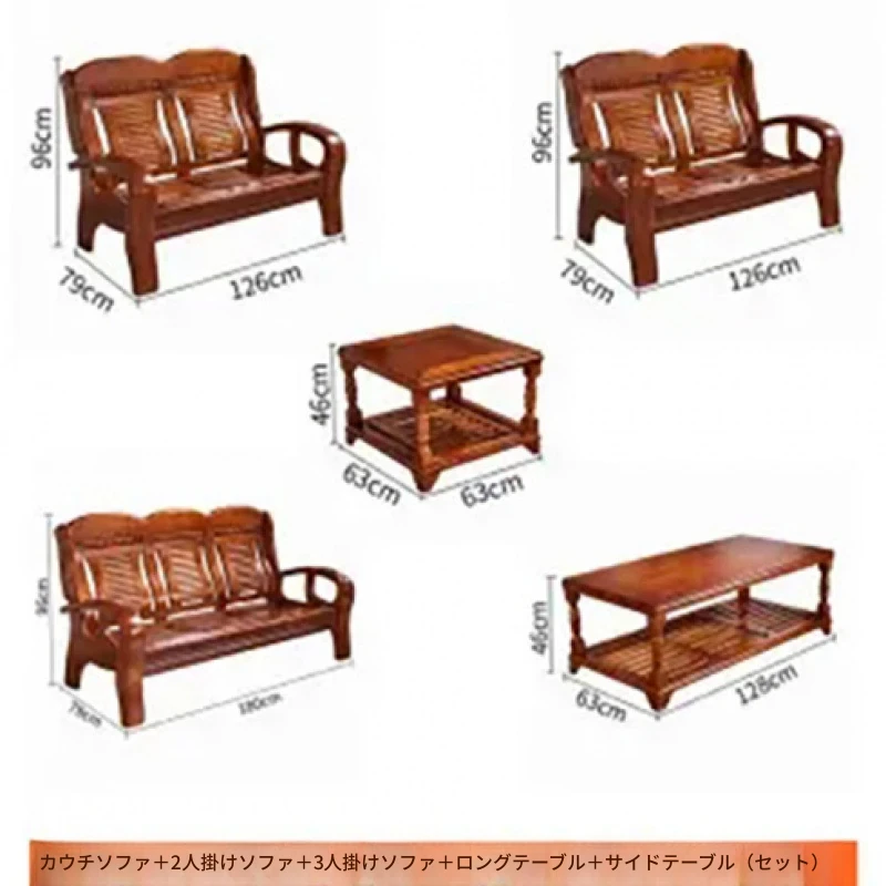 チェリーハードウッドソファ - おしゃれで経済的なリビングルーム用のコンパクトな実木ソファセット!小さなスペースにぴったり、温かみのあるデザインで居心地の良い空間を演出。