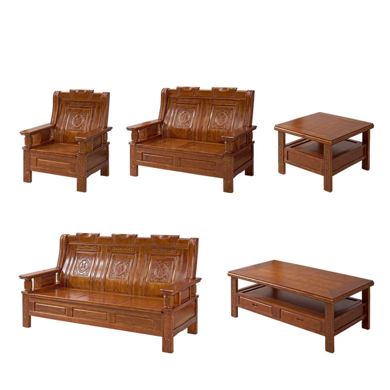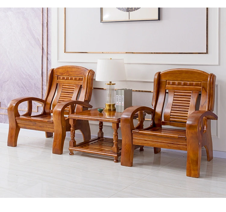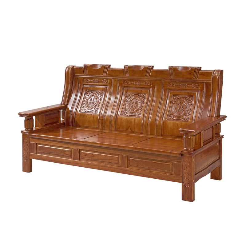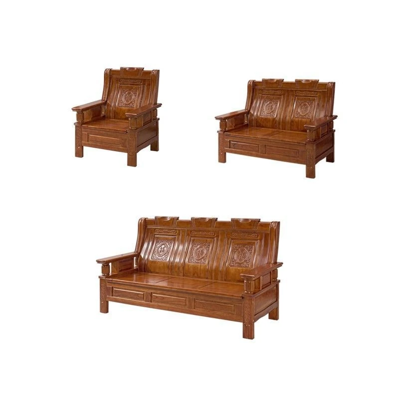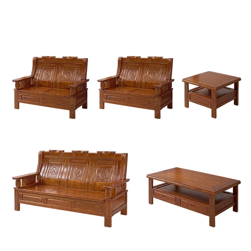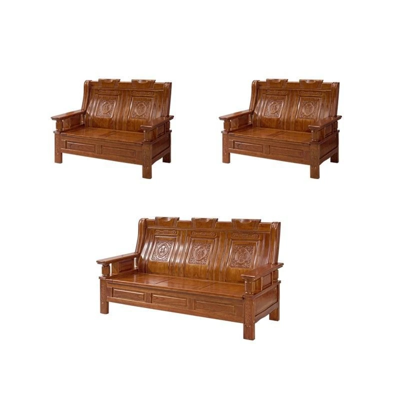 チェリーハードウッドソファ - おしゃれで経済的なリビングルーム用のコンパクトな実木ソファセット!小さなスペースにぴったり、温かみのあるデザインで居心地の良い空間を演出。