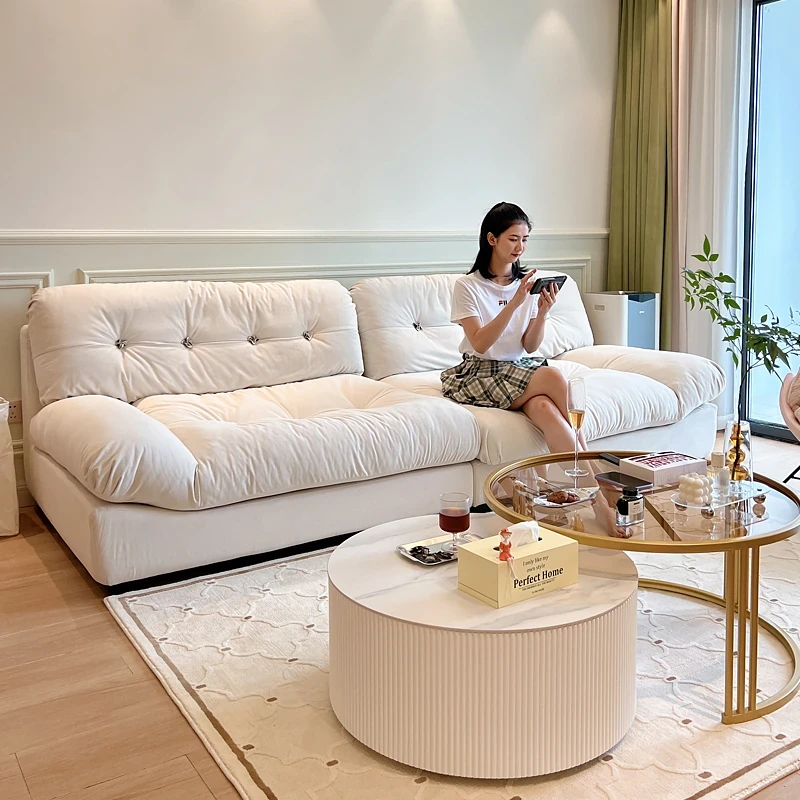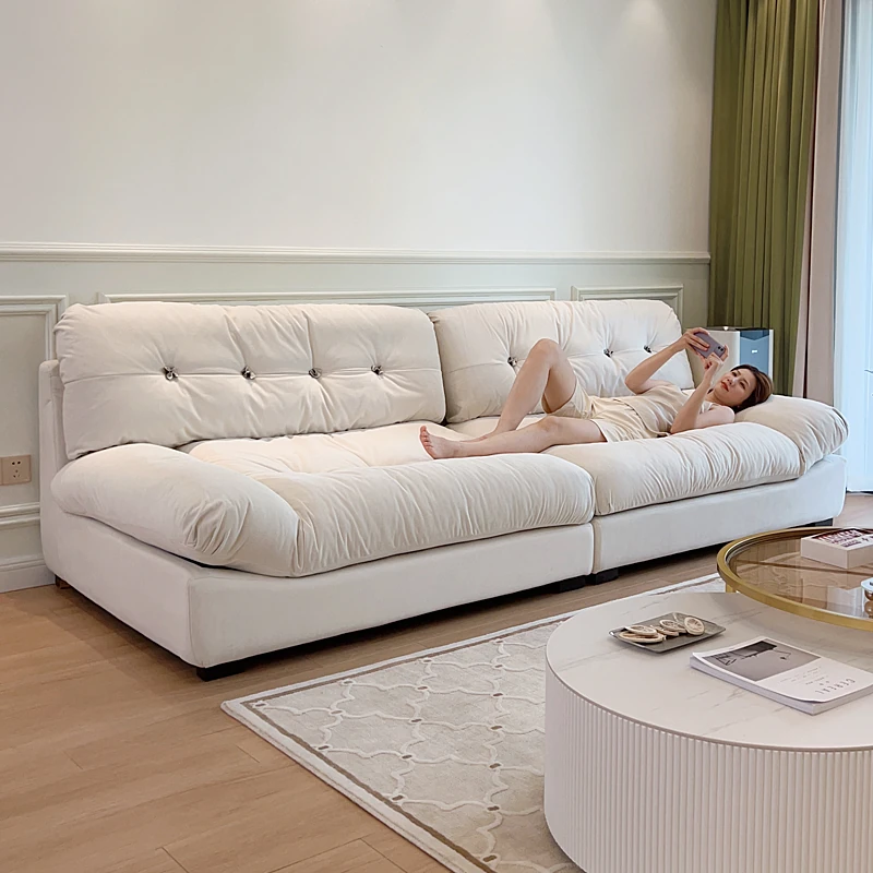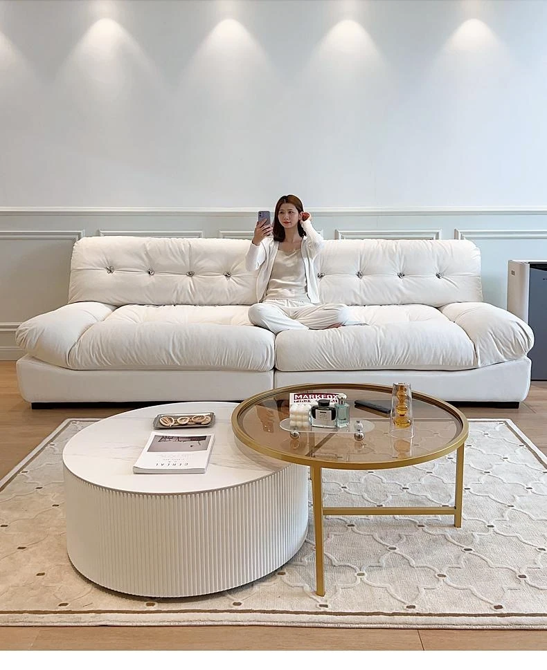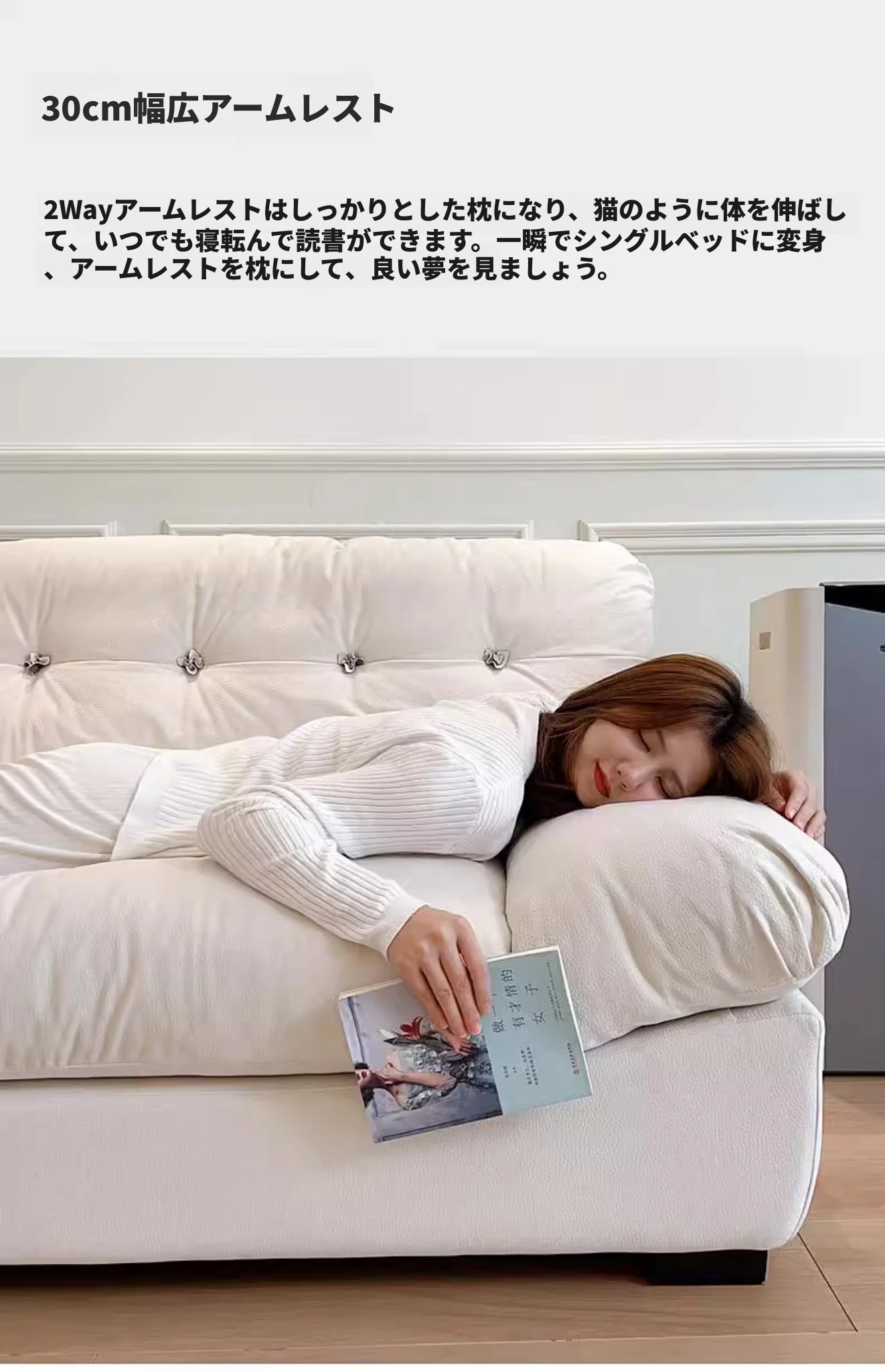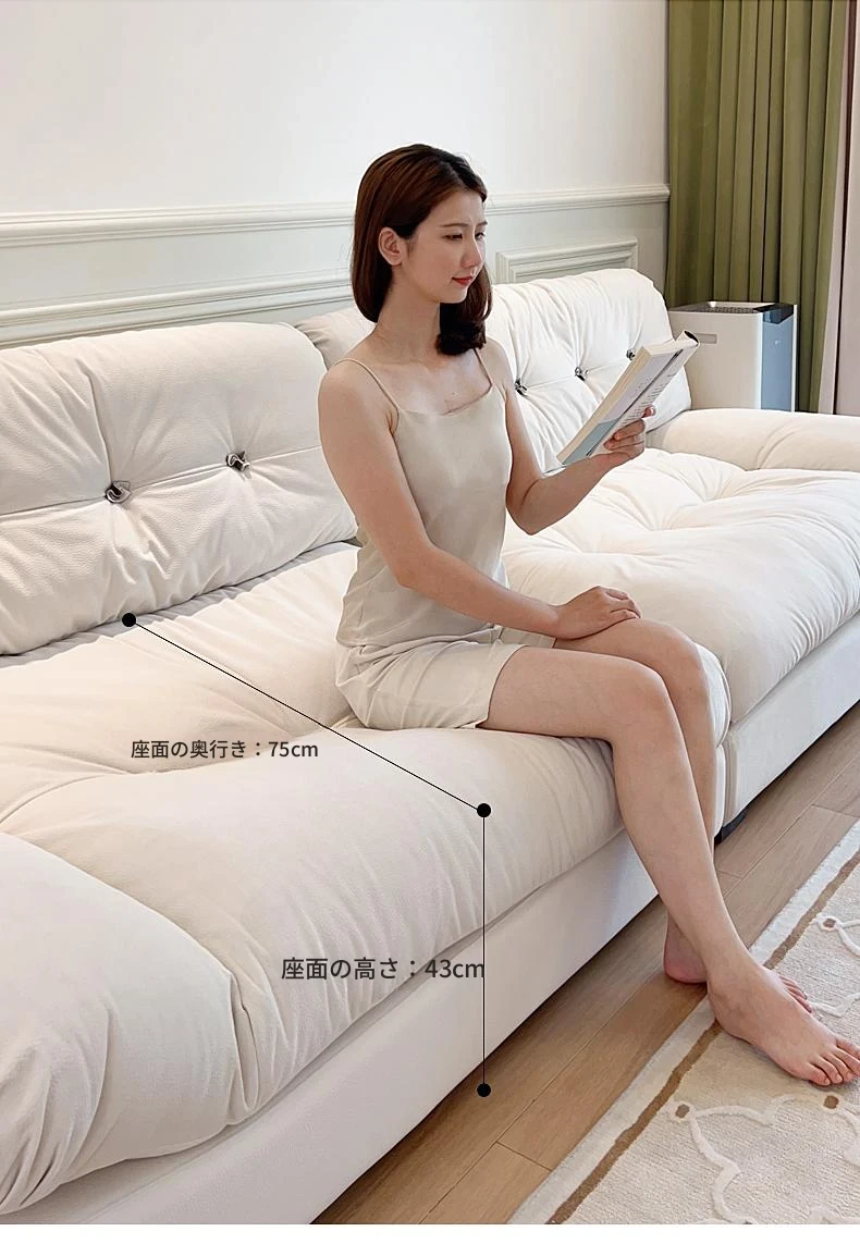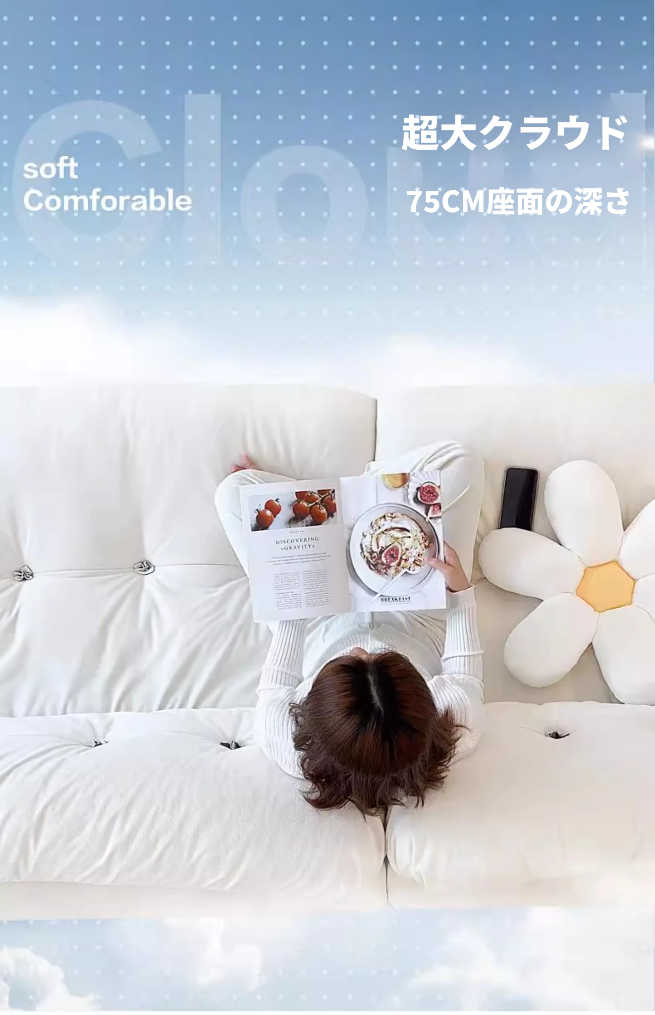 雲のようなソファー✨クリーム色のインスピレーションを受けた軽奢スタイル!テクノロジーを取り入れた北欧モダンなデザインで、小さな部屋にもぴったりなシンプルな一文字型ソファ。快適さとスタイルを兼ね備えたあなたのリビングに!