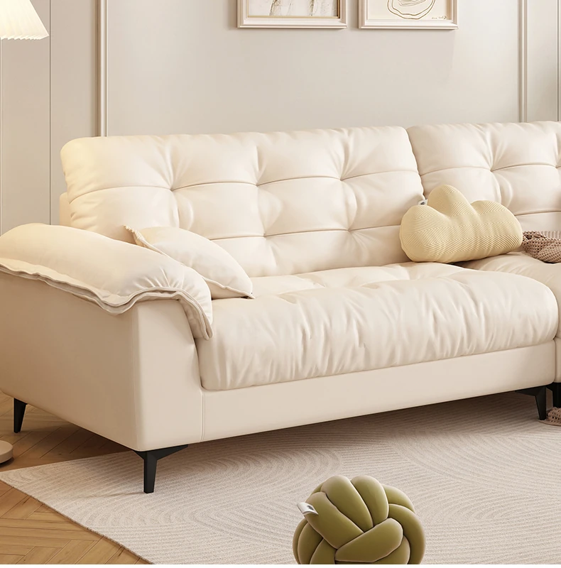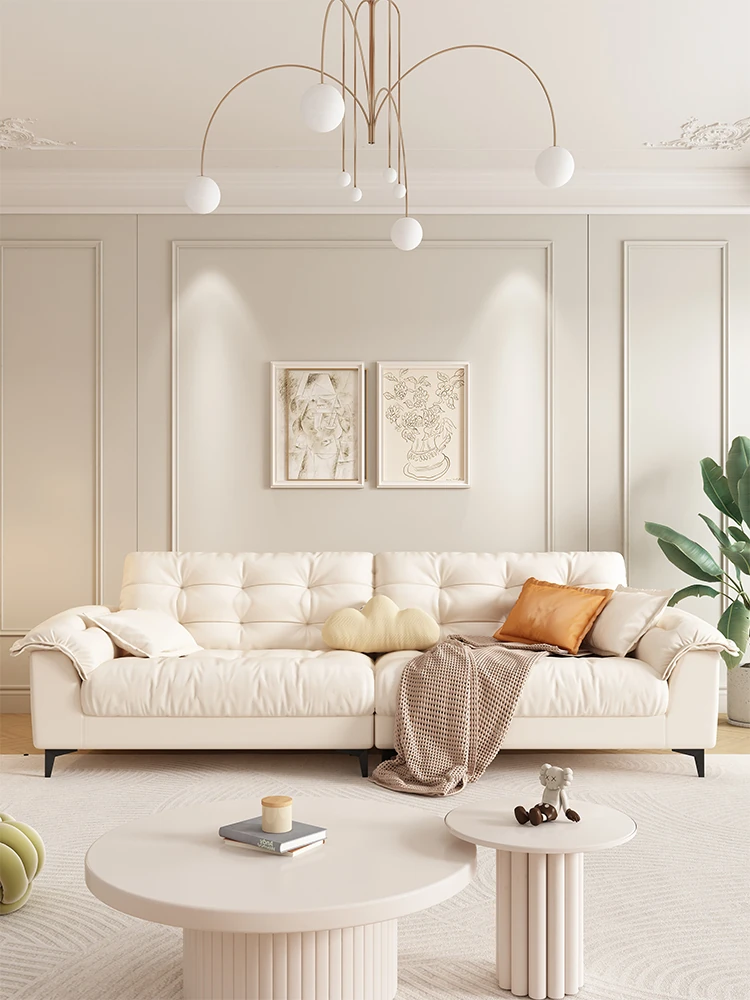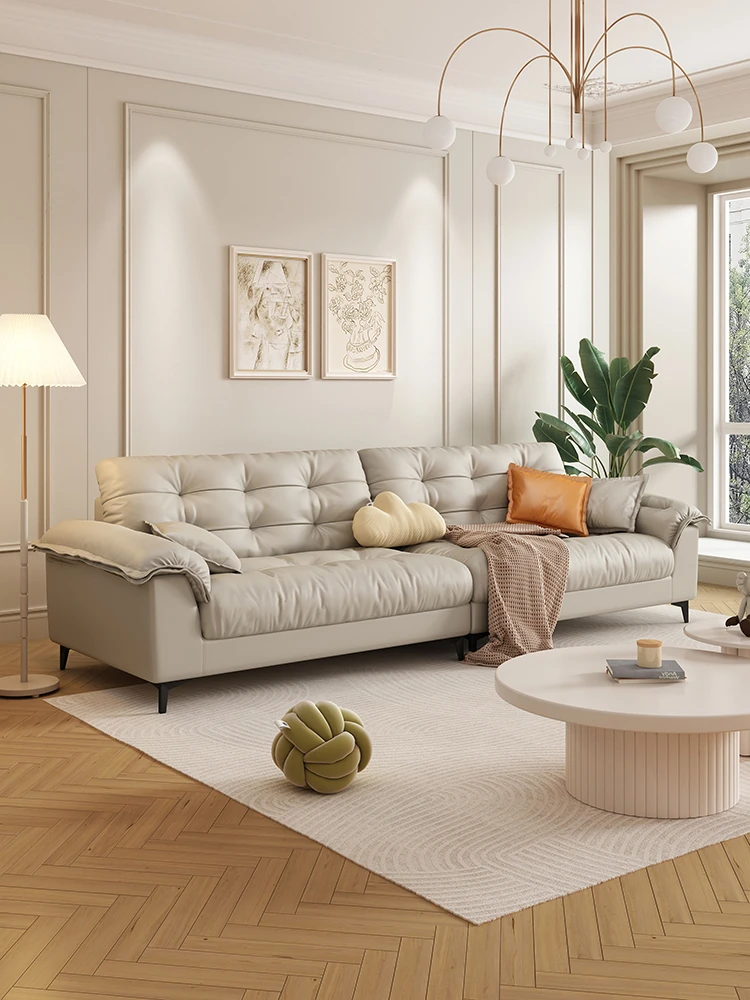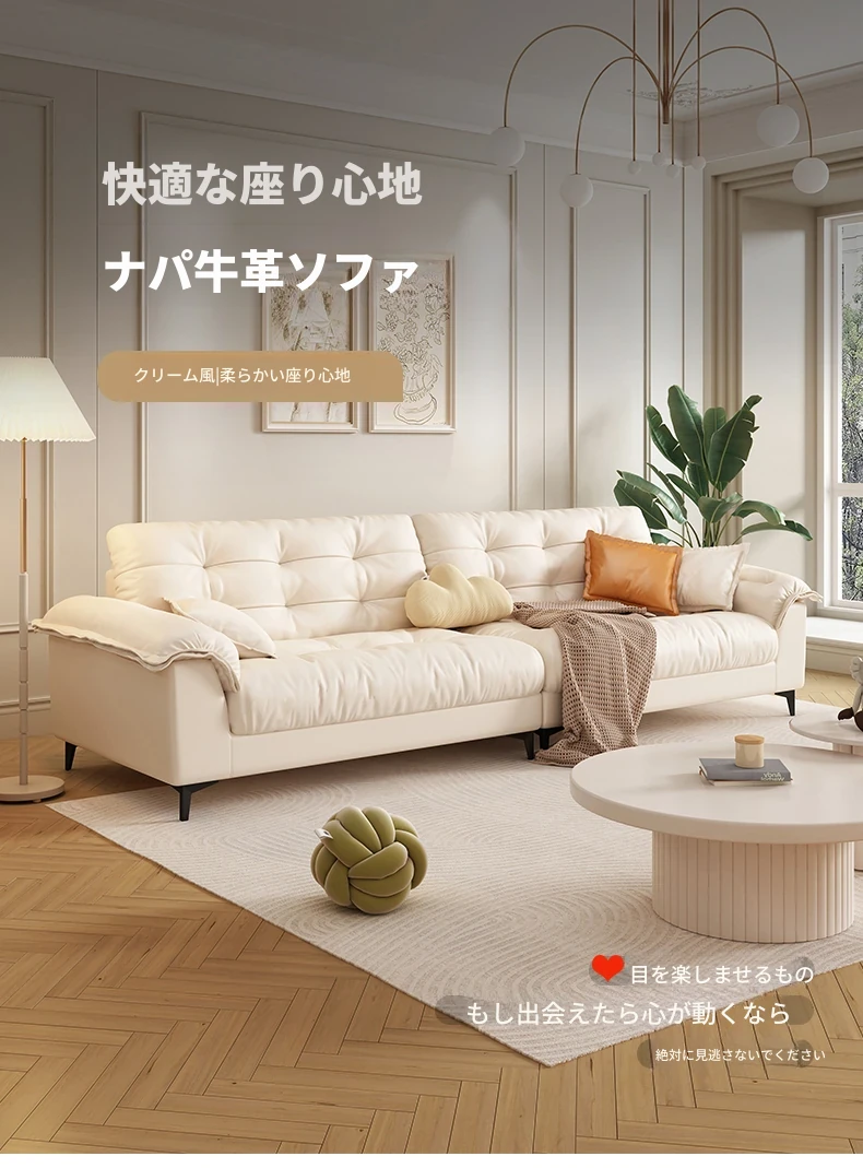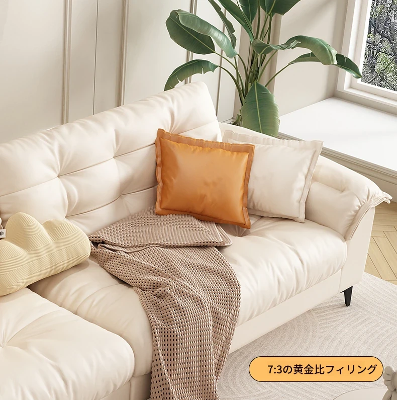 クリーム風真皮ソファー 小型リビングに最適 軽奢華ダウンラテックス直排 3〜4人用 ハイ脚クッション雲ソファ