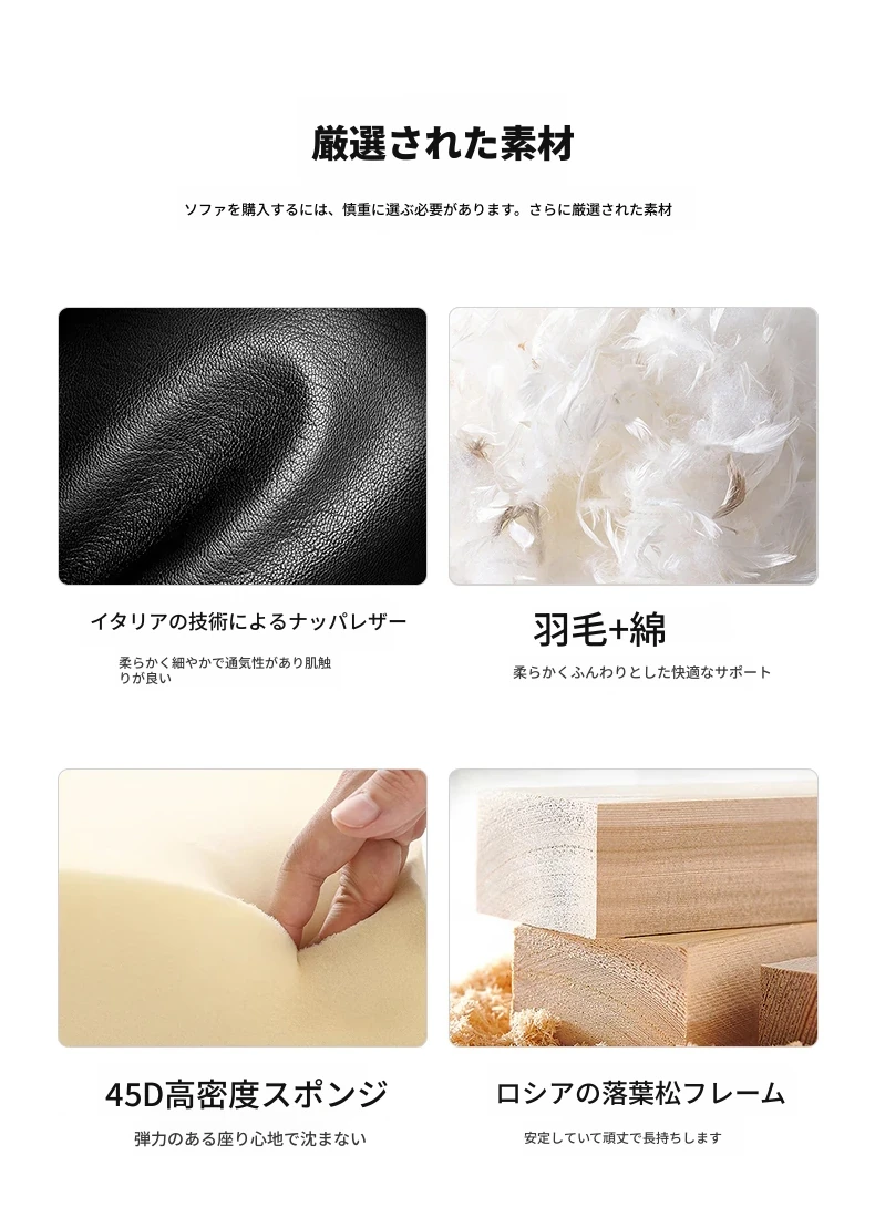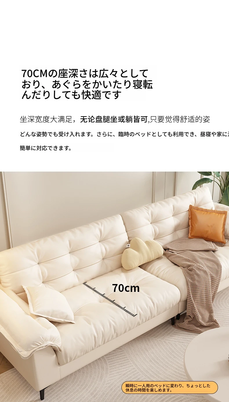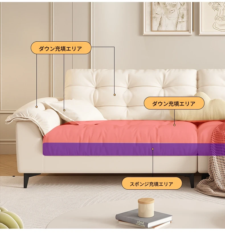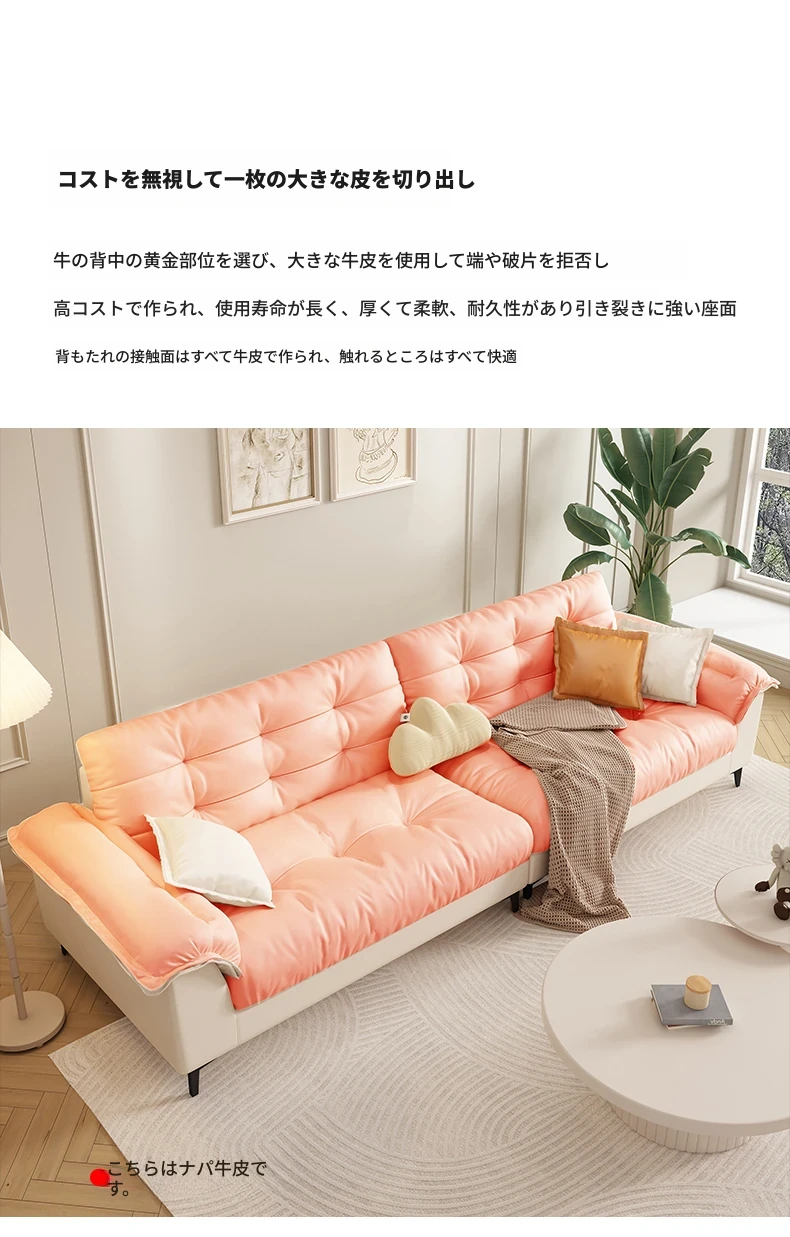 クリーム風真皮ソファー 小型リビングに最適 軽奢華ダウンラテックス直排 3〜4人用 ハイ脚クッション雲ソファ