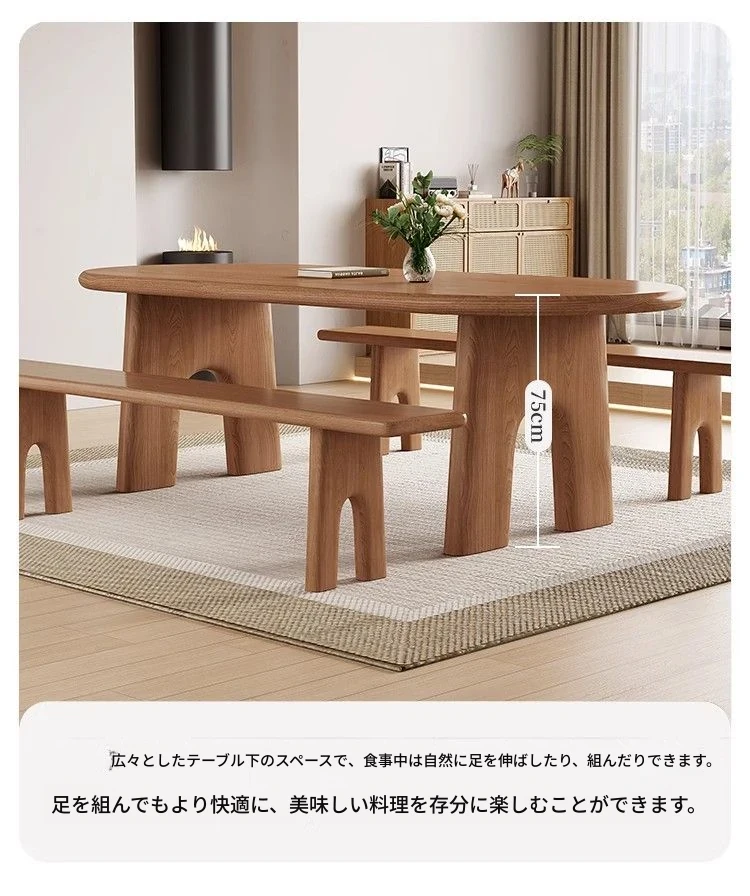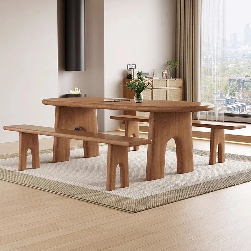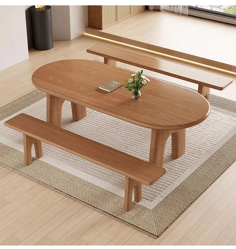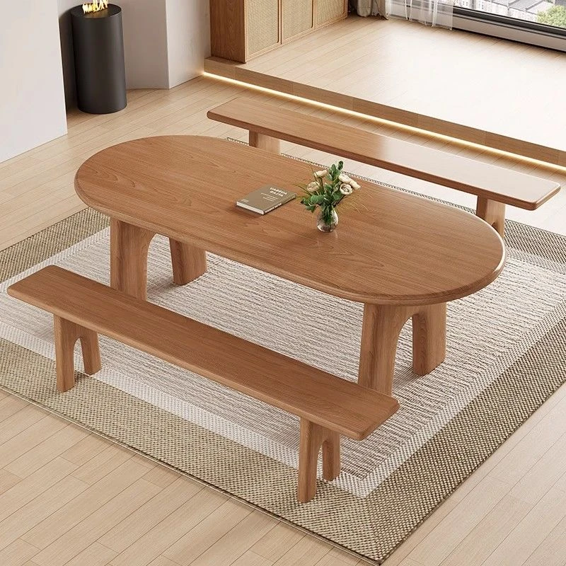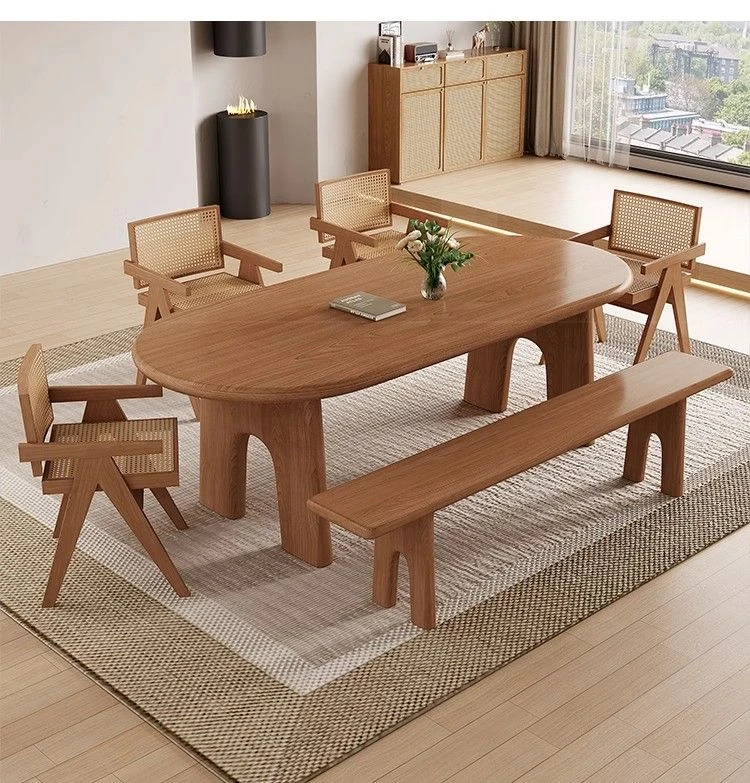 クリーム風の無垢材オーバルダイニングテーブル|デザイナーの創造的な会議テーブル|バー&民宿向けのシンプルなテーブルチェアセット|おしゃれで機能的な空間を演出!