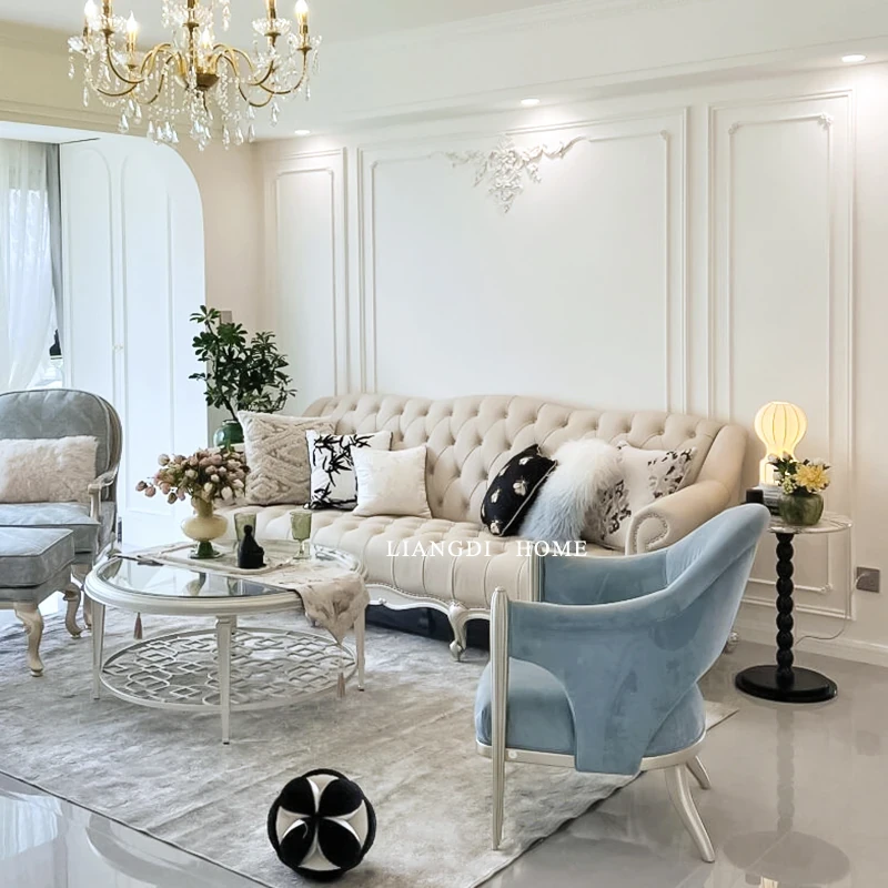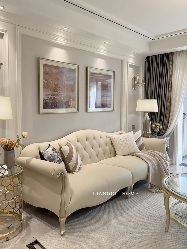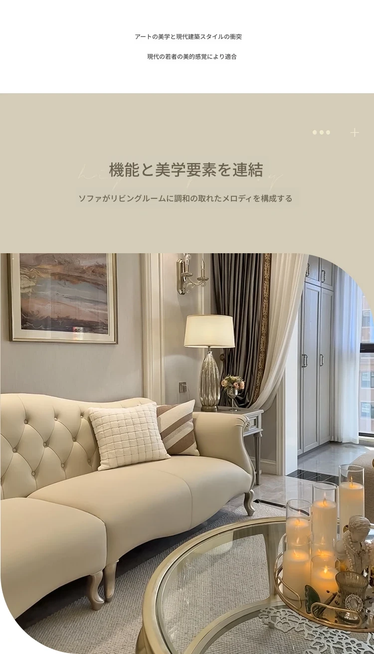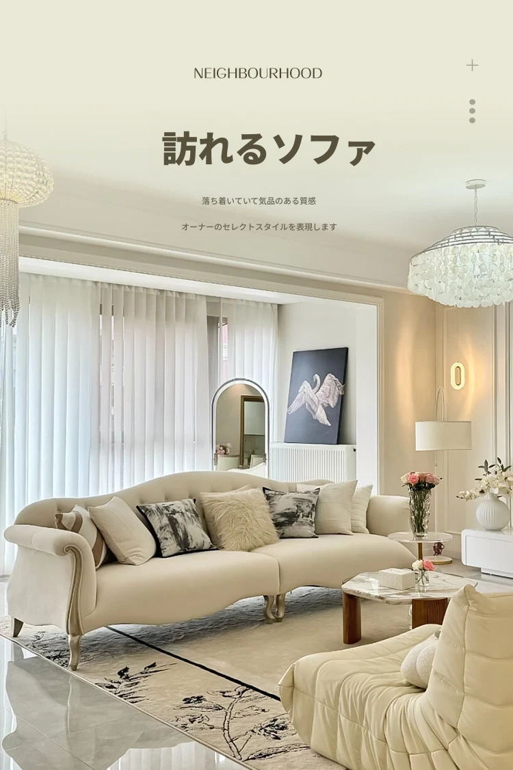 良邸プラン 美しいフレンチスタイルのラグジュアリーな天然木製ソファ 三人掛け・四人掛け ヘッドレザー使用のカミーユ真皮ソファで、上質な暮らしを実現!