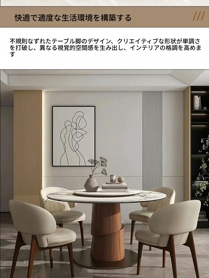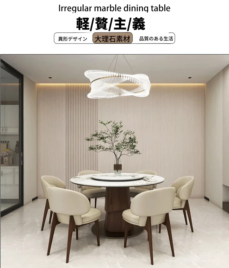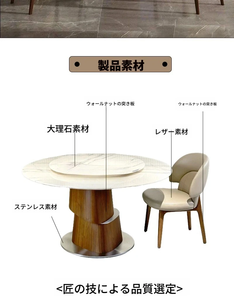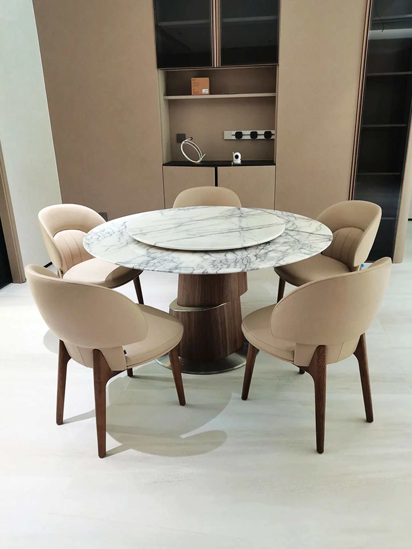 イタリアンマーブルのラウンドダイニングテーブルセット、回転プレート付きで高級感満点!高端なヴィラや家庭にぴったりの豪華な円形テーブル。