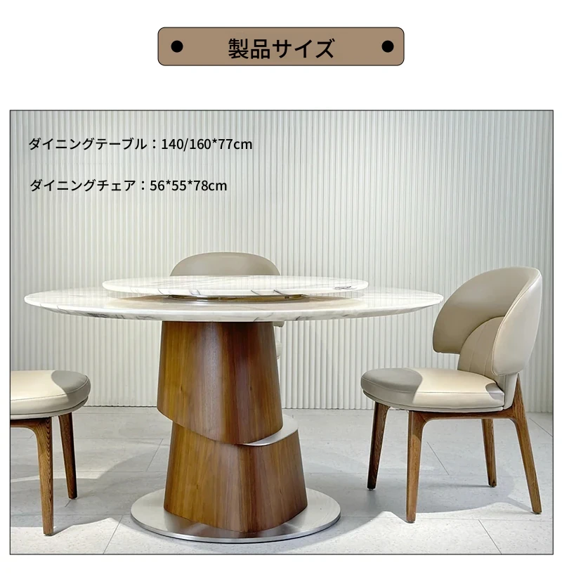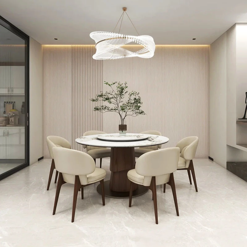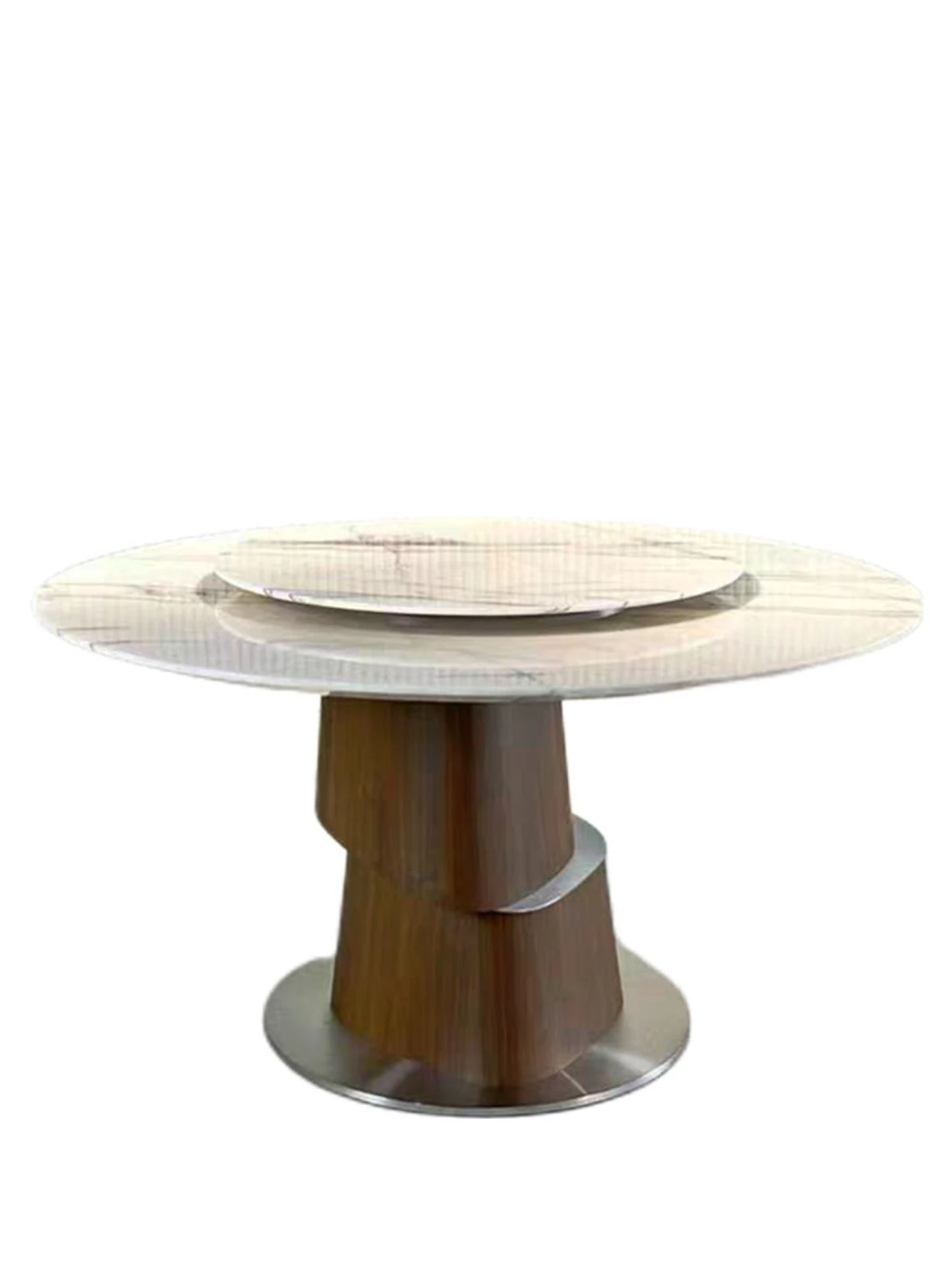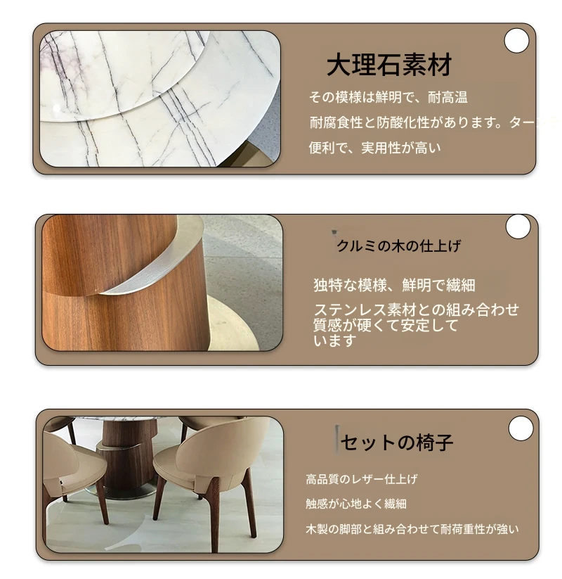 イタリアンマーブルのラウンドダイニングテーブルセット、回転プレート付きで高級感満点!高端なヴィラや家庭にぴったりの豪華な円形テーブル。