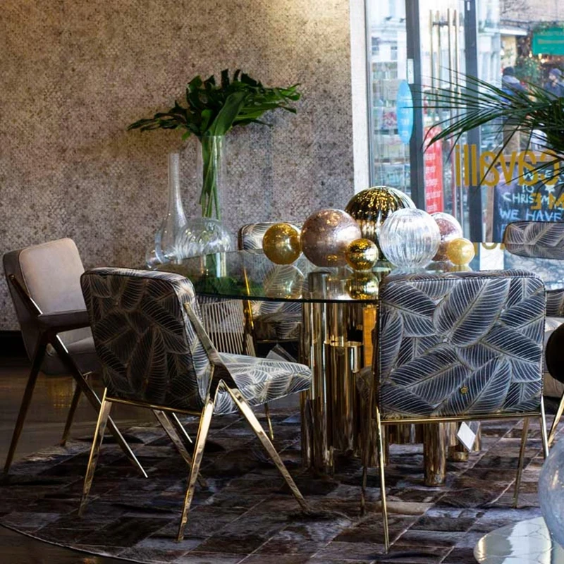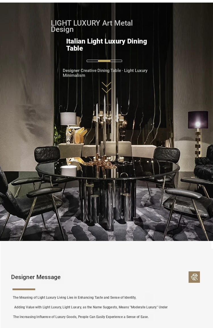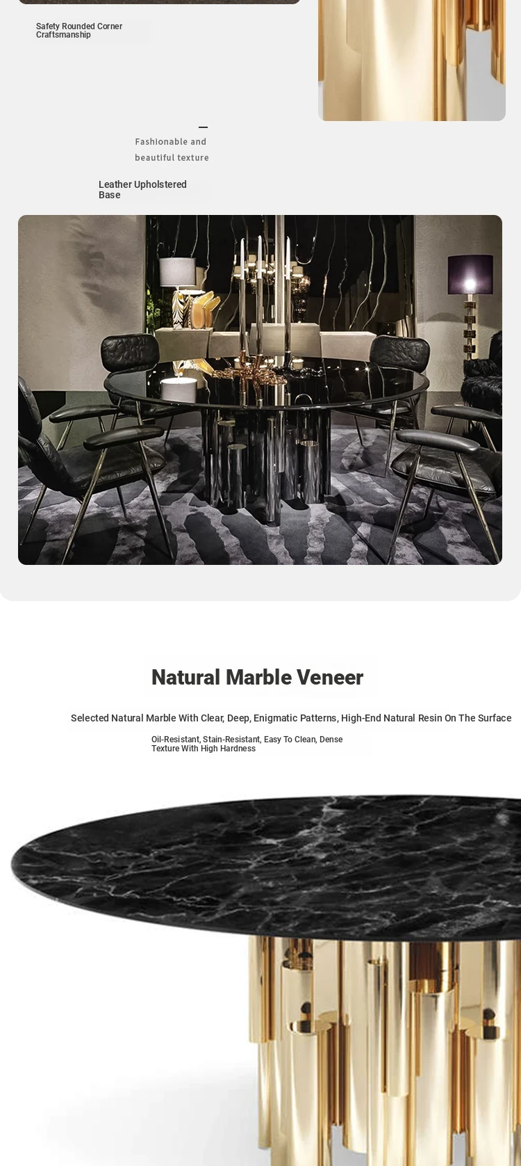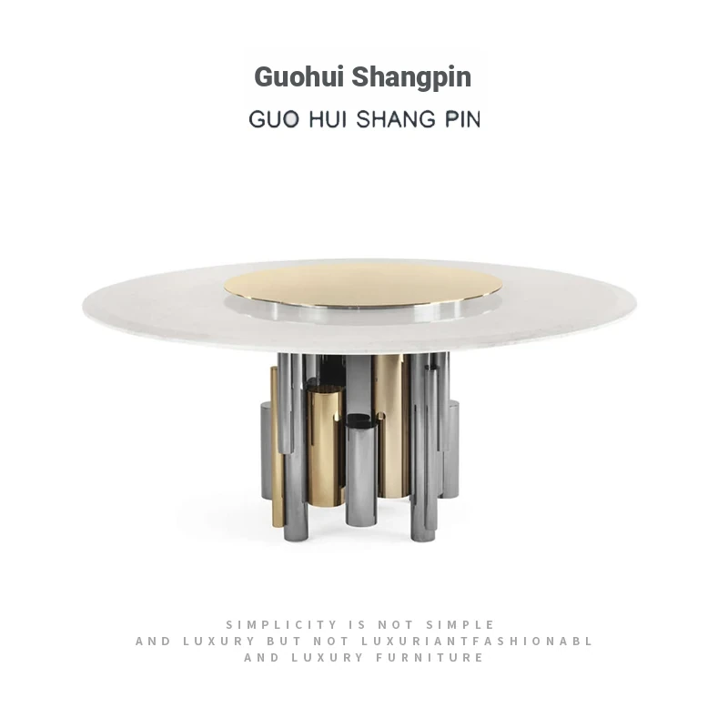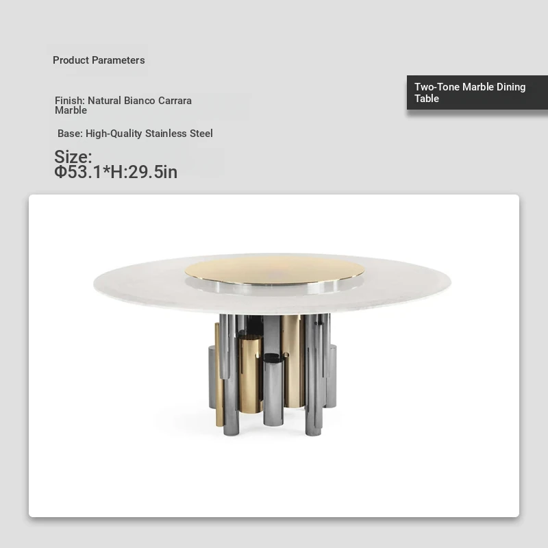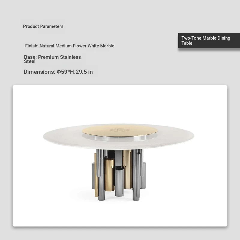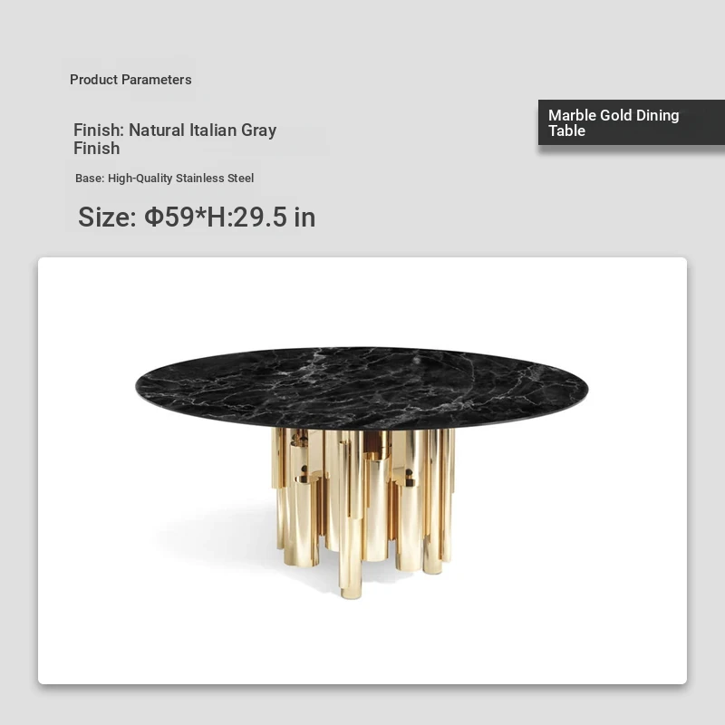Elegant Italian-Inspired Marble Round Table - Replica Antigua Stainless Steel Dining Set for Villas and Spacious Homes - Creative Dining Solution