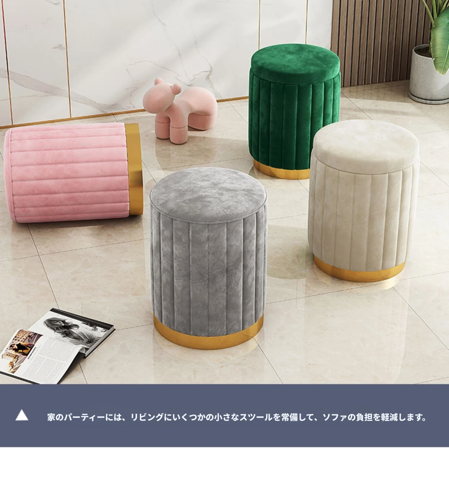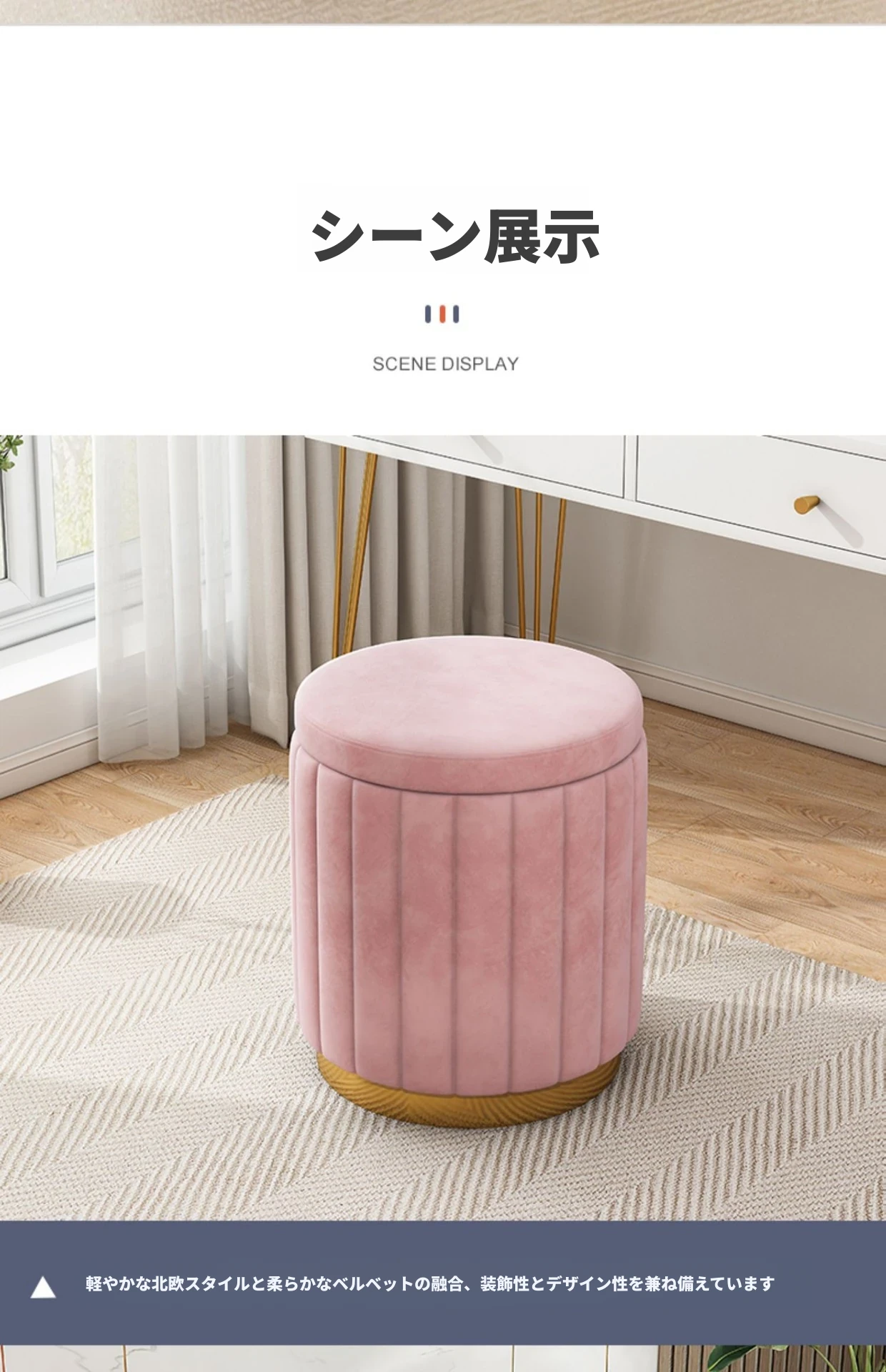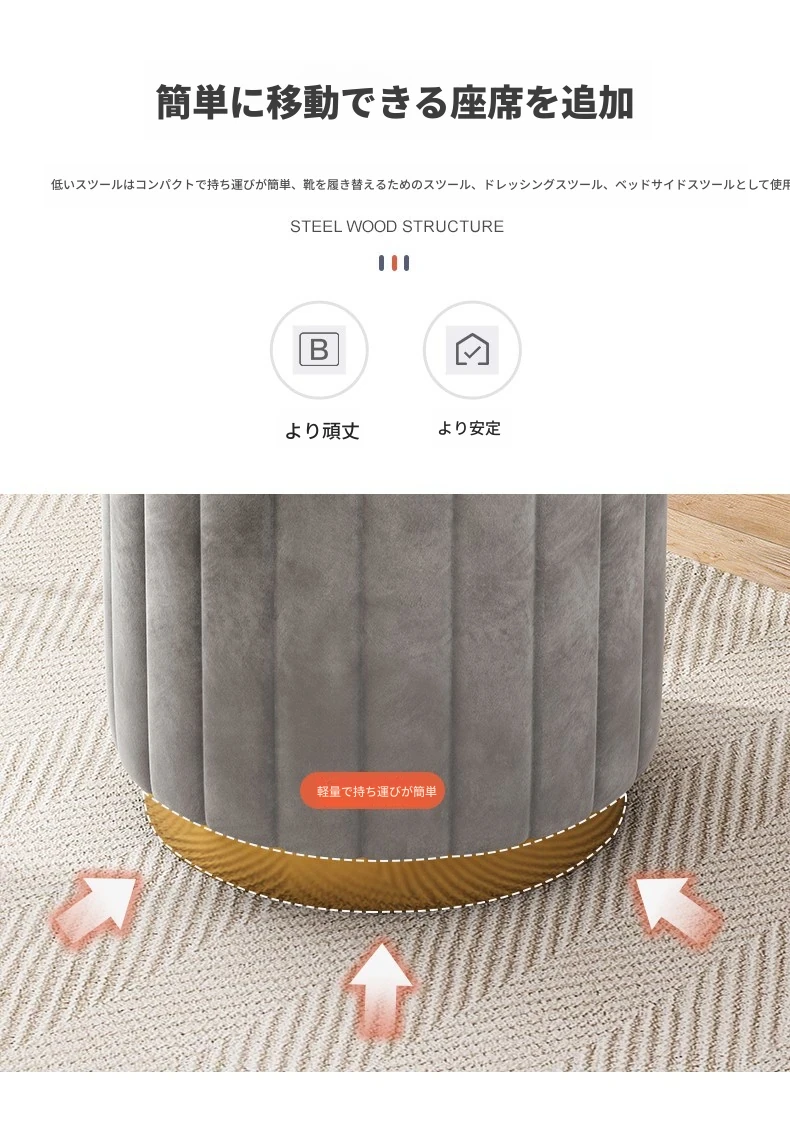 軽やかさと優雅さを兼ね備えたラウンドメイクアップスツール!おしゃれな収納機能付きで、寝室やリビングにもぴったり。コンパクトなデザインで、ドレッサーやソファの横に置いても邪魔になりません。魅力的なインテリアを演出しましょう!