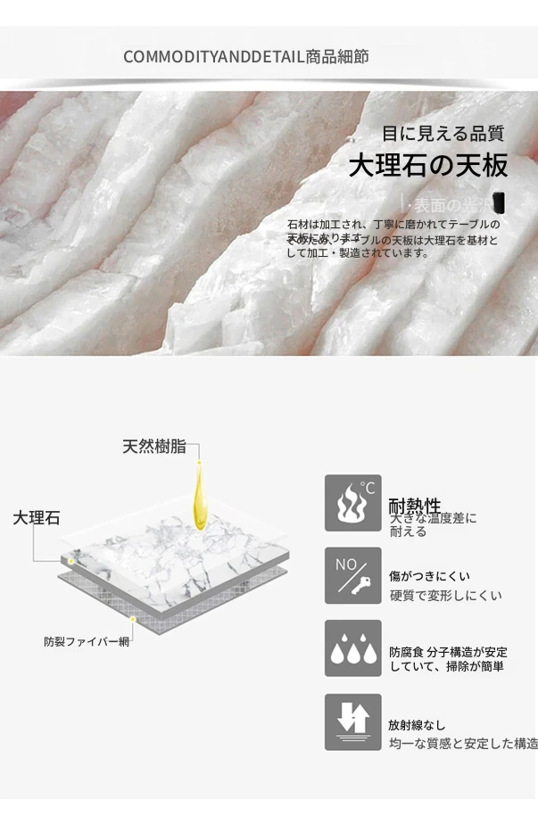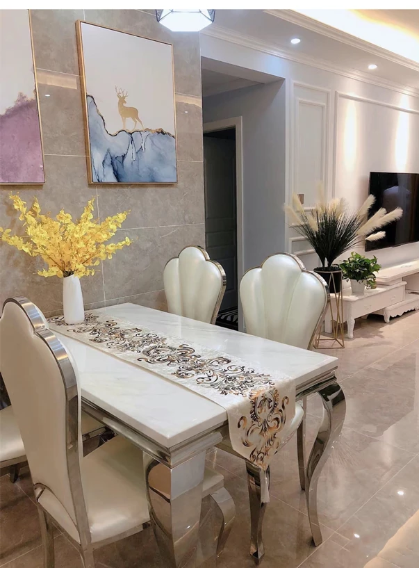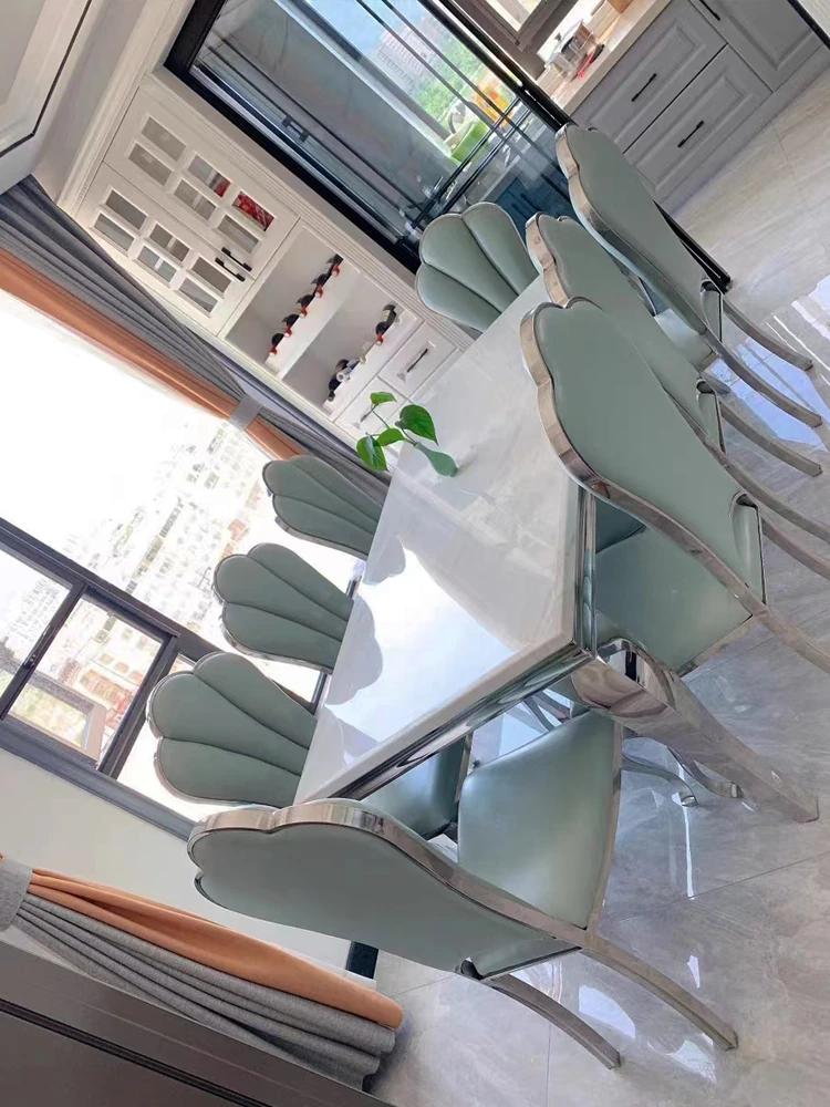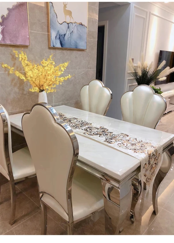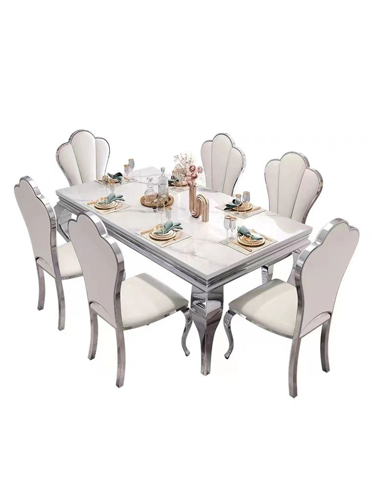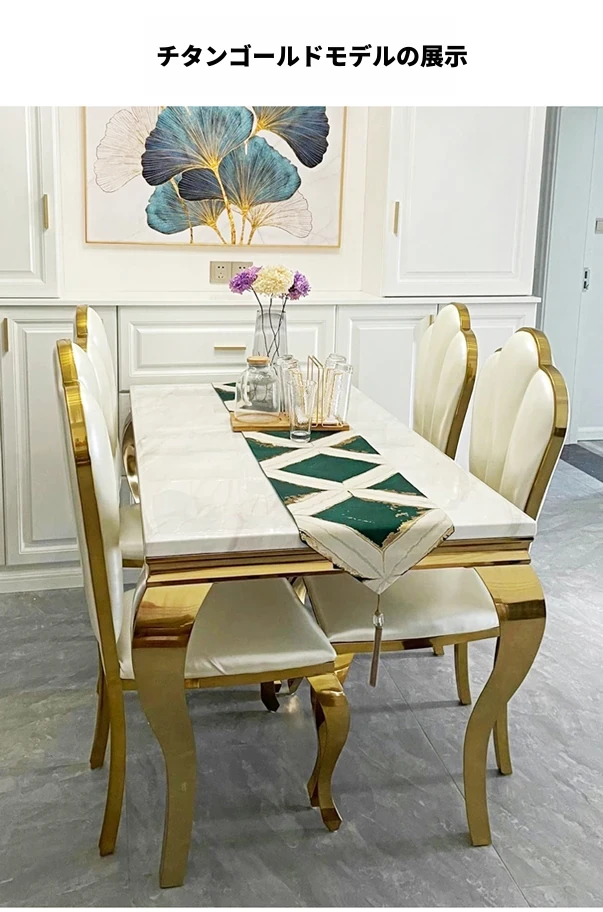 エレガントな大理石ダイニングテーブルセット|欧風シンプルモダンデザイン|小型リビングに最適な長方形テーブル|軽やかで高級感溢れる家族の食卓を演出!