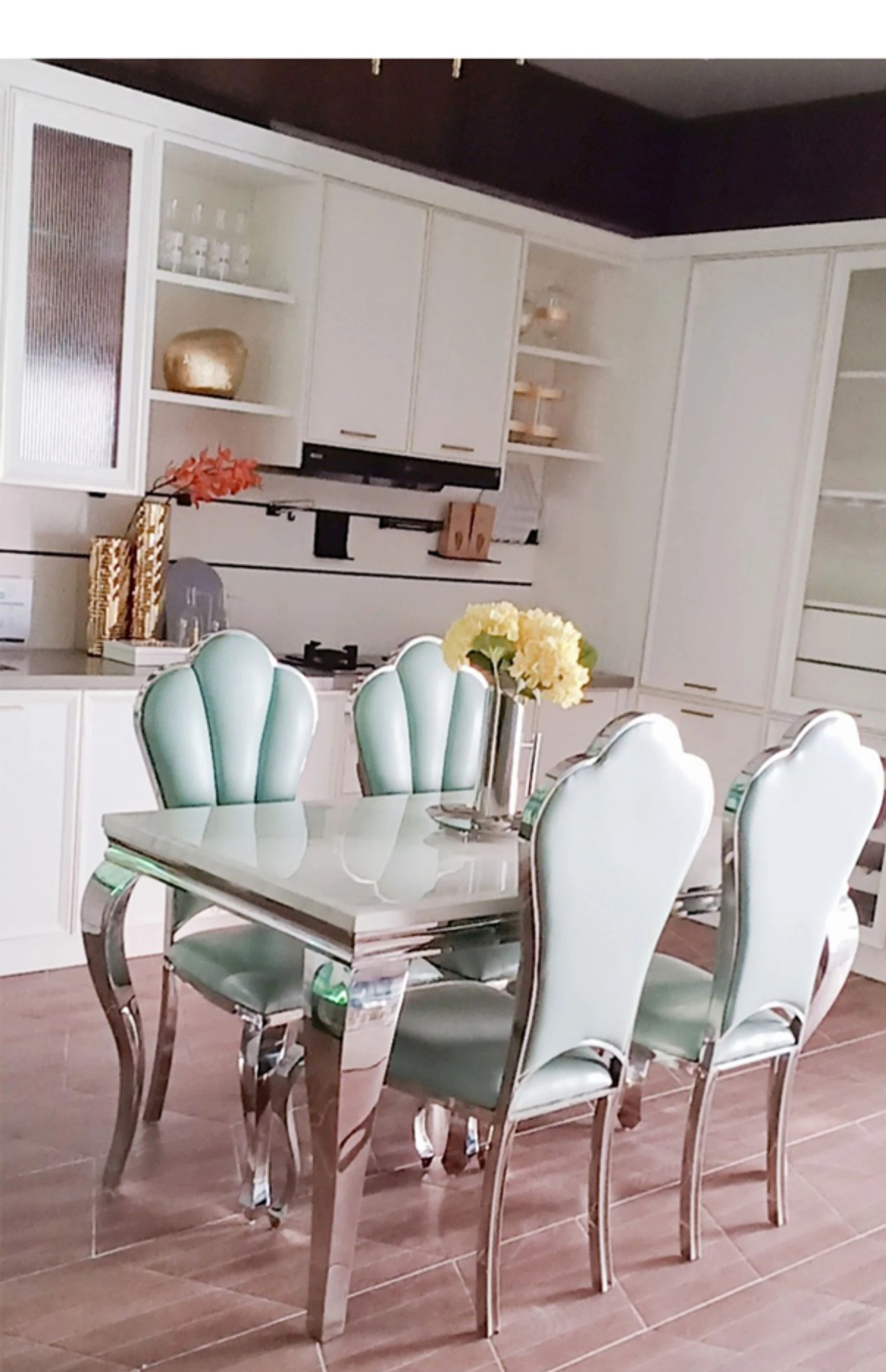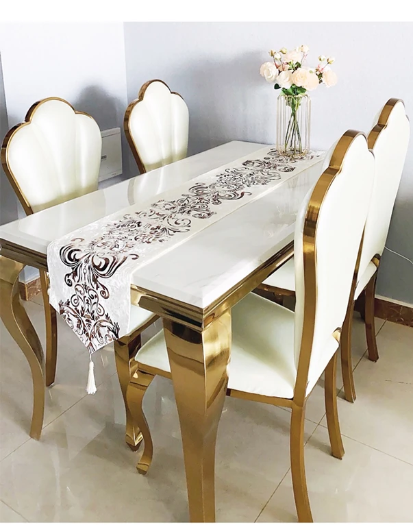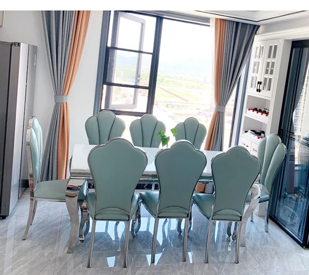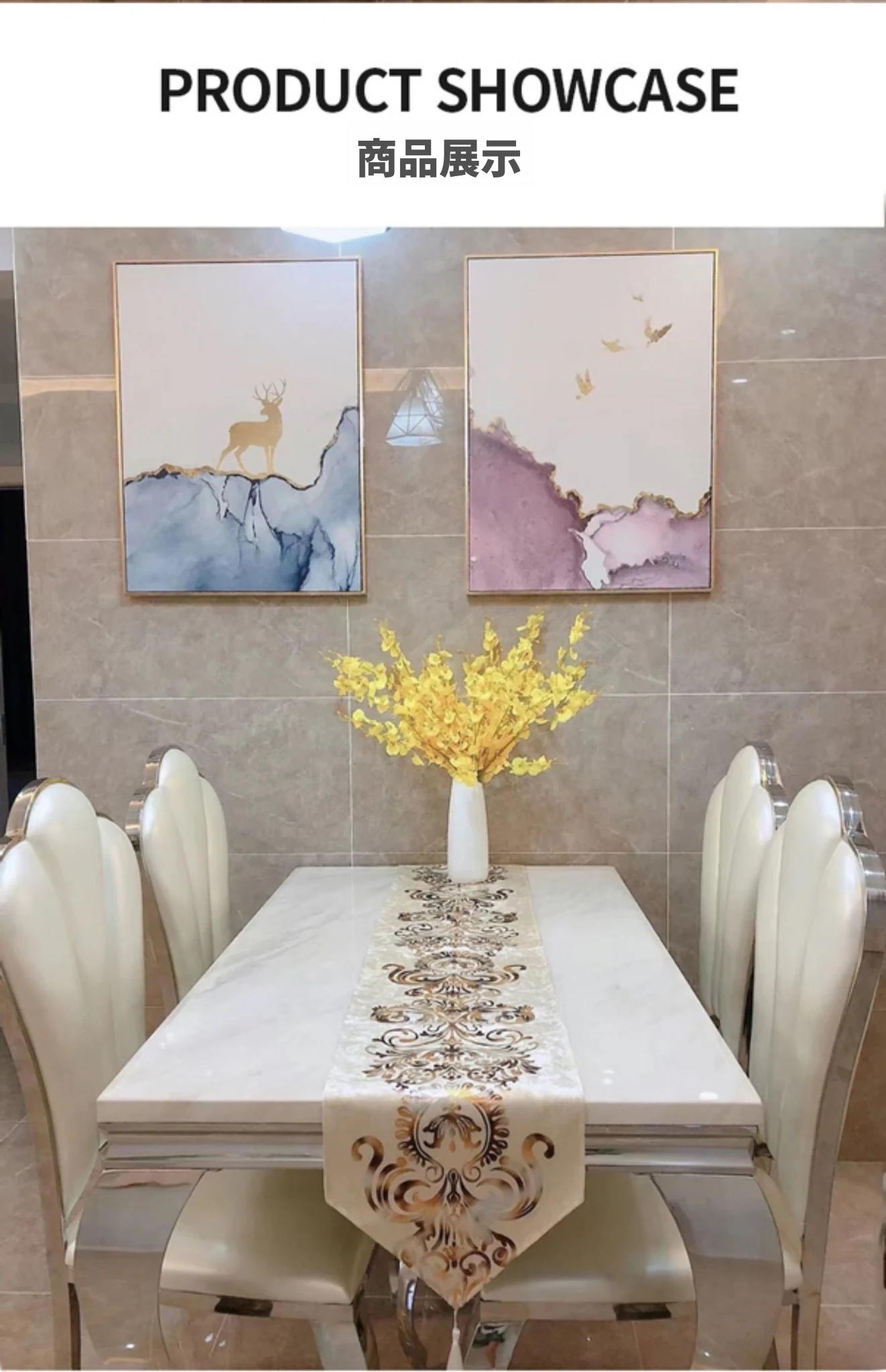 エレガントな大理石ダイニングテーブルセット|欧風シンプルモダンデザイン|小型リビングに最適な長方形テーブル|軽やかで高級感溢れる家族の食卓を演出!