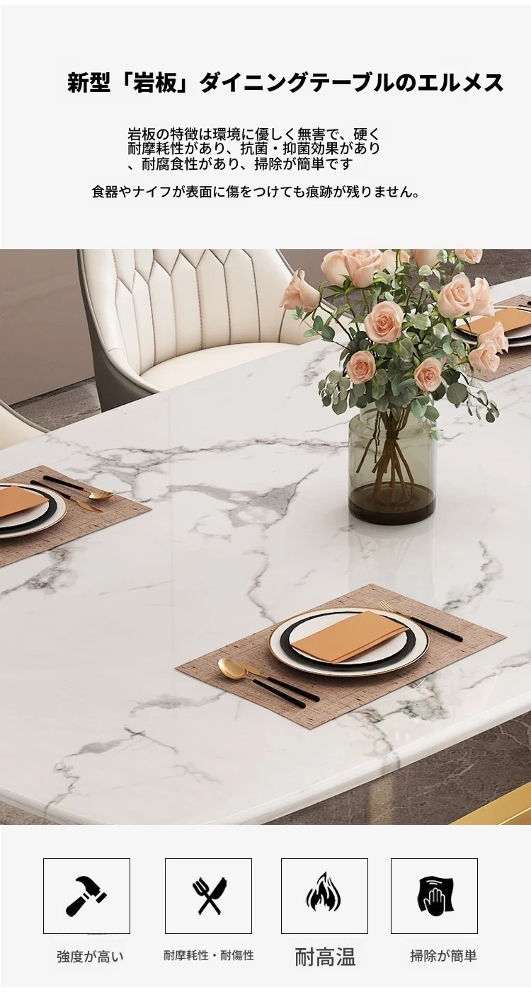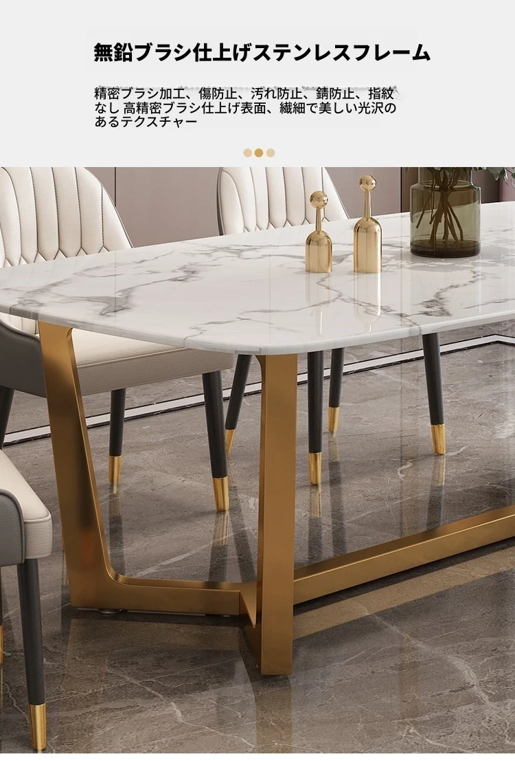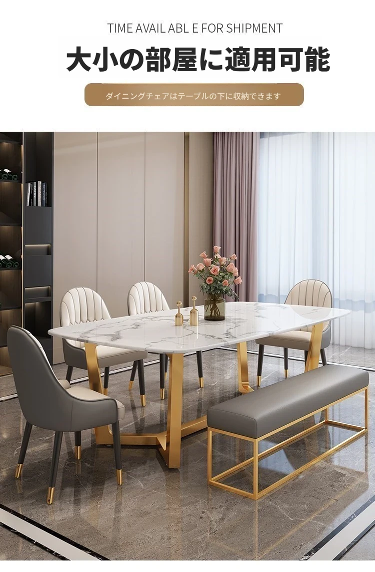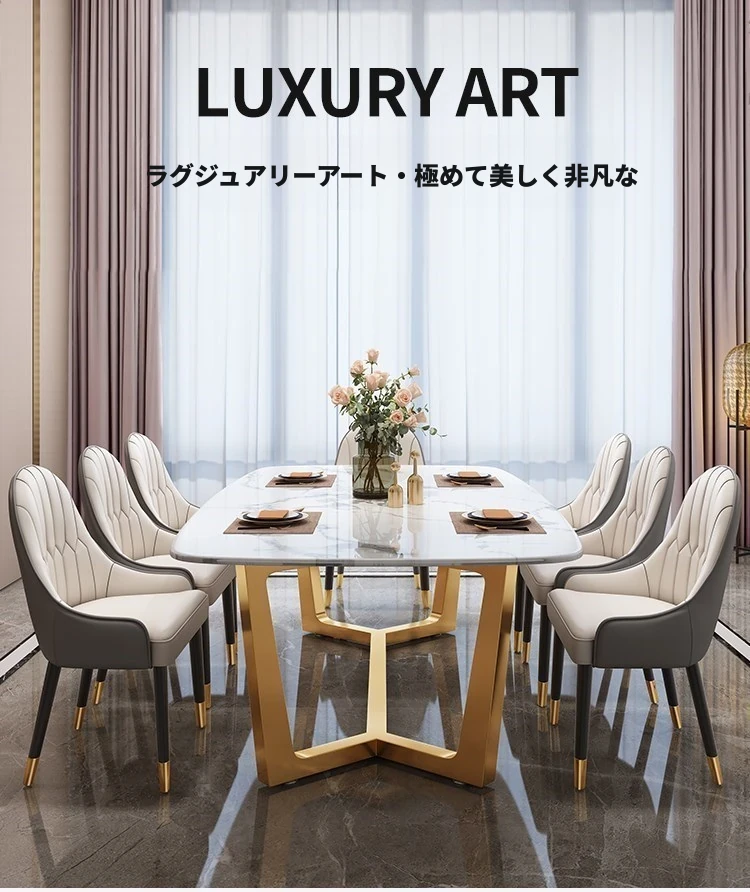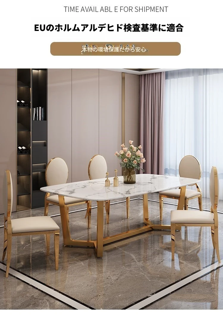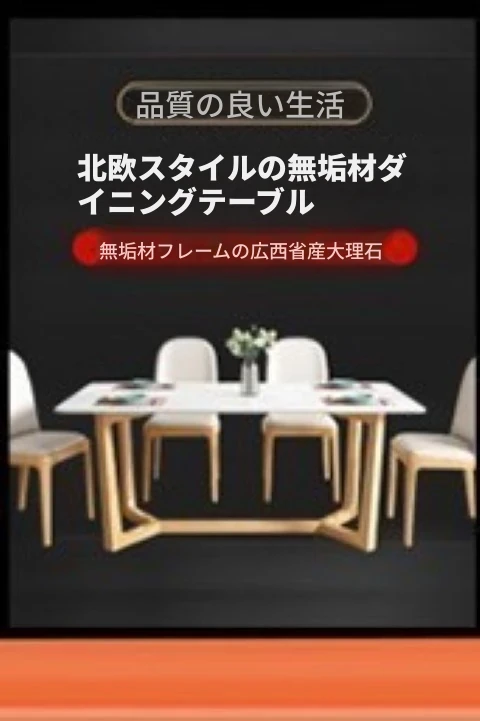 軽やかな贅沢感!大理石風のシンプルな長方形ダイニングテーブル&チェアセット。小さなお部屋にもぴったりなスタイリッシュなデザインで、インスタ映え間違いなし!家庭に華やかさをプラスします。