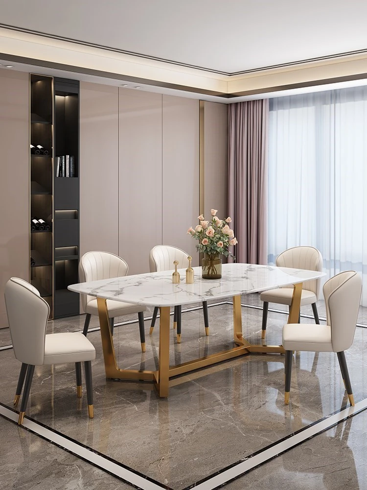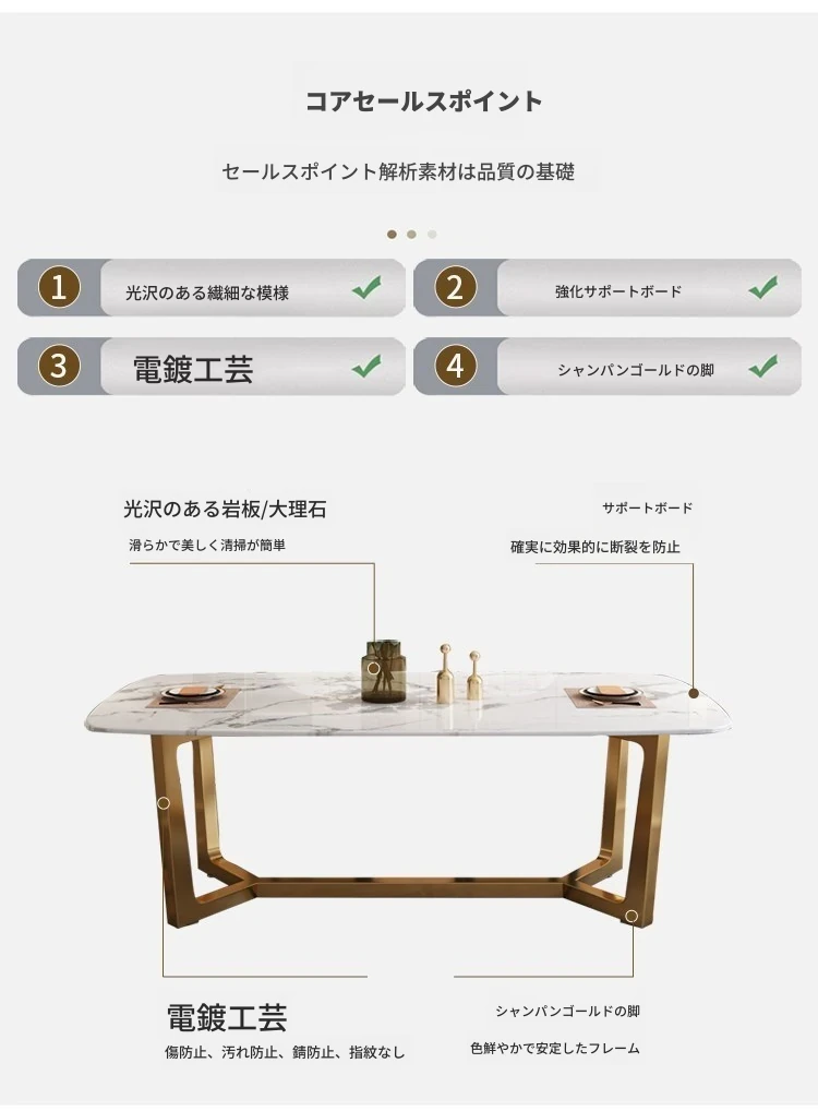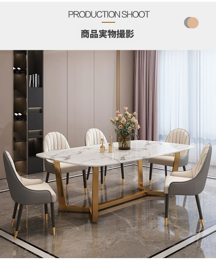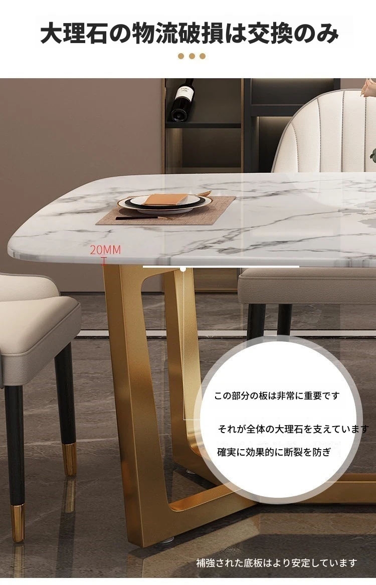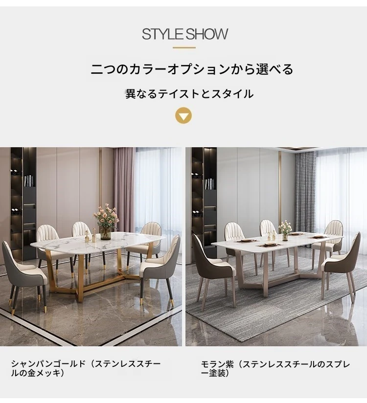 軽やかな贅沢感!大理石風のシンプルな長方形ダイニングテーブル&チェアセット。小さなお部屋にもぴったりなスタイリッシュなデザインで、インスタ映え間違いなし!家庭に華やかさをプラスします。