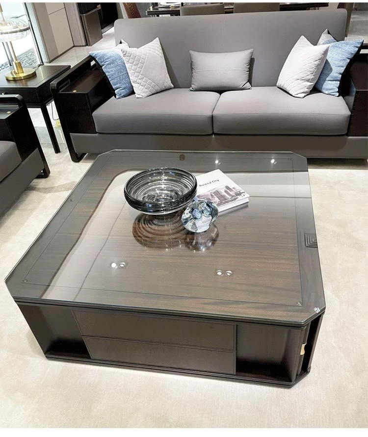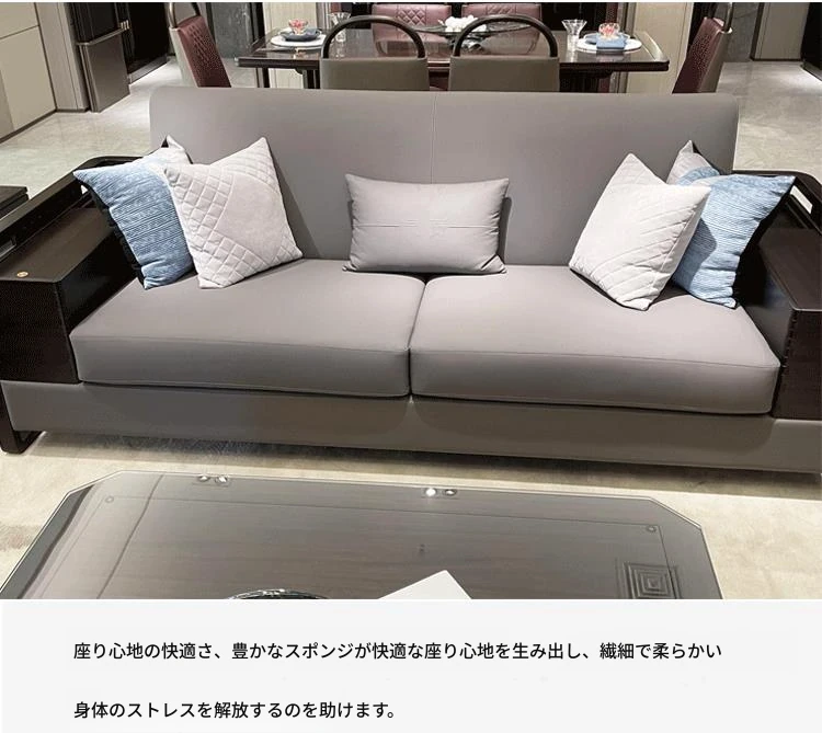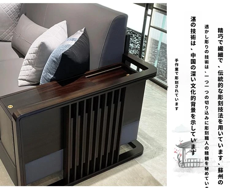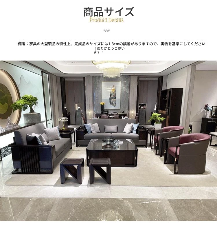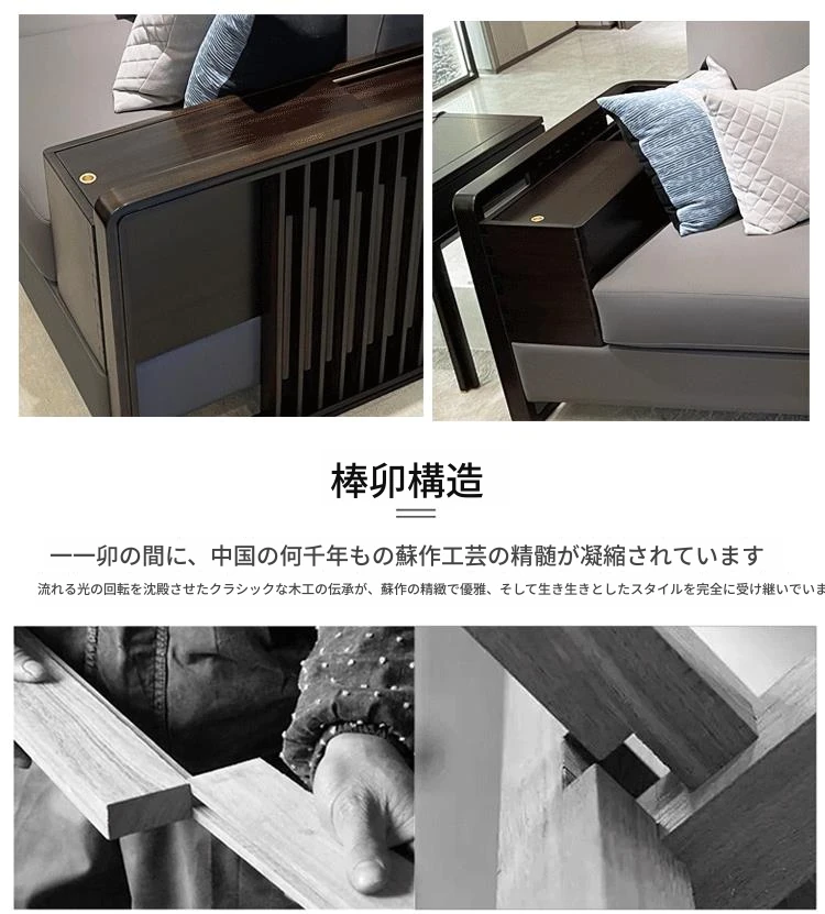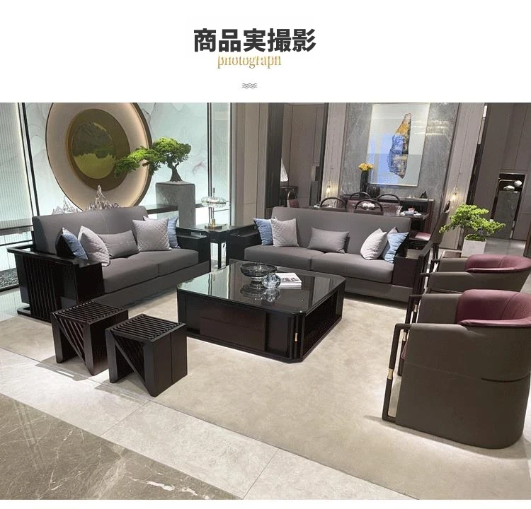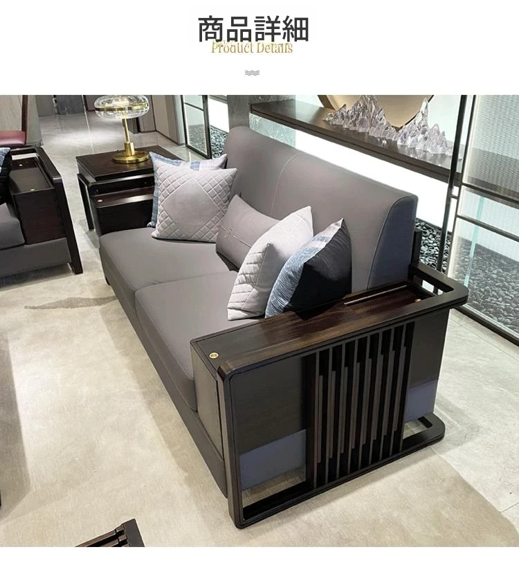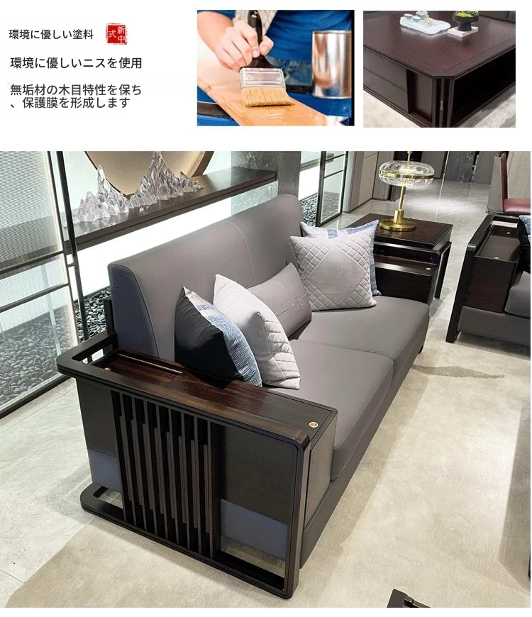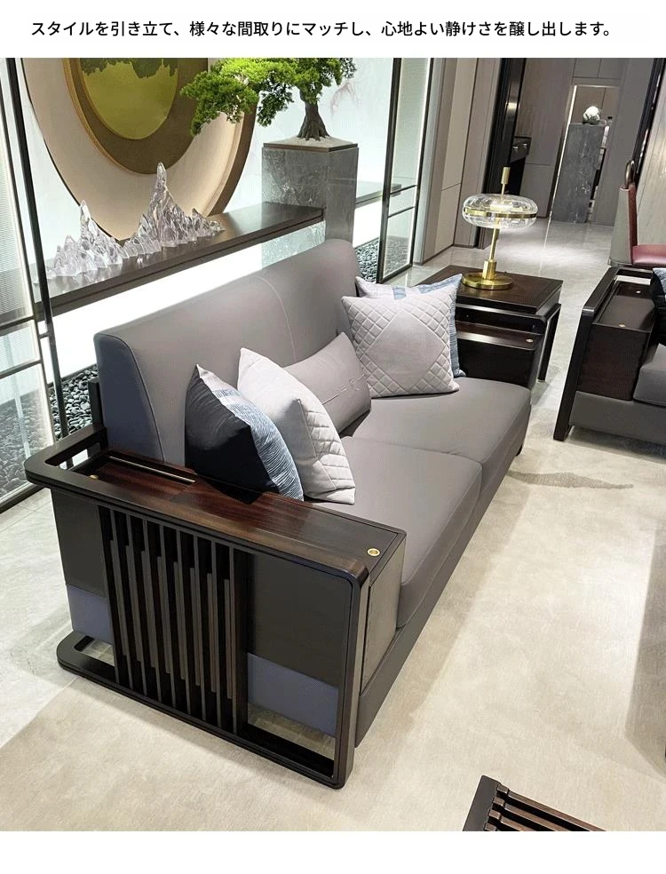新中式スタイルの高級実木ソファ、大型別荘向けの洗練されたデザイン。モダンな中式の美を追求した、豪華で落ち着いた雰囲気のリビングルーム家具セット。あなたの空間に優雅さをプラス!