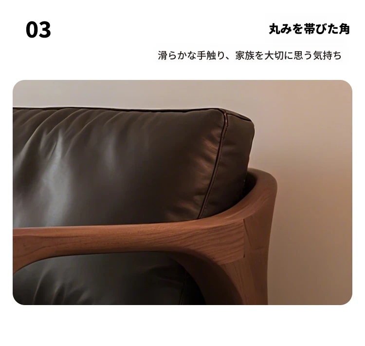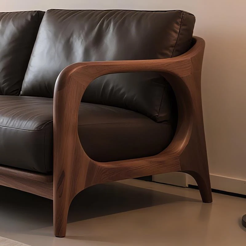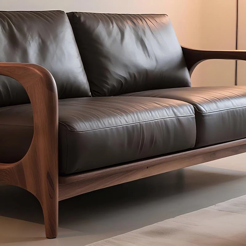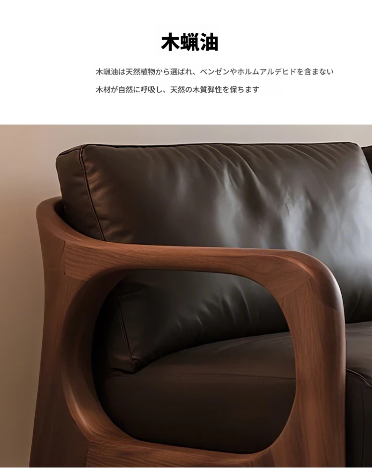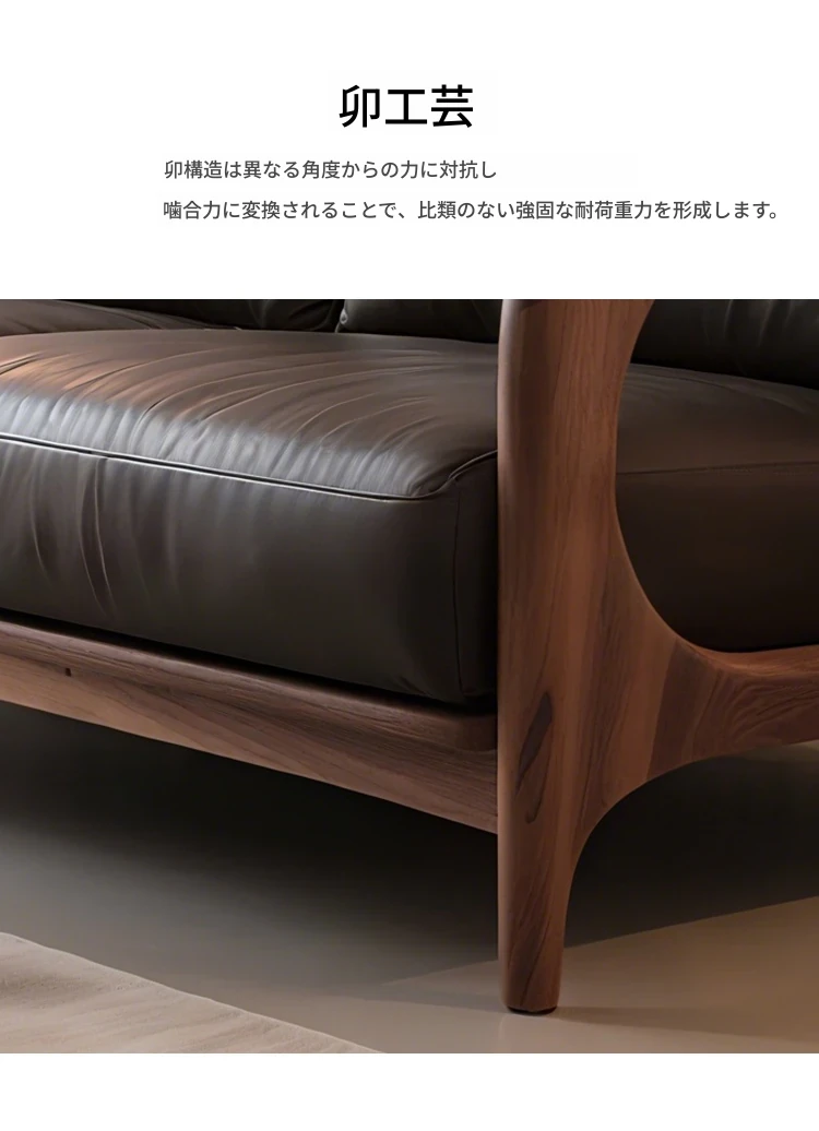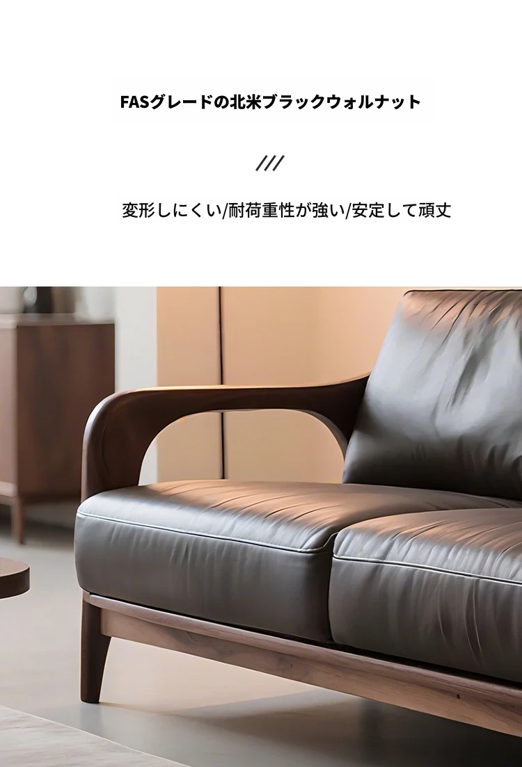 リビングルームに最適な高級ウォールナット無垢材のソファ、シンプルで洗練された和のテイストを持つ現代的なデザイン。贅沢な別荘スタイルを演出し、くつろぎの空間を提供します。