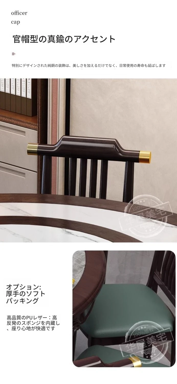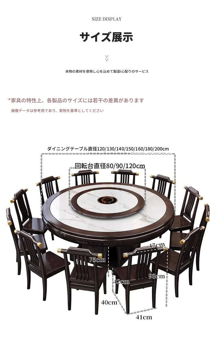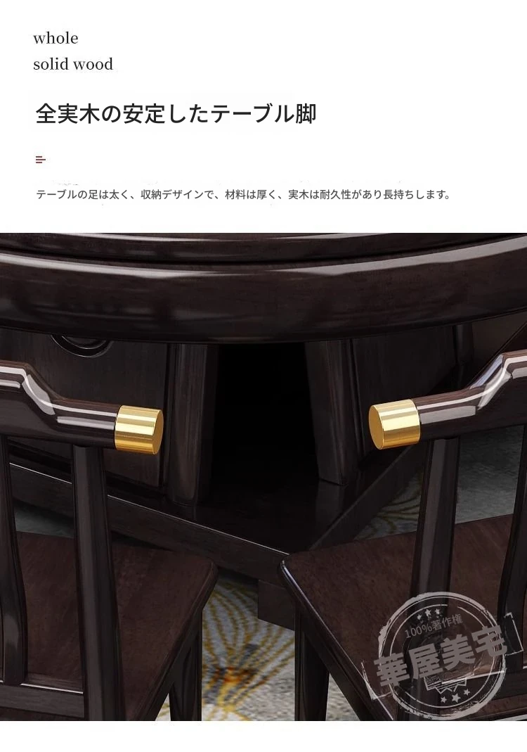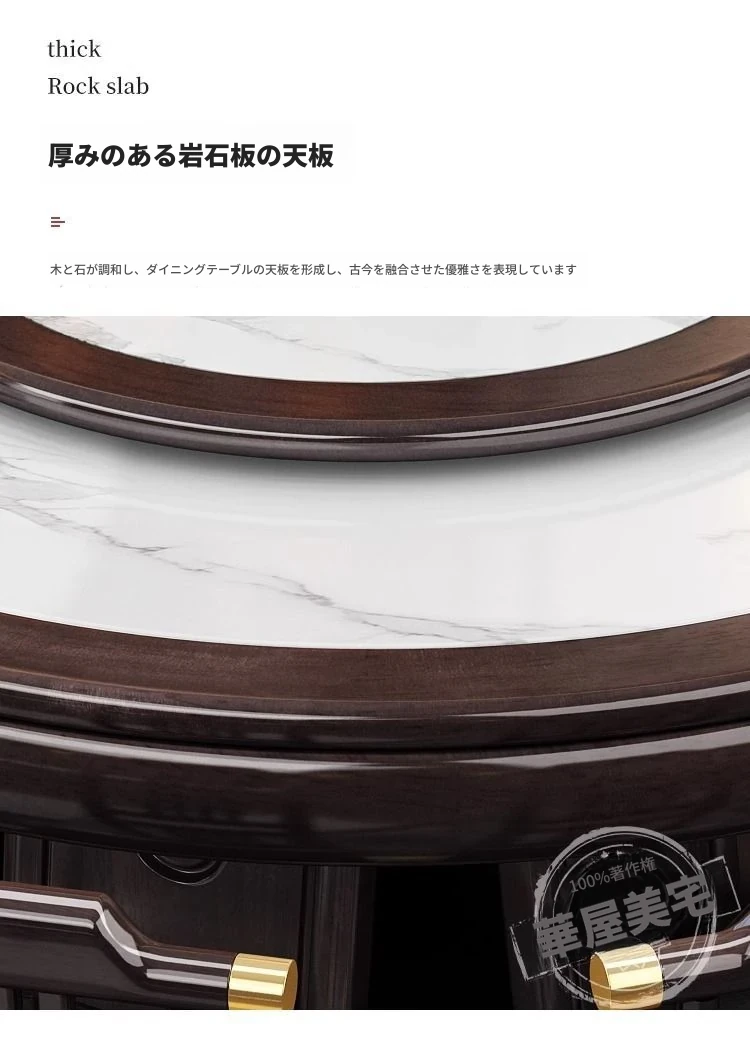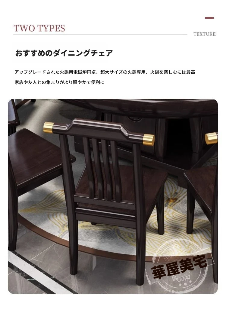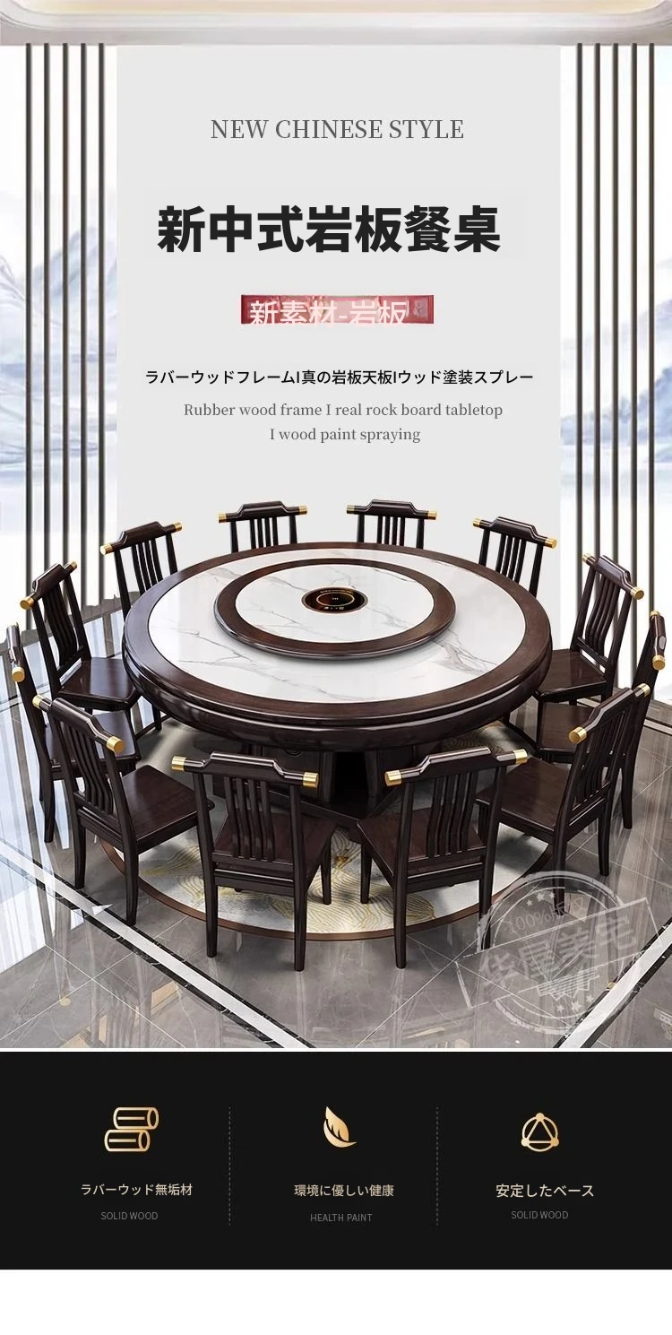 新中式デザインの高級実木製円形ダイニングテーブルセット!回転式プレート付きで、家庭やホテルに最適。電磁調理器対応、鍋料理も楽しめる理想の食卓!