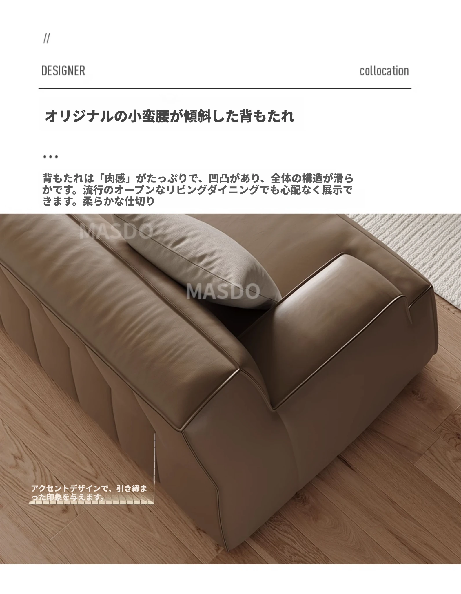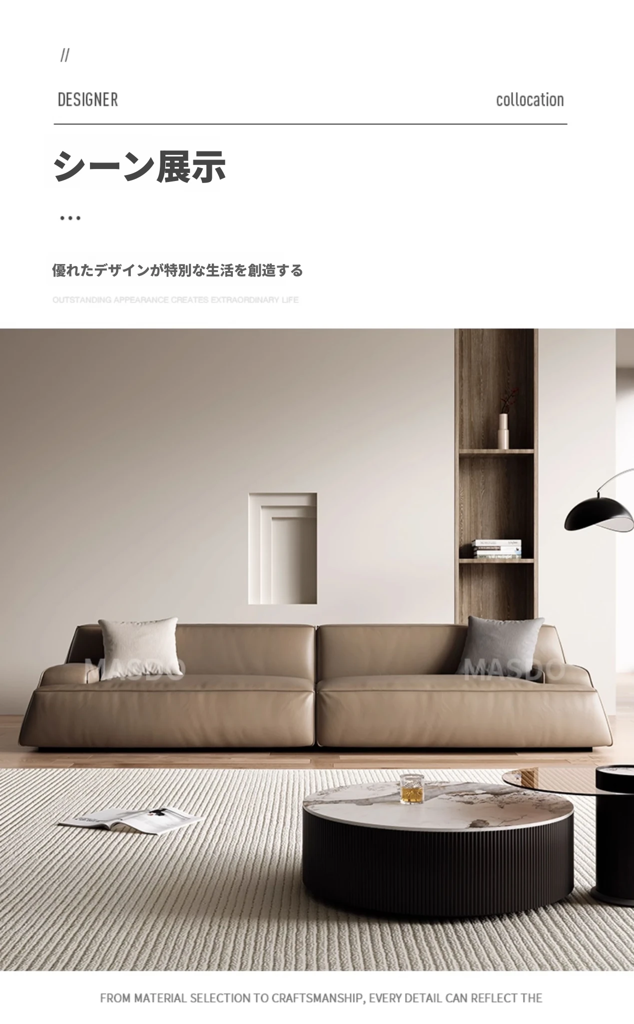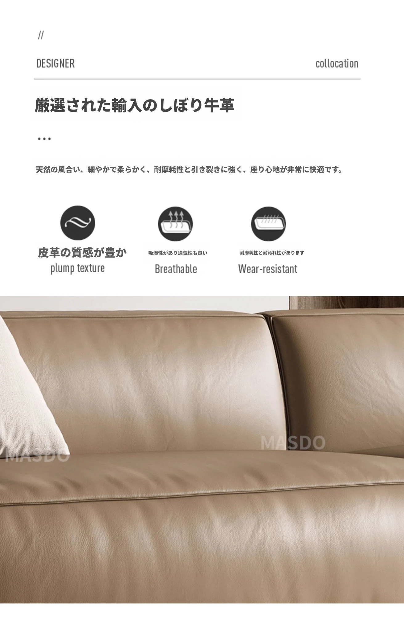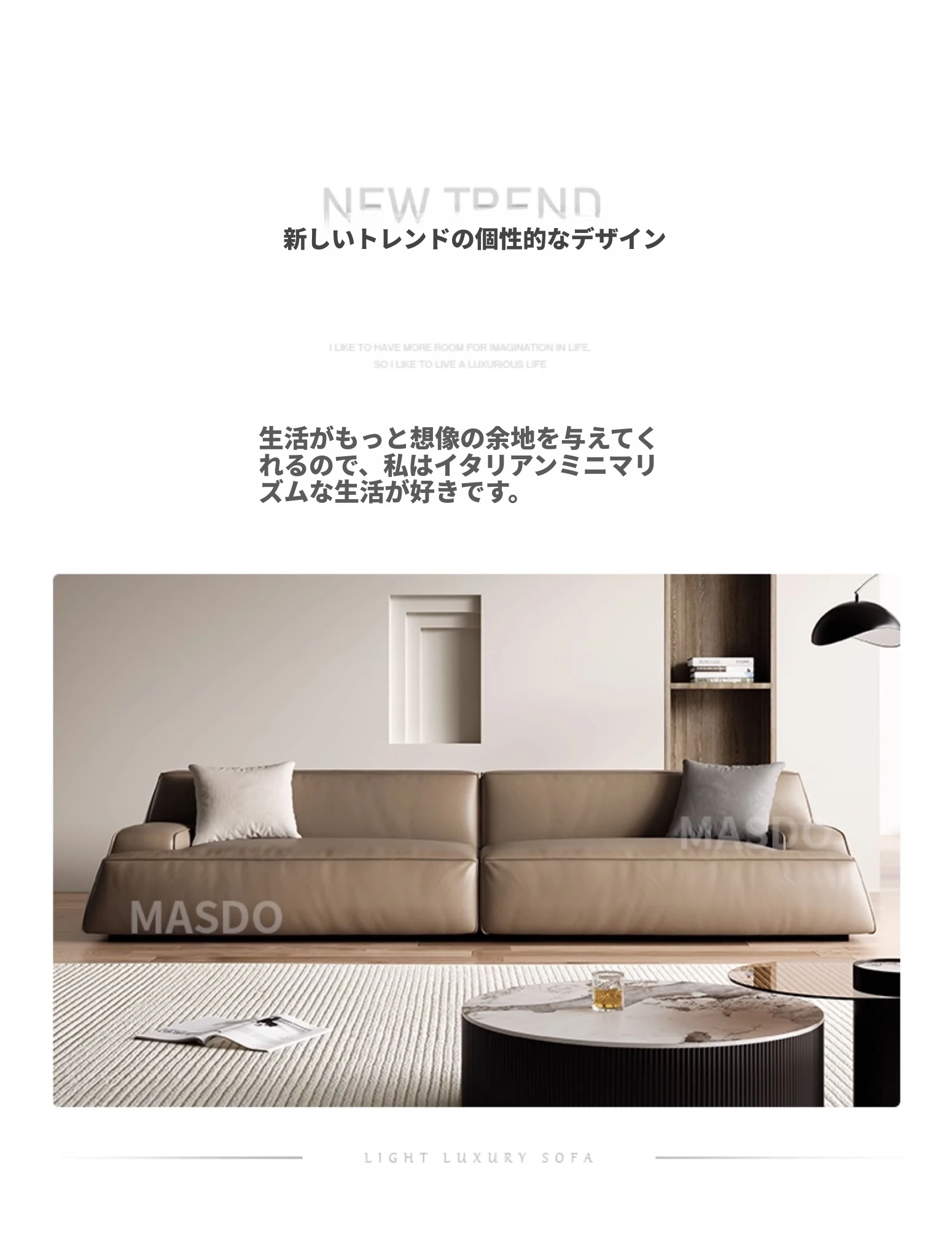 ダマスカス本革ソファ 大型リビング用 イタリアンミニマルスタイル ダウン入り 北欧風 一級牛革 わびさびデザイン 4人掛け