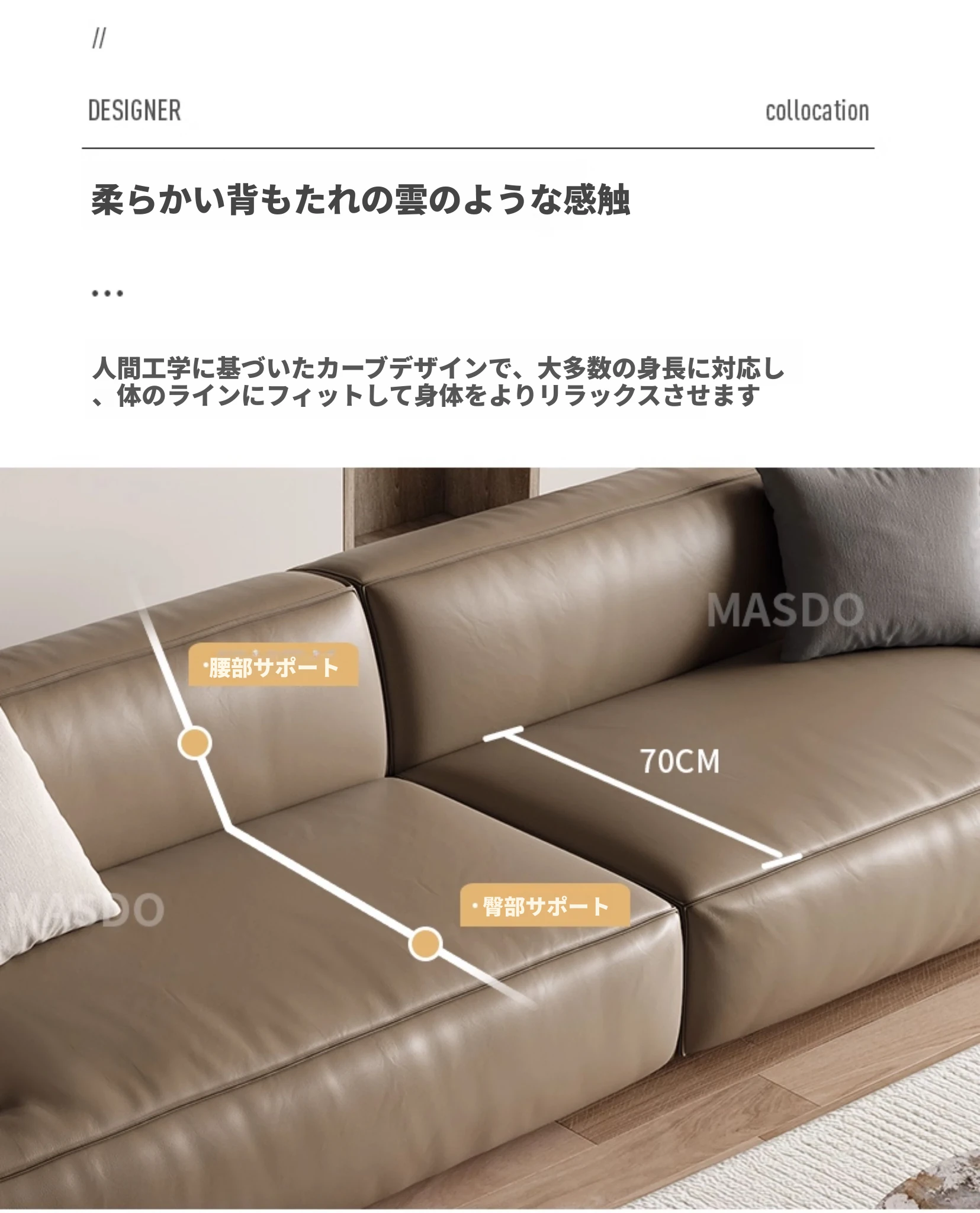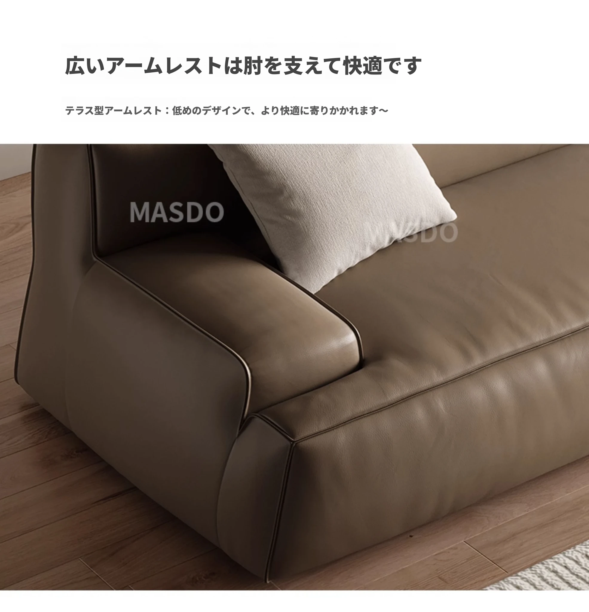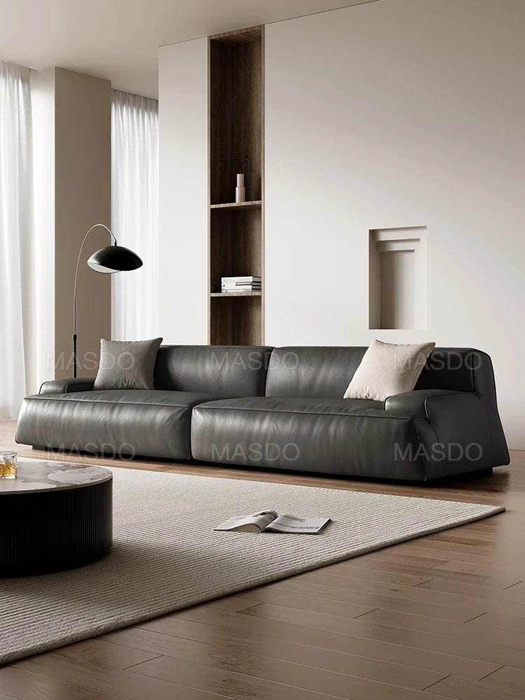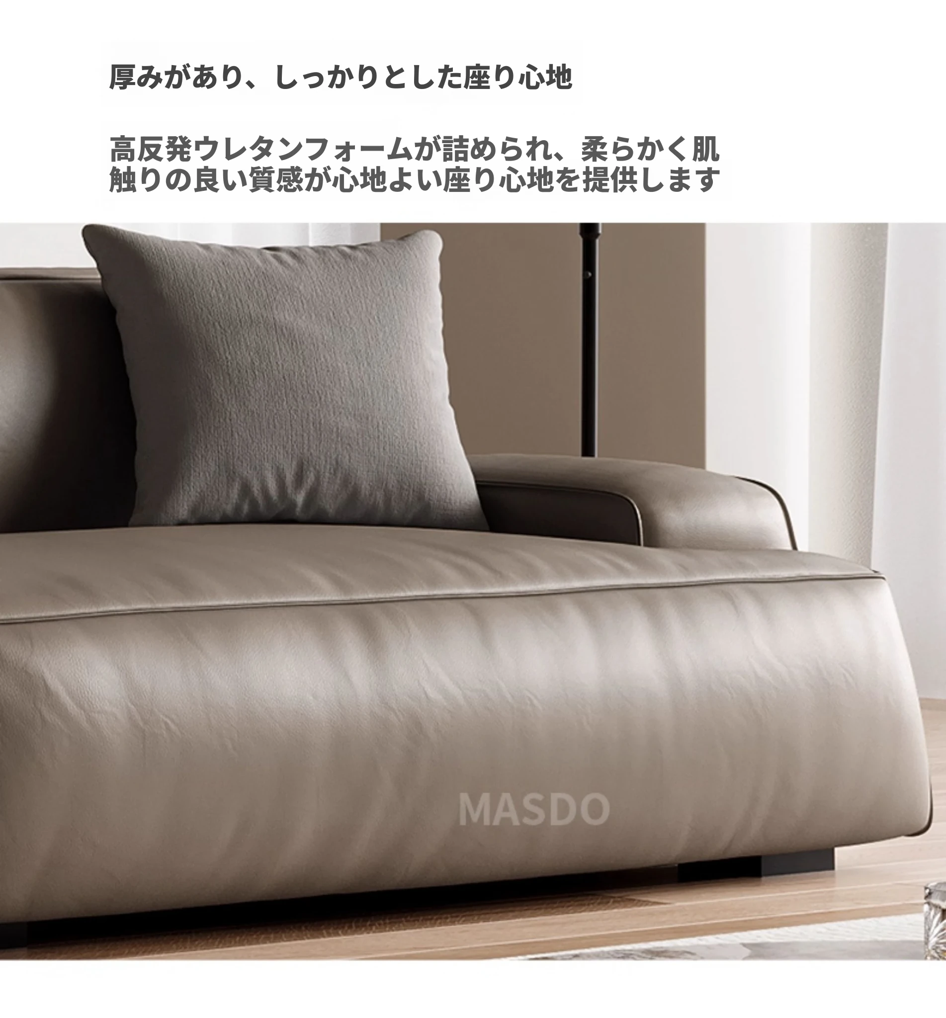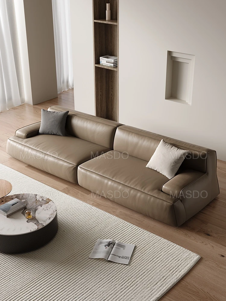 ダマスカス本革ソファ 大型リビング用 イタリアンミニマルスタイル ダウン入り 北欧風 一級牛革 わびさびデザイン 4人掛け