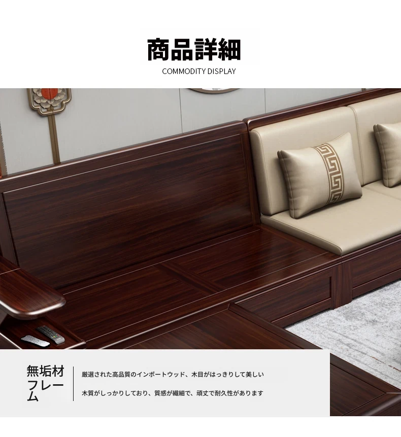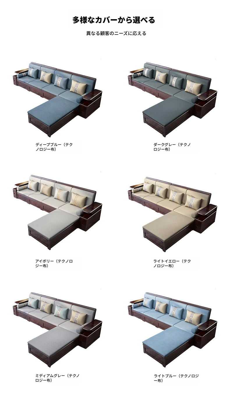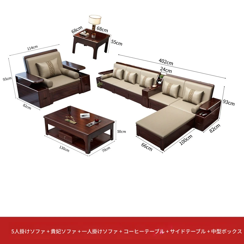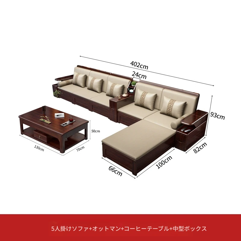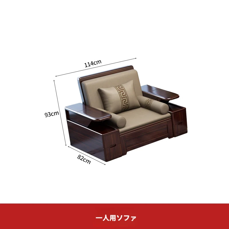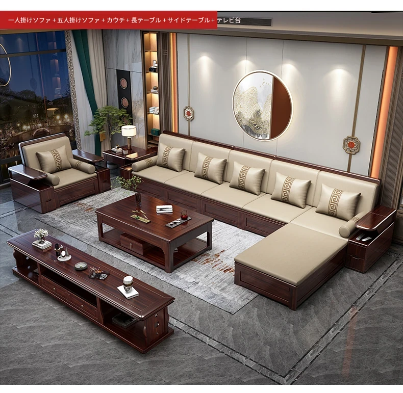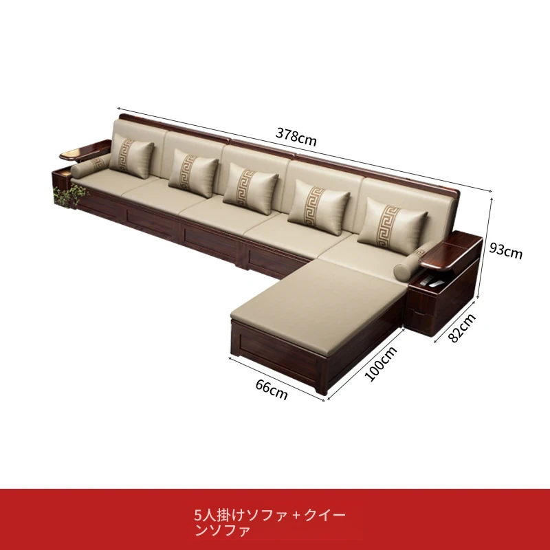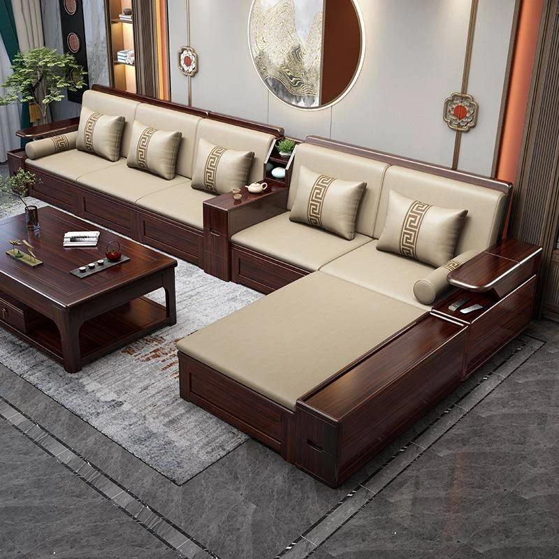 ウッディな新中式デザインのウール杉木製ソファセット|軽やかで贅沢な収納機能付き|冬夏両用|コンパクトなリビングに最適なL字型と貴妃スタイル!