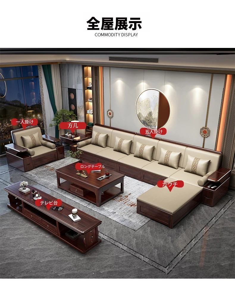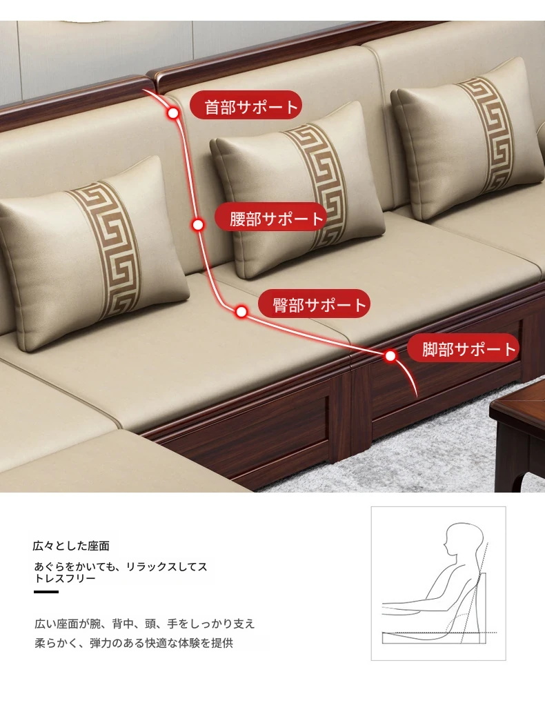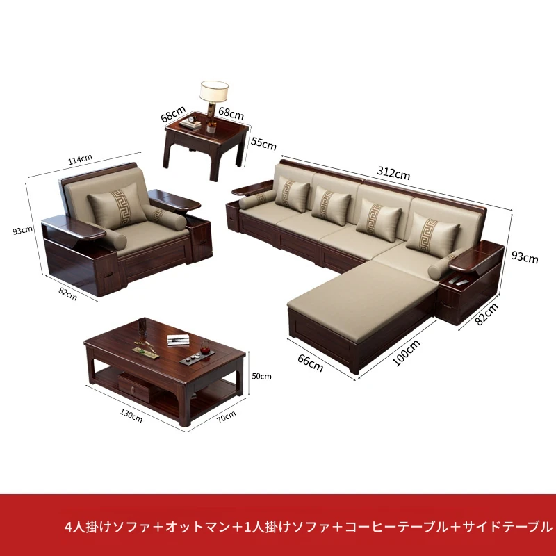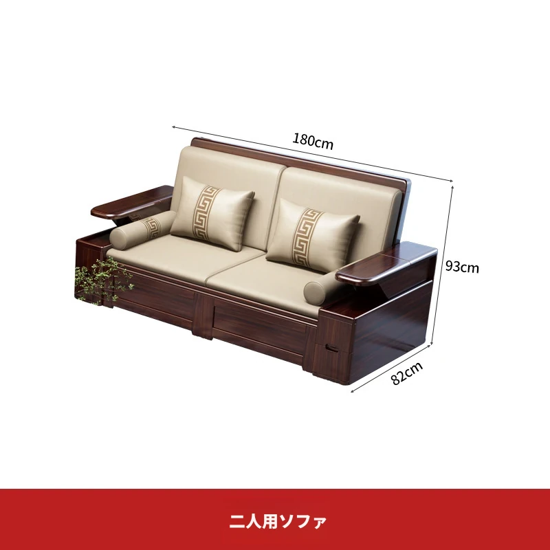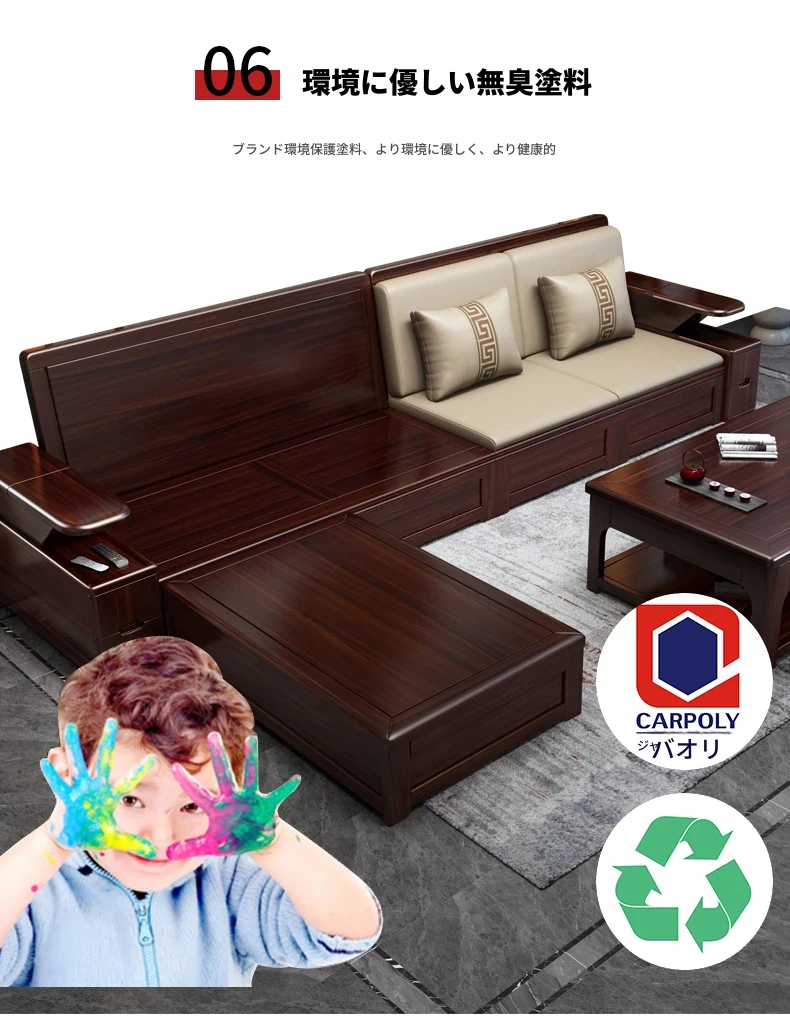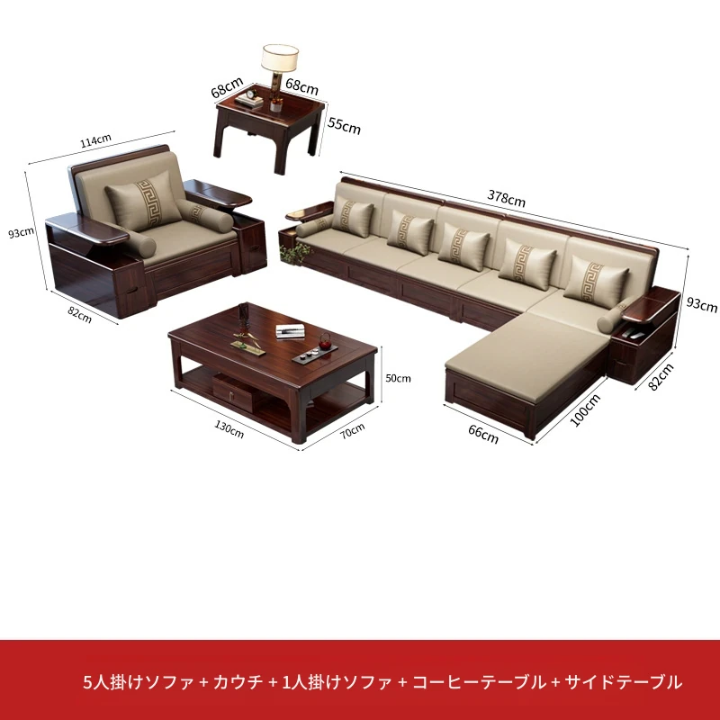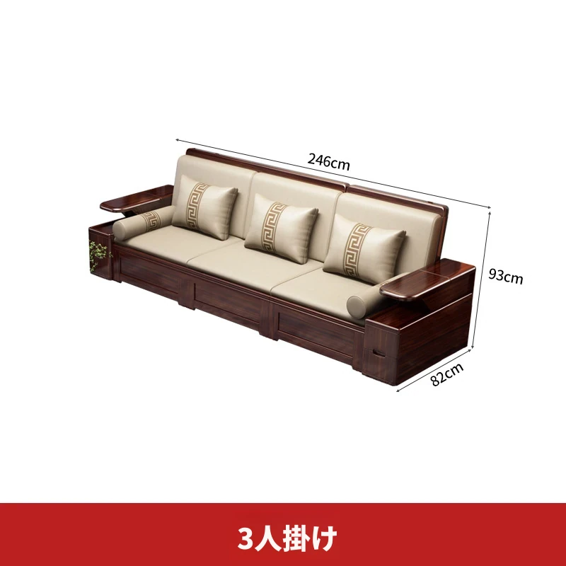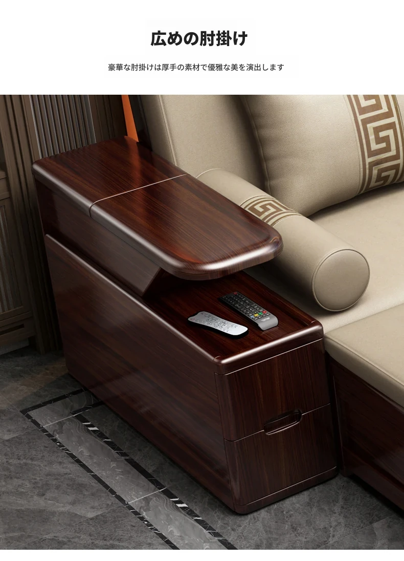ウッディな新中式デザインのウール杉木製ソファセット|軽やかで贅沢な収納機能付き|冬夏両用|コンパクトなリビングに最適なL字型と貴妃スタイル!