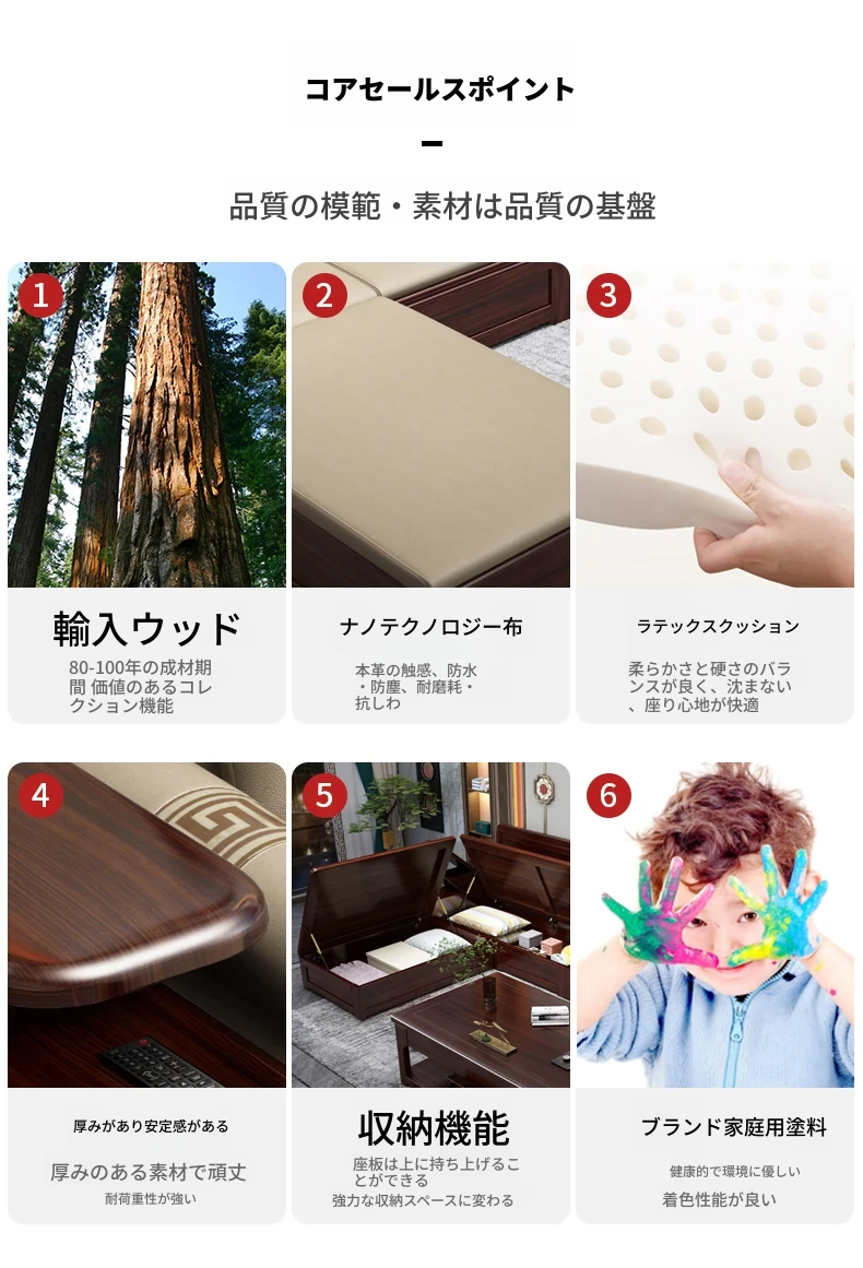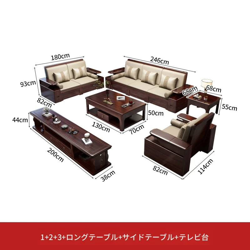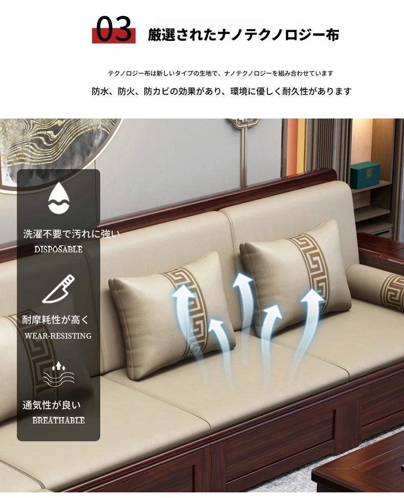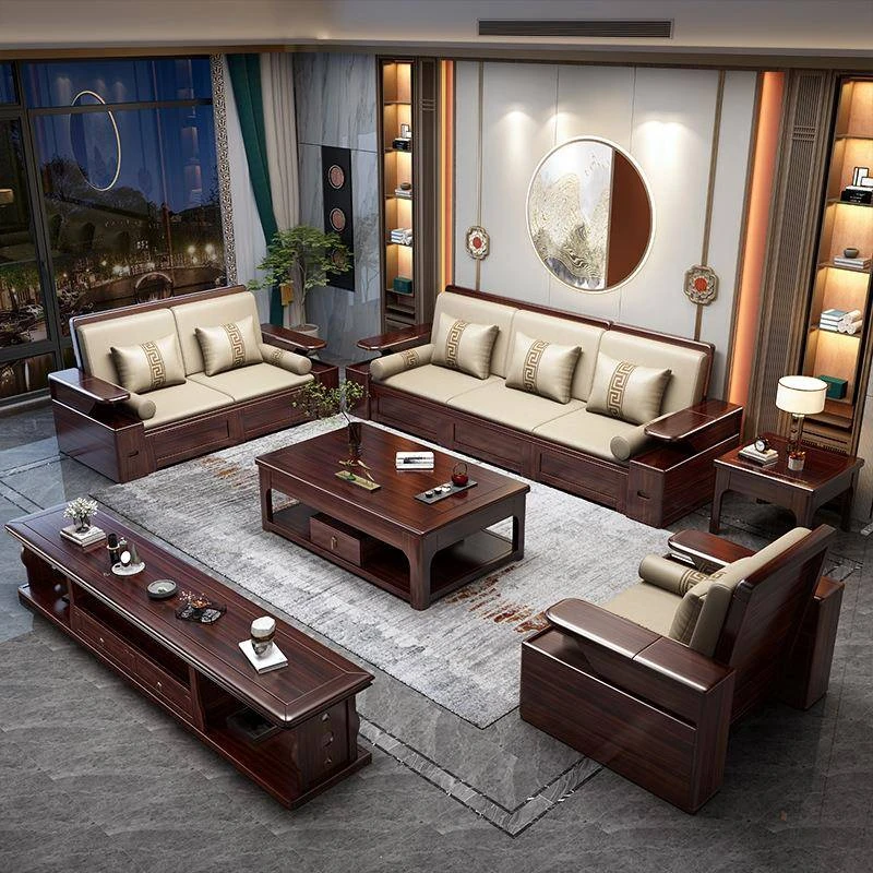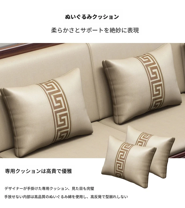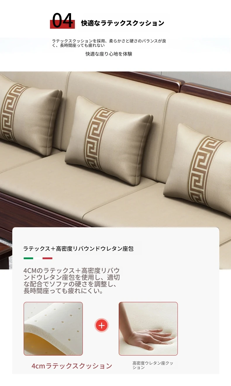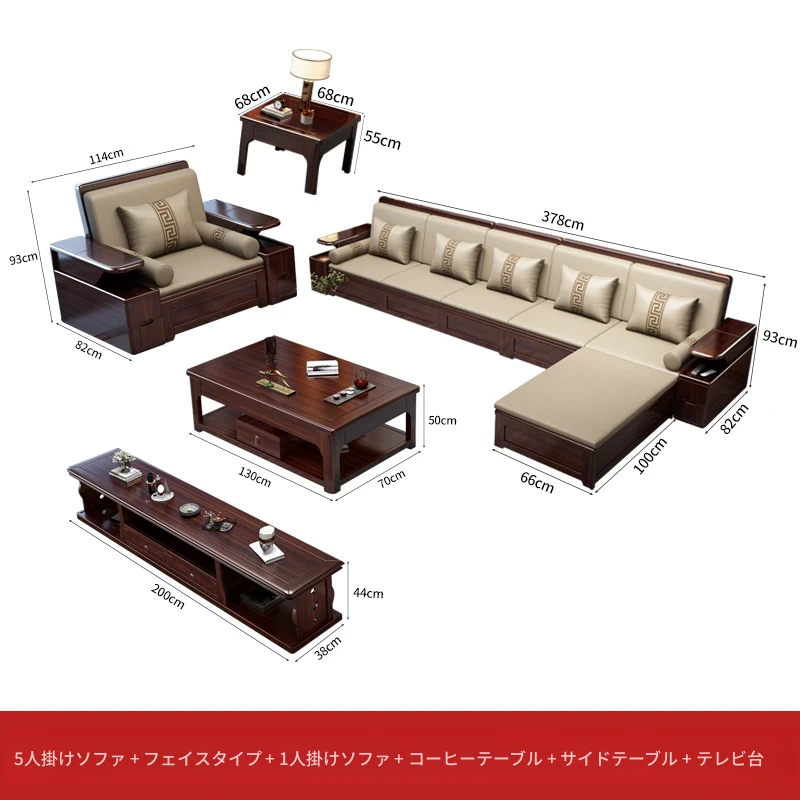 ウッディな新中式デザインのウール杉木製ソファセット|軽やかで贅沢な収納機能付き|冬夏両用|コンパクトなリビングに最適なL字型と貴妃スタイル!