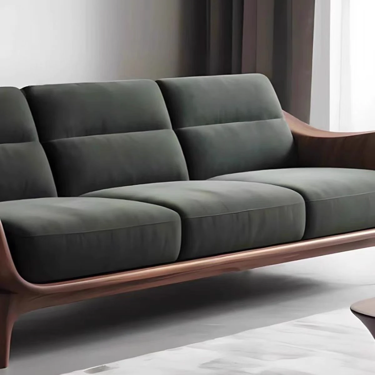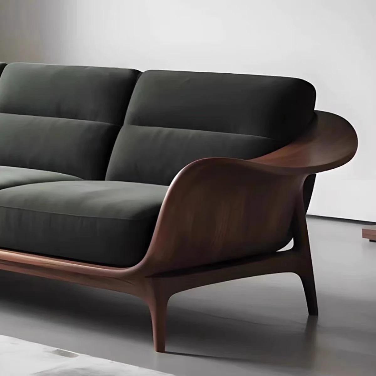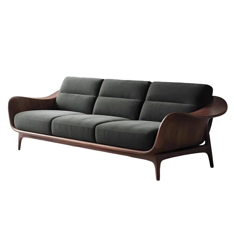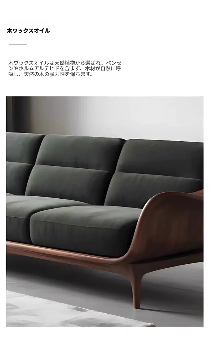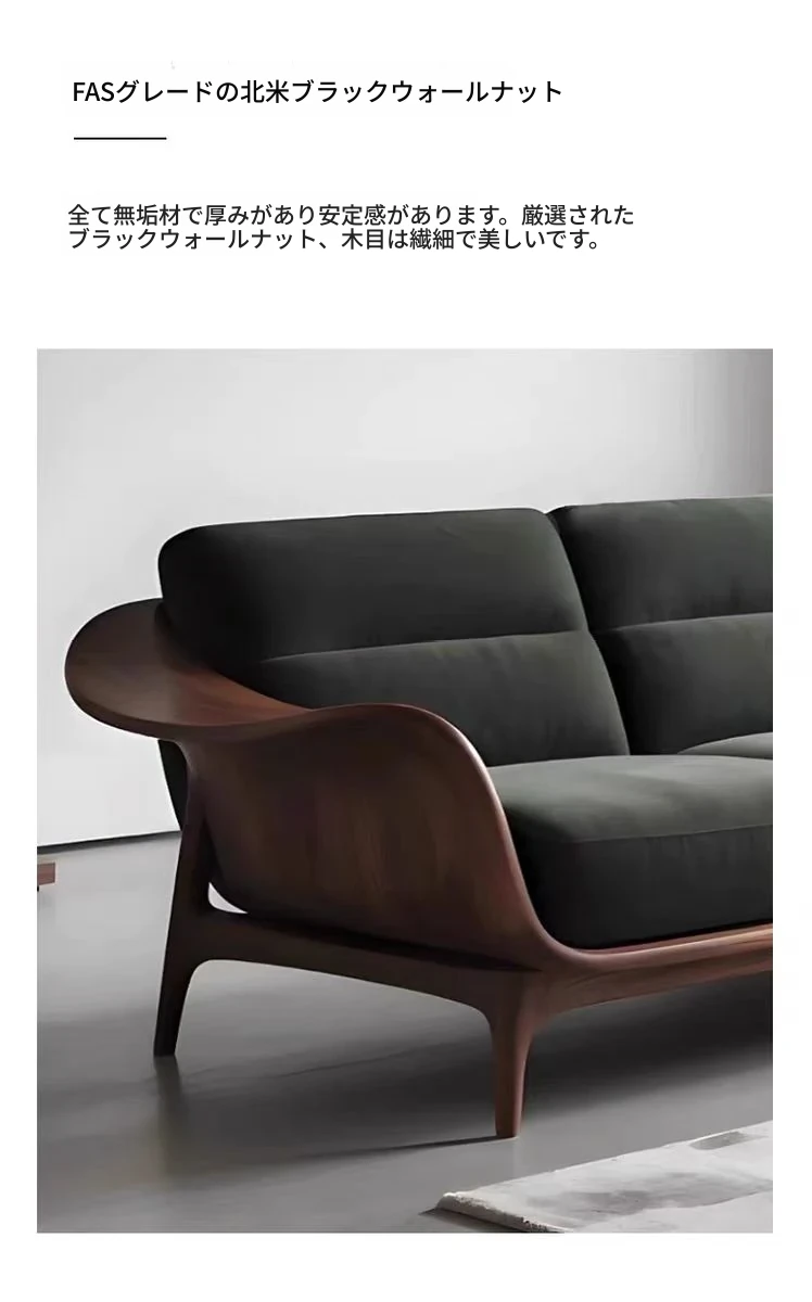 高級感あふれる中古風リアルウッドソファ!2025年新作、ブラックウォールナット材の3人掛けデザインソファ。リビングをスタイリッシュに彩る、こだわりの布製クッション付き!