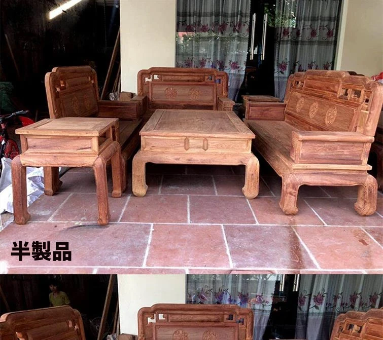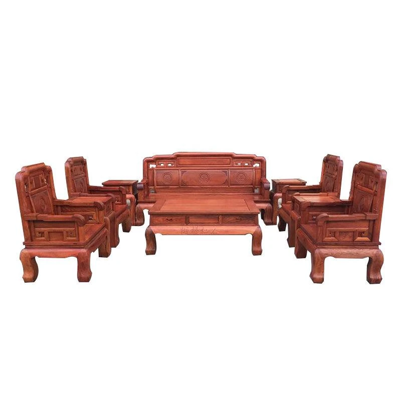 ミャンマー花梨の紅木家具「国色天香」6点セット!新中式スタイルの実木大果紫檀ソファー、贅沢なリビング空間を演出。高品質で耐久性抜群、心地よい座り心地を体験してください!
